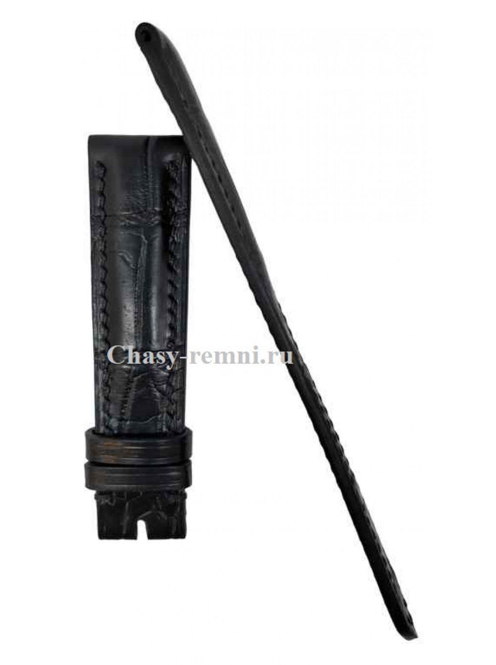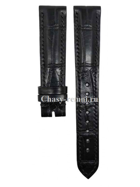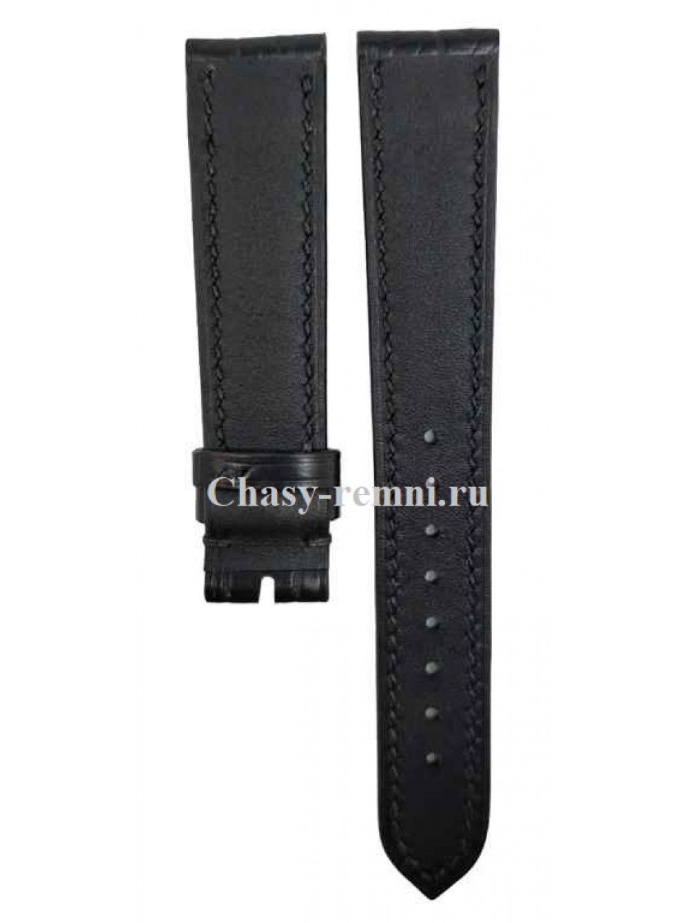 Ремешок ручной работы, черный, кожаный, без клипсы. Натуральный крокодил. Размер ремешка входящий в корпус и на клипсу 18/16 мм. Длина ремешка 70*120 мм. Подходит к часам с входящим размером в корпус 18 мм.