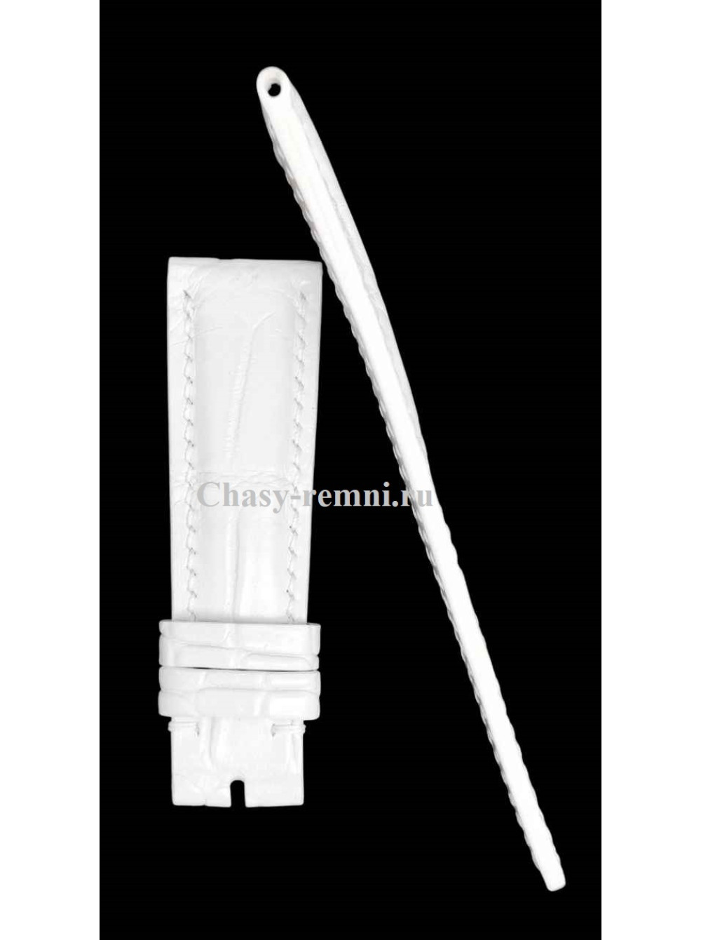 Ремешок ручной работы, отличная замена оригинальному ремешку для часов ULYSSE NARDIN. Кожаный, белый ремешок без клипсы. Натуральный аллигатор. Размер входящий в корпус и на клипсу 19/16 мм. Длина ремешка 65*100 мм.