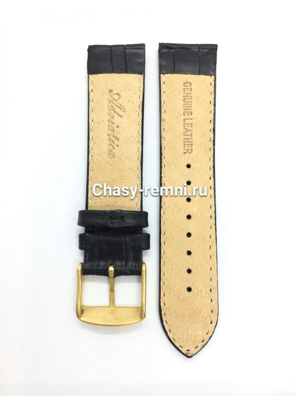 Оригинальный кожаный, черный ремешок ADRIATICA, имитация крокодила, с желтой пряжкой. Размер входящий в корпус и на пряжку 22/20 мм. Длинна ремешка 85*110 мм. Подходит для модели A1246.
