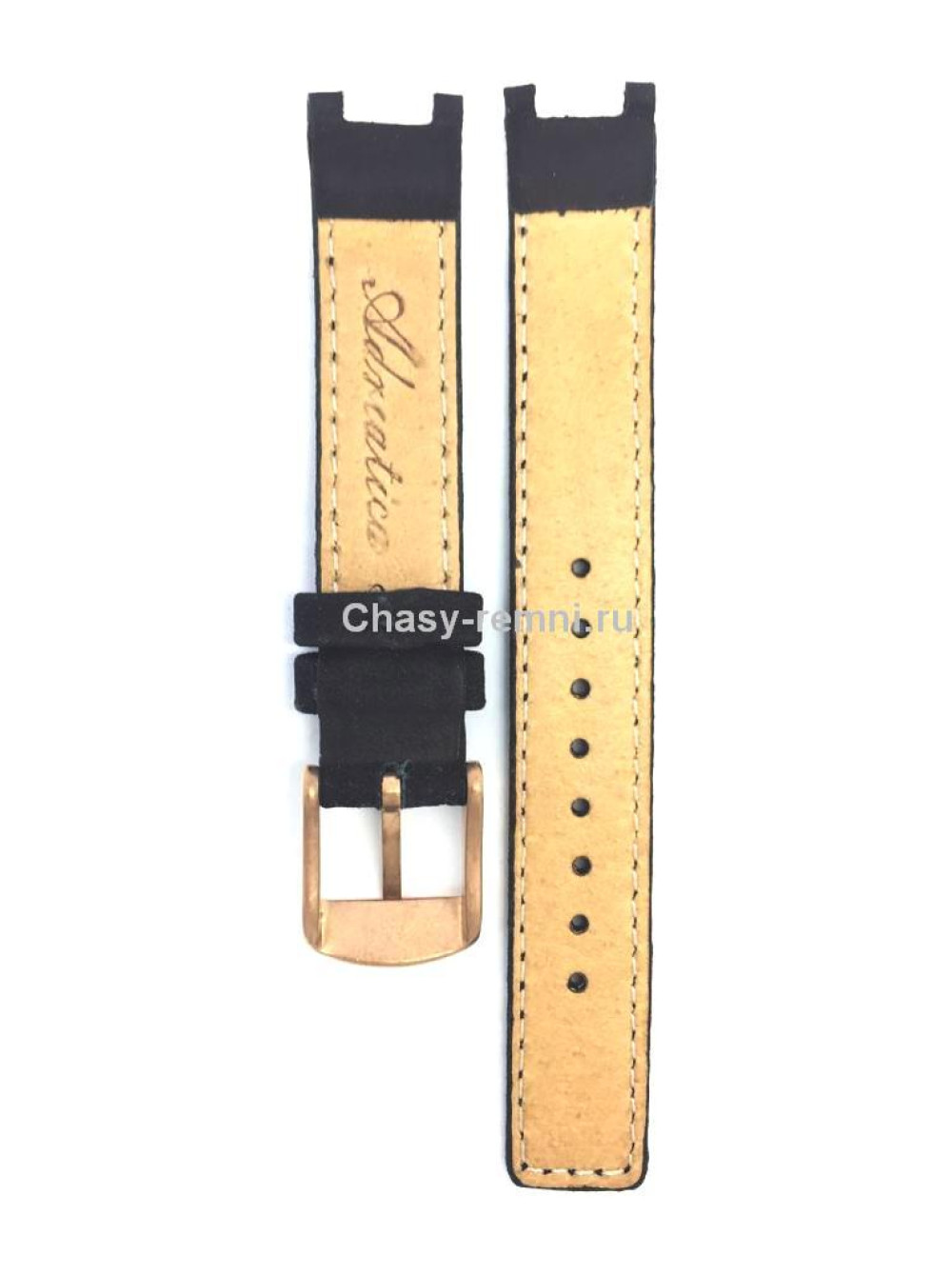 Оригинальный черный, кожаный ремешок ADRIATICA, с вырезом под корпус, розовая пряжка. Размер входящий в корпус и на пряжку 14/14 мм. Длина ремешка 70*110 мм. Подходит для модели часов A3774
