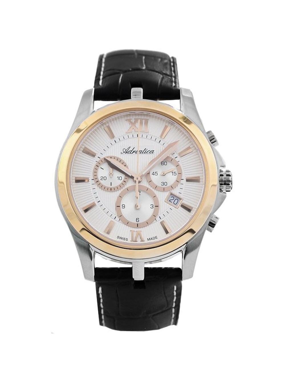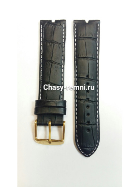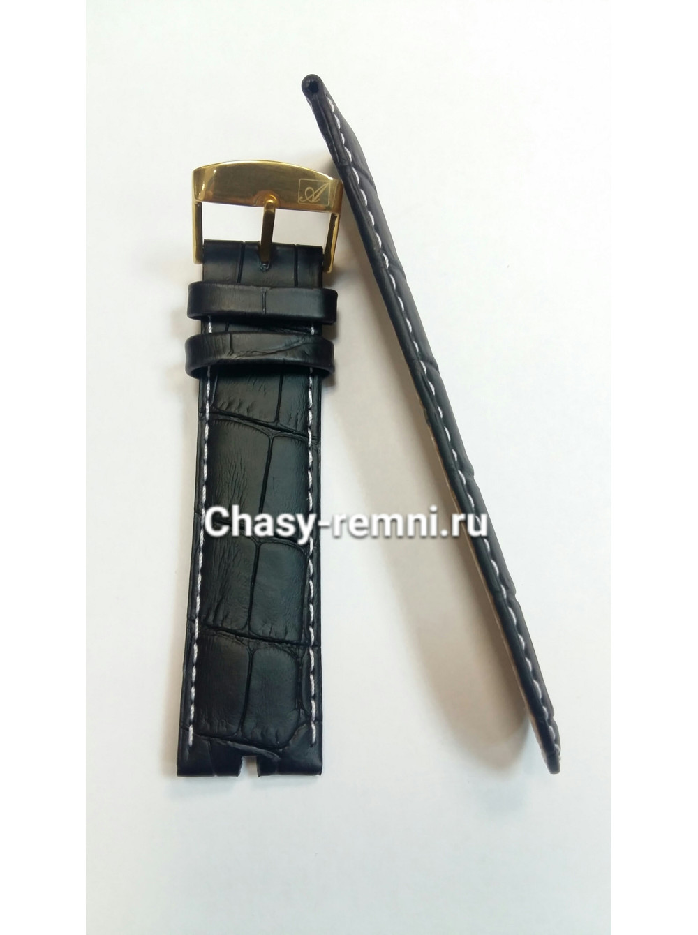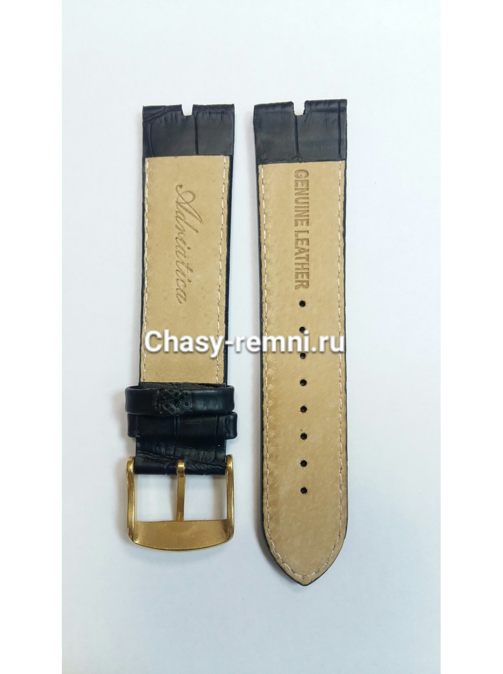 Оригинальный кожаный, черный ремешок ADRIATICA, имитация крокодила, с вырезом, с белой прострочкой, с желтой пряжкой. Размер входящий в корпус и на пряжку 22/20 мм. Подходит для модели A8212.