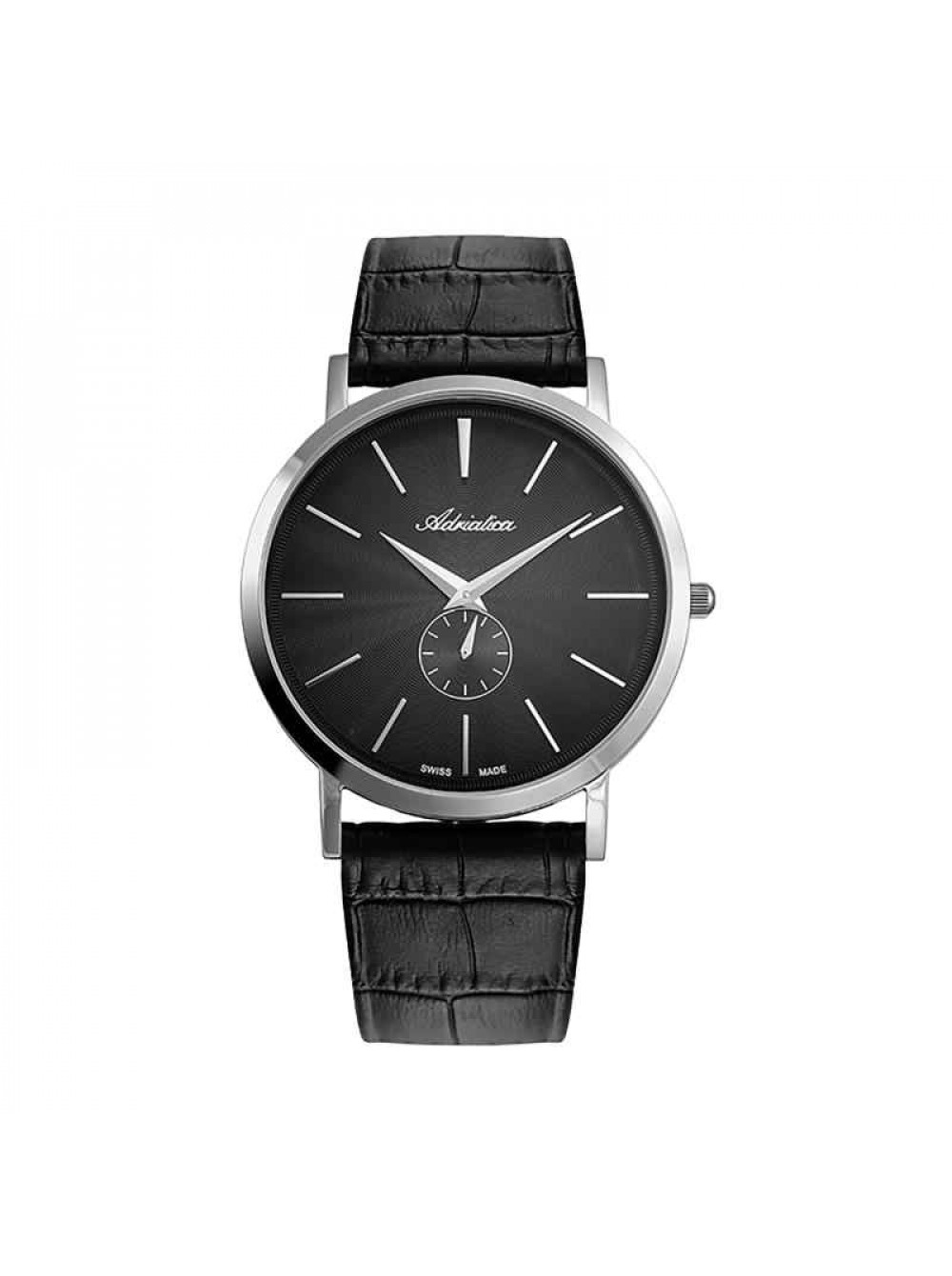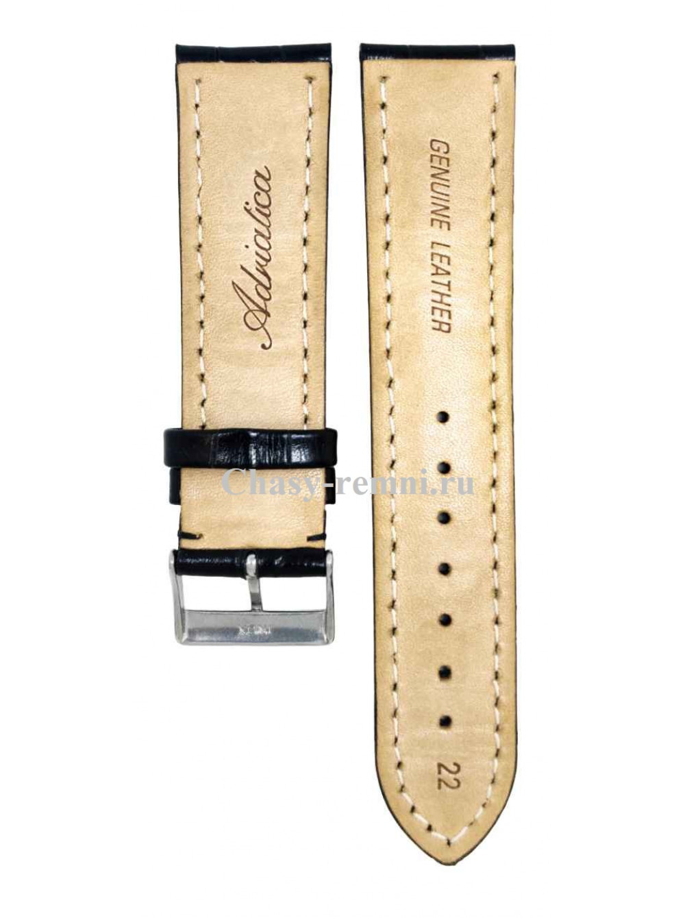 Оригинальный черный, кожаный ремешок ADRIATICA, имитация крокодила, стальная пряжка. Длина ремешка 75*115 мм. Размер входящий в корпус и на пряжку 22/20 мм. Подходит к модели часов A8297, A8299, A2804, A1171, A8289, A8269, A8256.