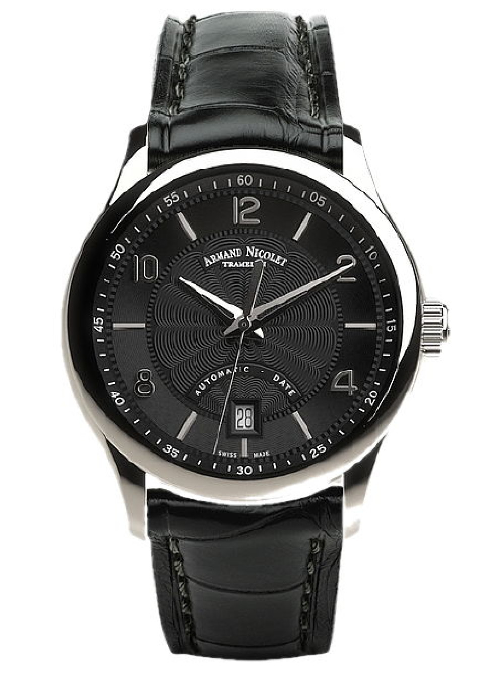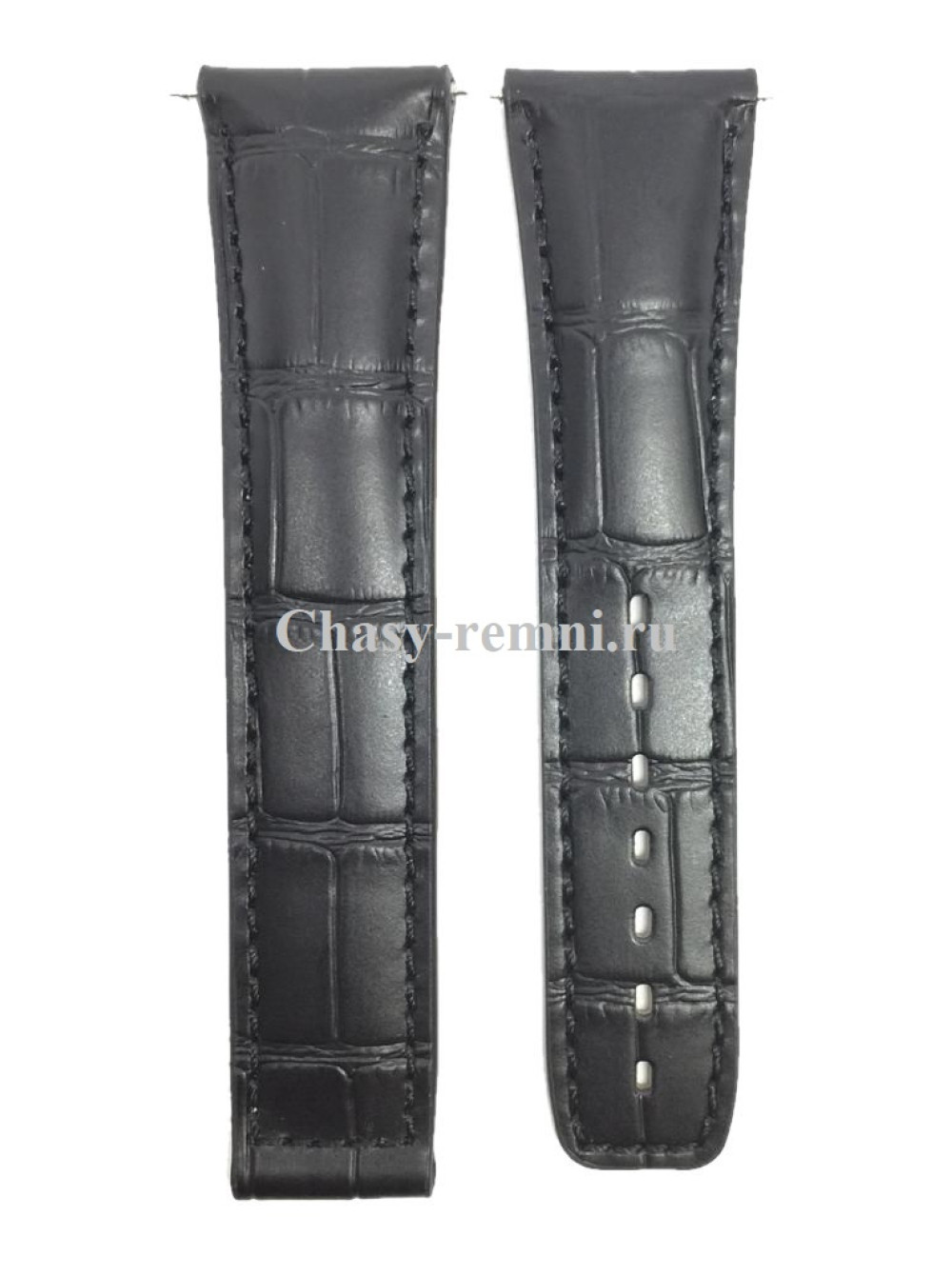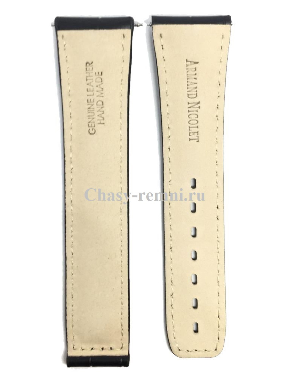 Оригинальный черный, кожаный ремешок ARMAND NICOLET, имитация крокодила, без клипсы. Размер входящий в корпус и на клипсу 22/18 мм. Длина ремешка 95*100 мм.