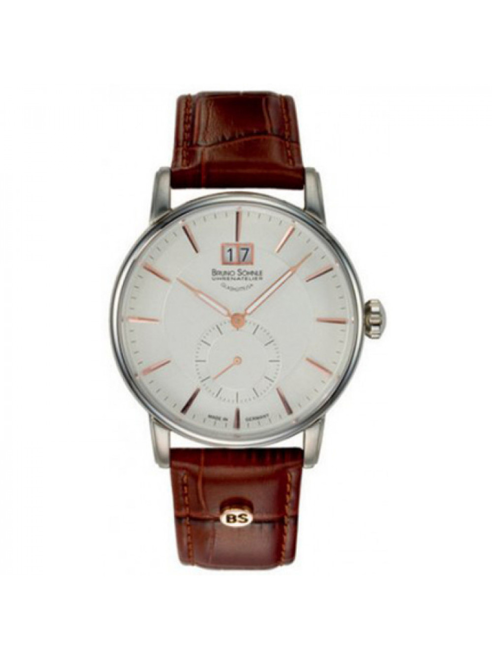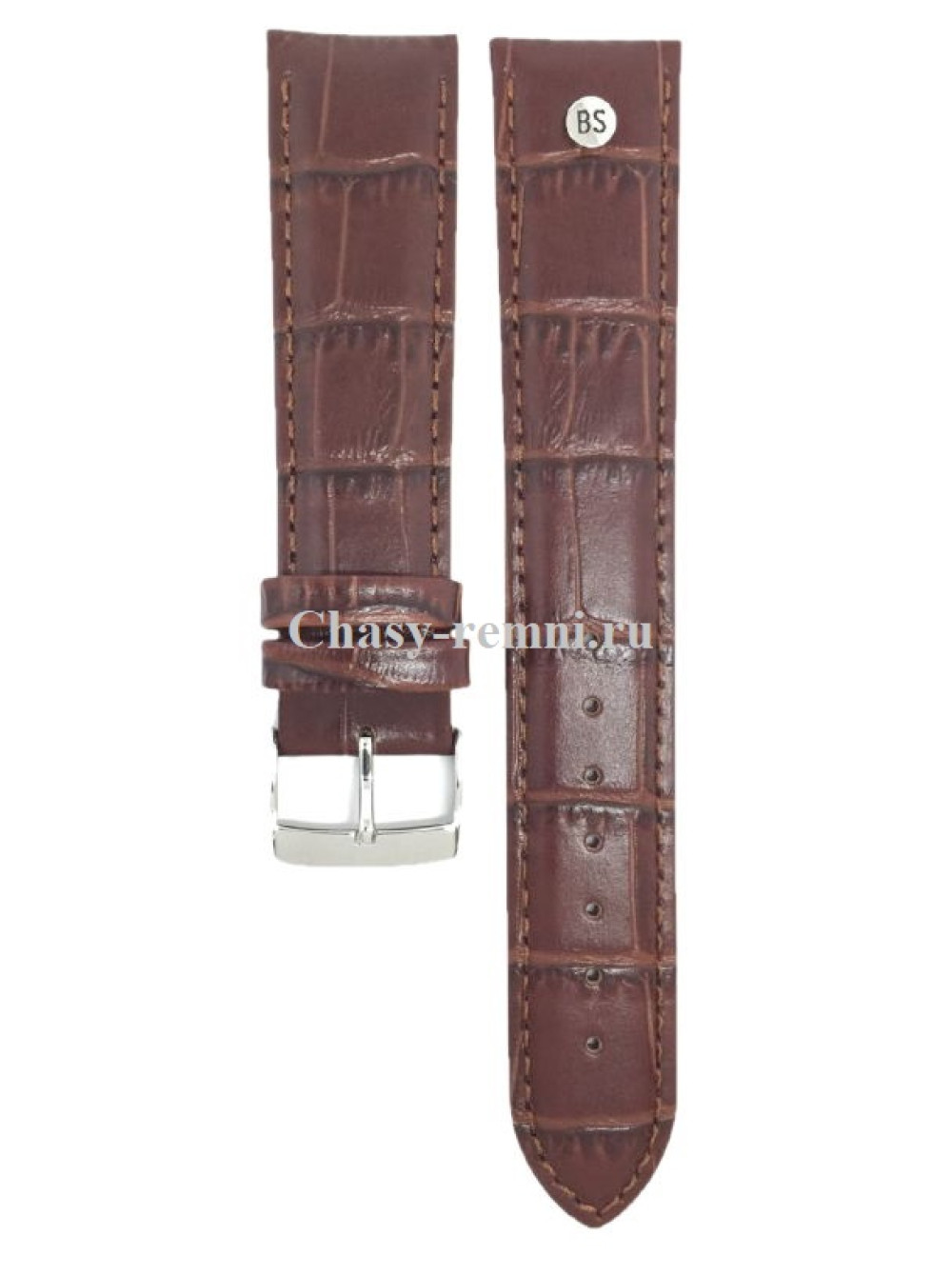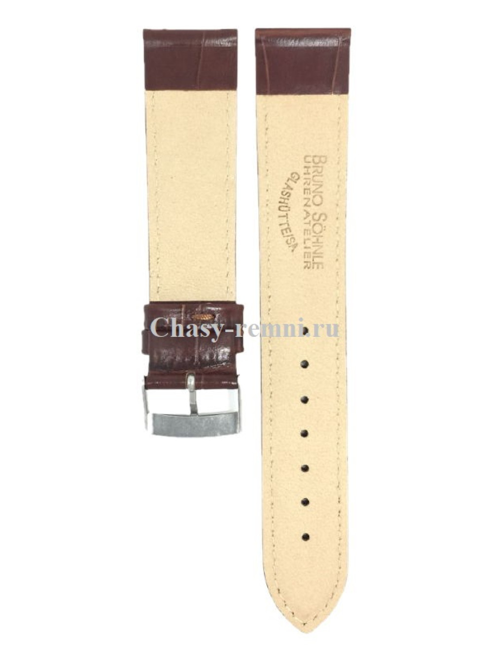 Оригинальный темно-коричневый кожаный ремешок BRUNO SOHNLE, имитация крокодила, со стальной пряжкой. Размер входящий в корпус и на пряжку 20/18 мм.