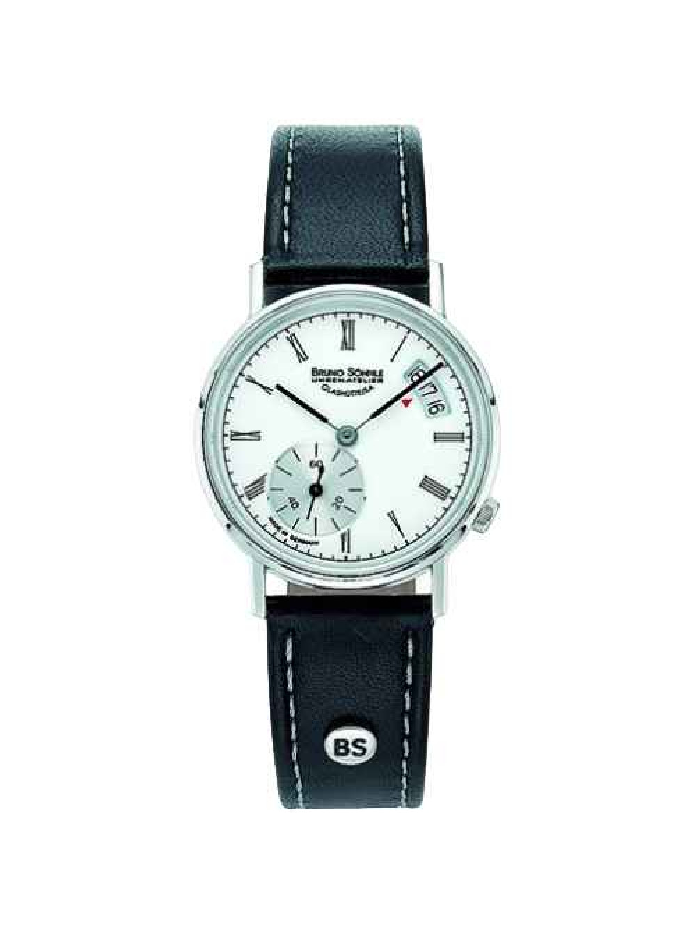 Оригинальный черный, кожаный ремешок BRUNO SOHNLE, гладкий, серая прострочка. Размер входящий в корпус и на пряжку 16/14 мм. Длина 70*110 мм.
