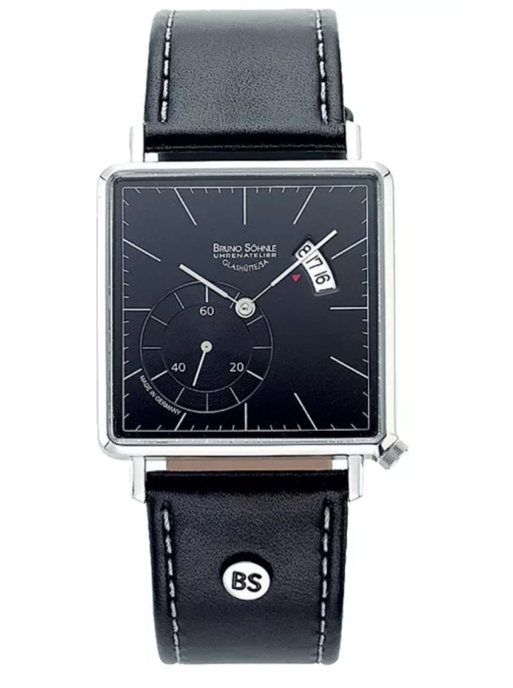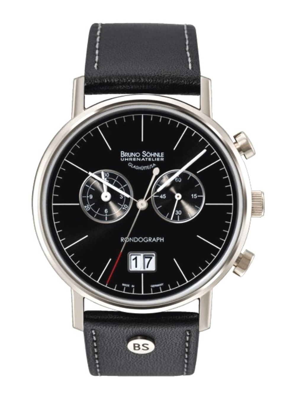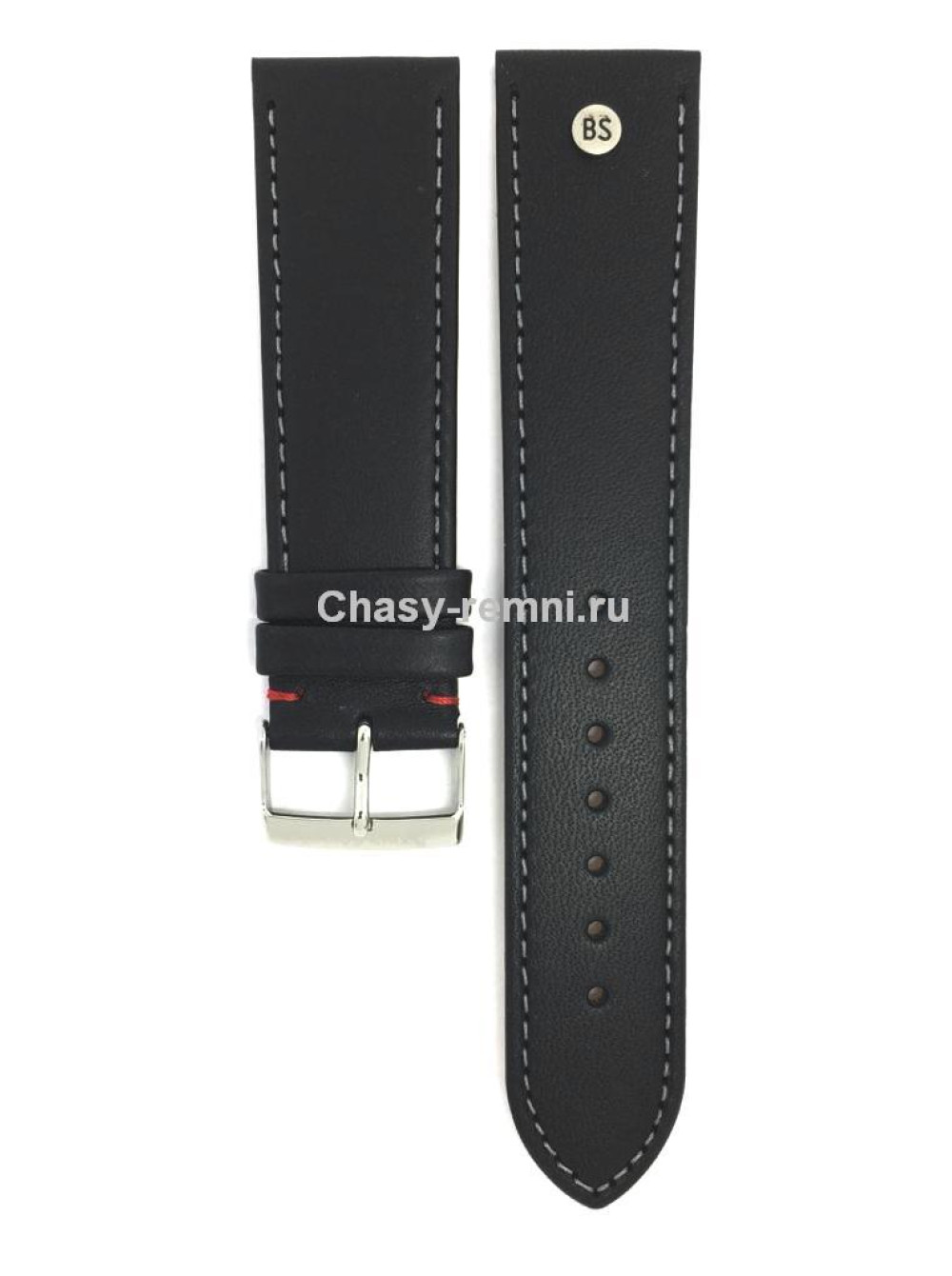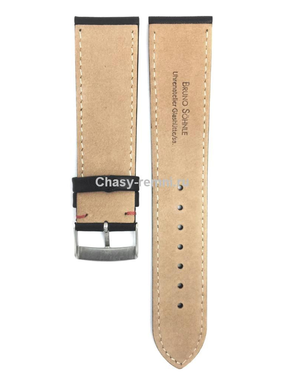 Оригинальный кожаный черный ремешок BRUNO SOHNLE, гладкий с серой прострочкой со стальной пряжкой. Размер входящий в корпус и на пряжку 22/20 мм.