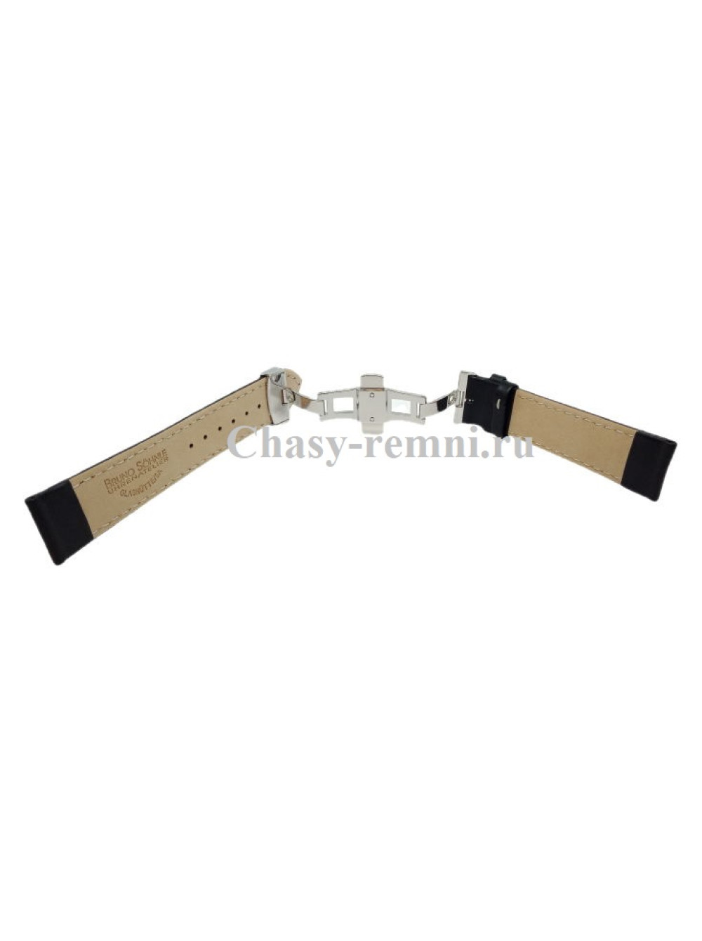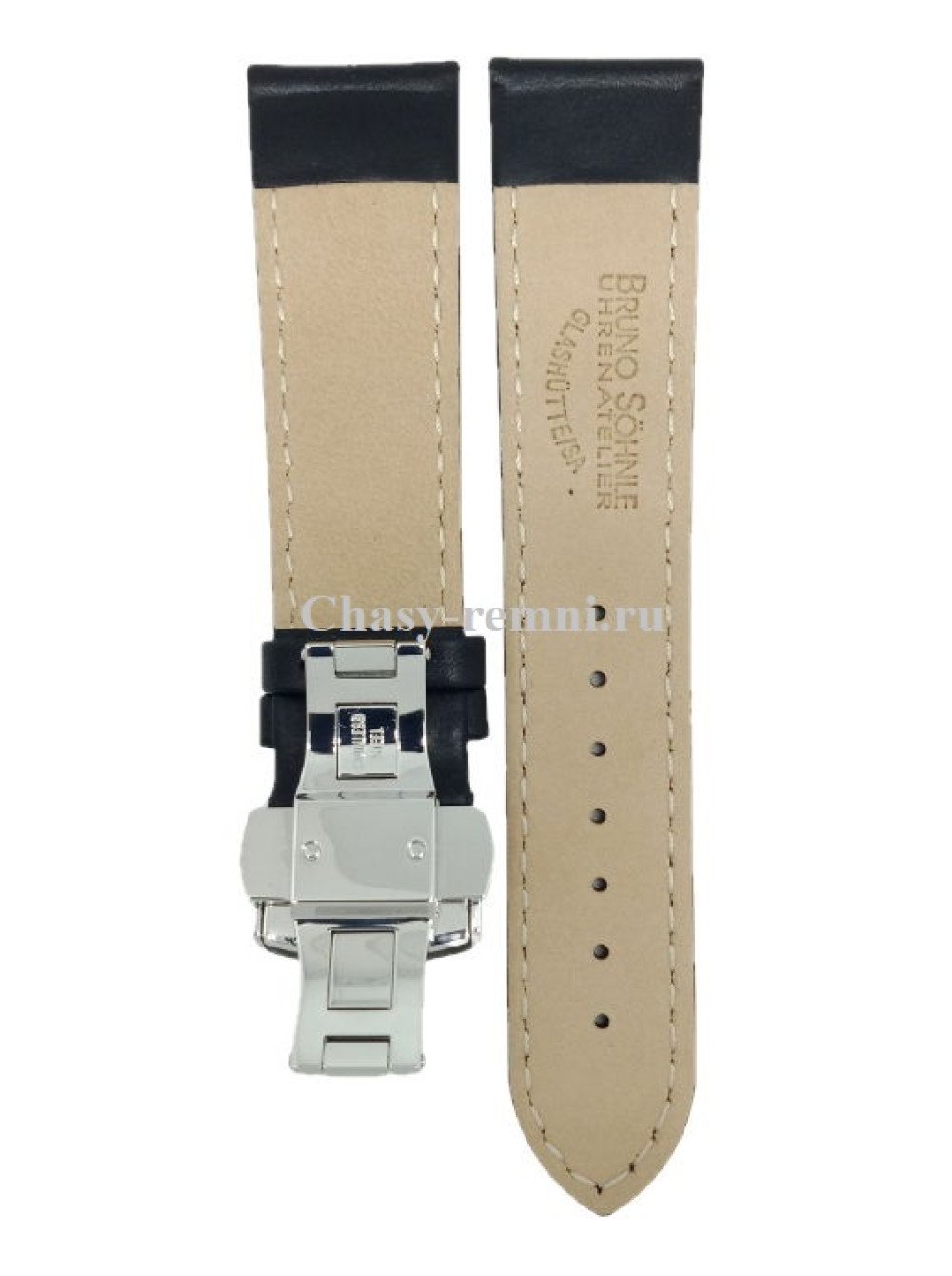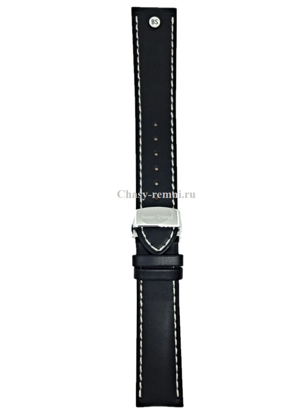 Оригинальный черный, кожаный ремешок BRUNO SOHNLE, гладкий, утолщенный, с белой прострочкой, со стальной клипсой. Размер ремешка входящий в корпус и на клипсу 22/20 мм. Длина 75*115 мм.