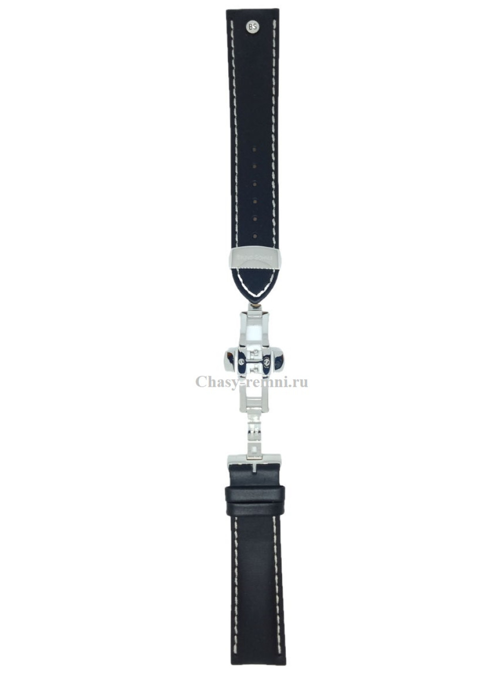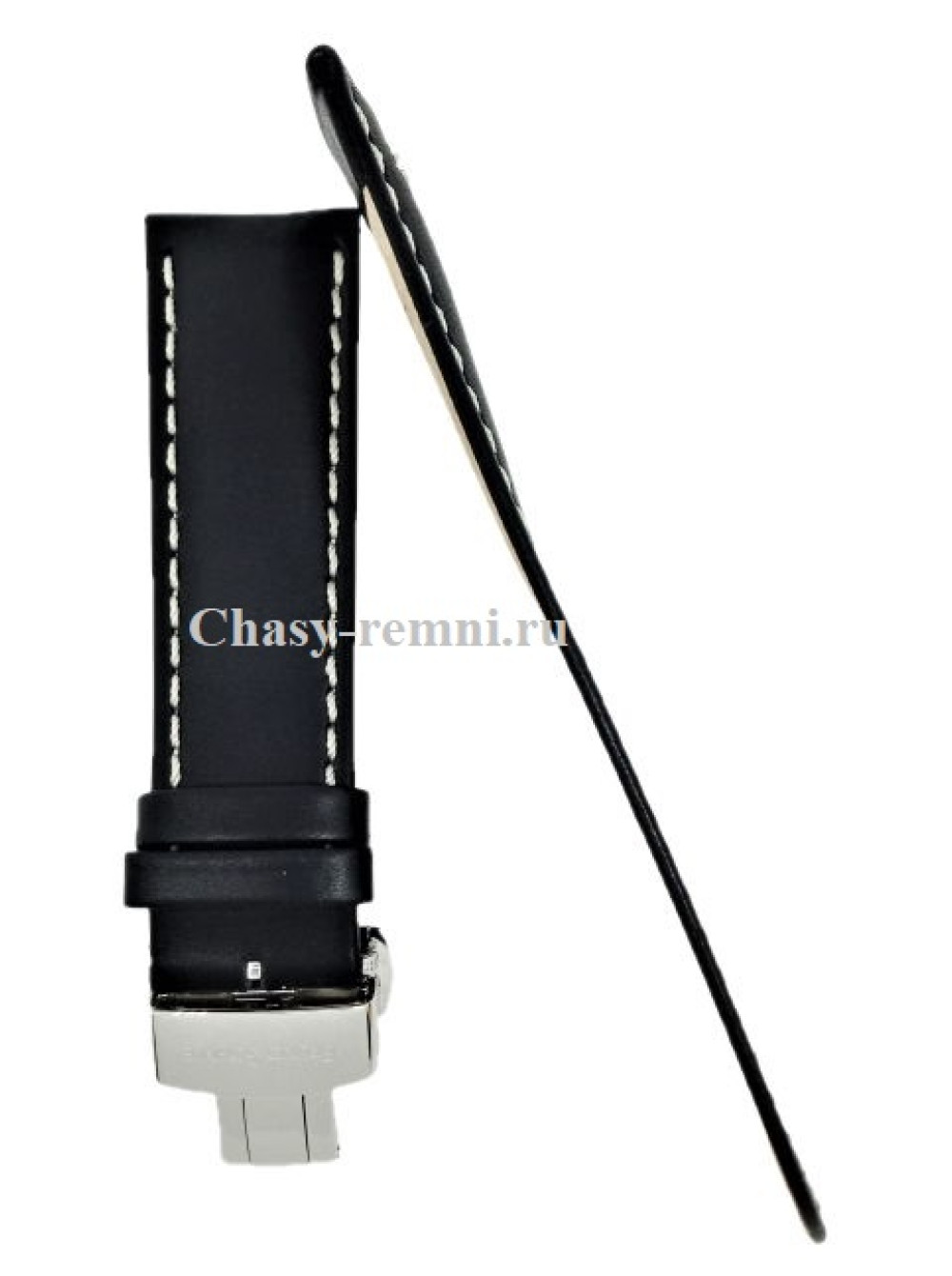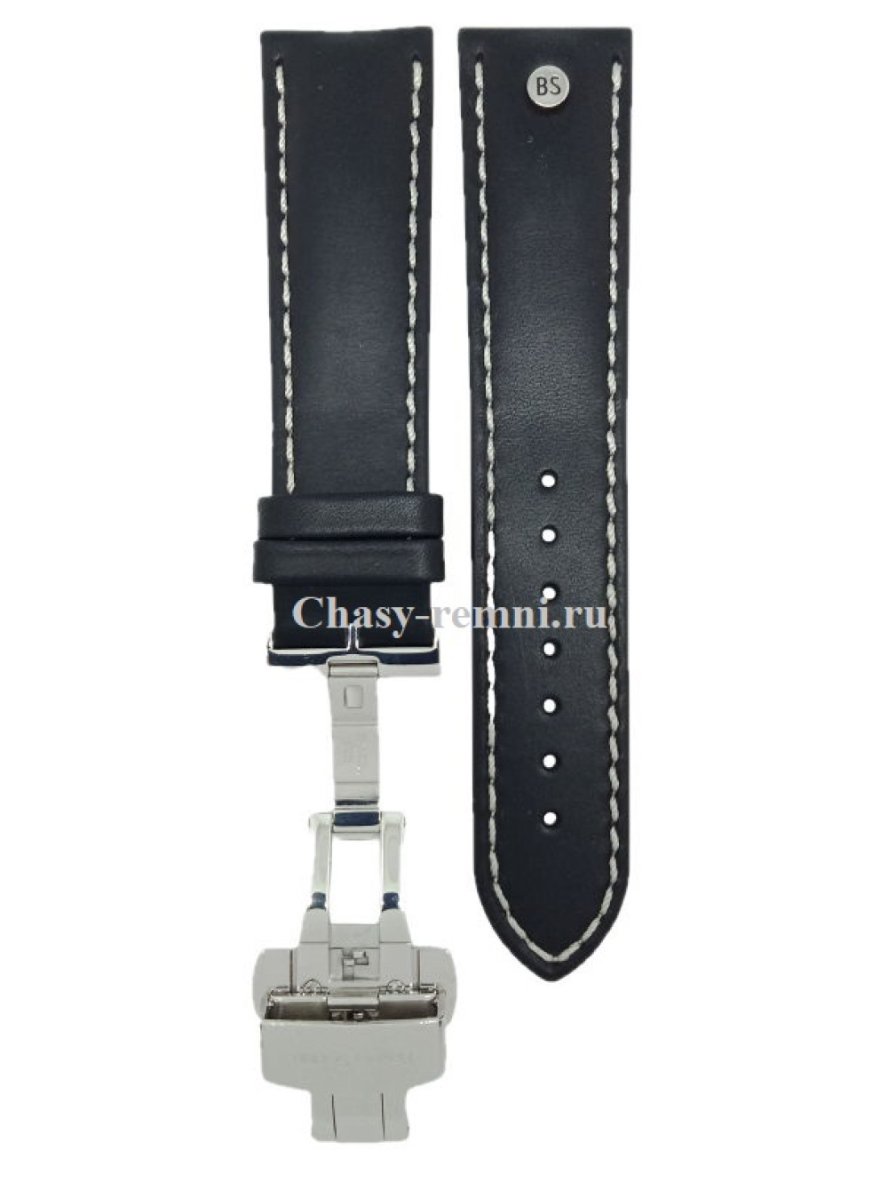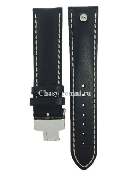 Оригинальный черный, кожаный ремешок BRUNO SOHNLE, гладкий, утолщенный, с белой прострочкой, со стальной клипсой. Размер ремешка входящий в корпус и на клипсу 22/20 мм. Длина 75*115 мм.