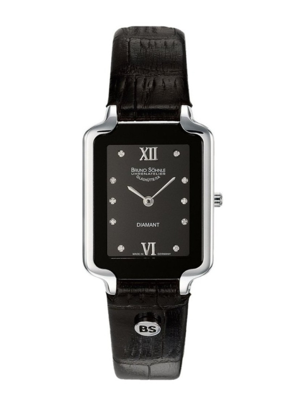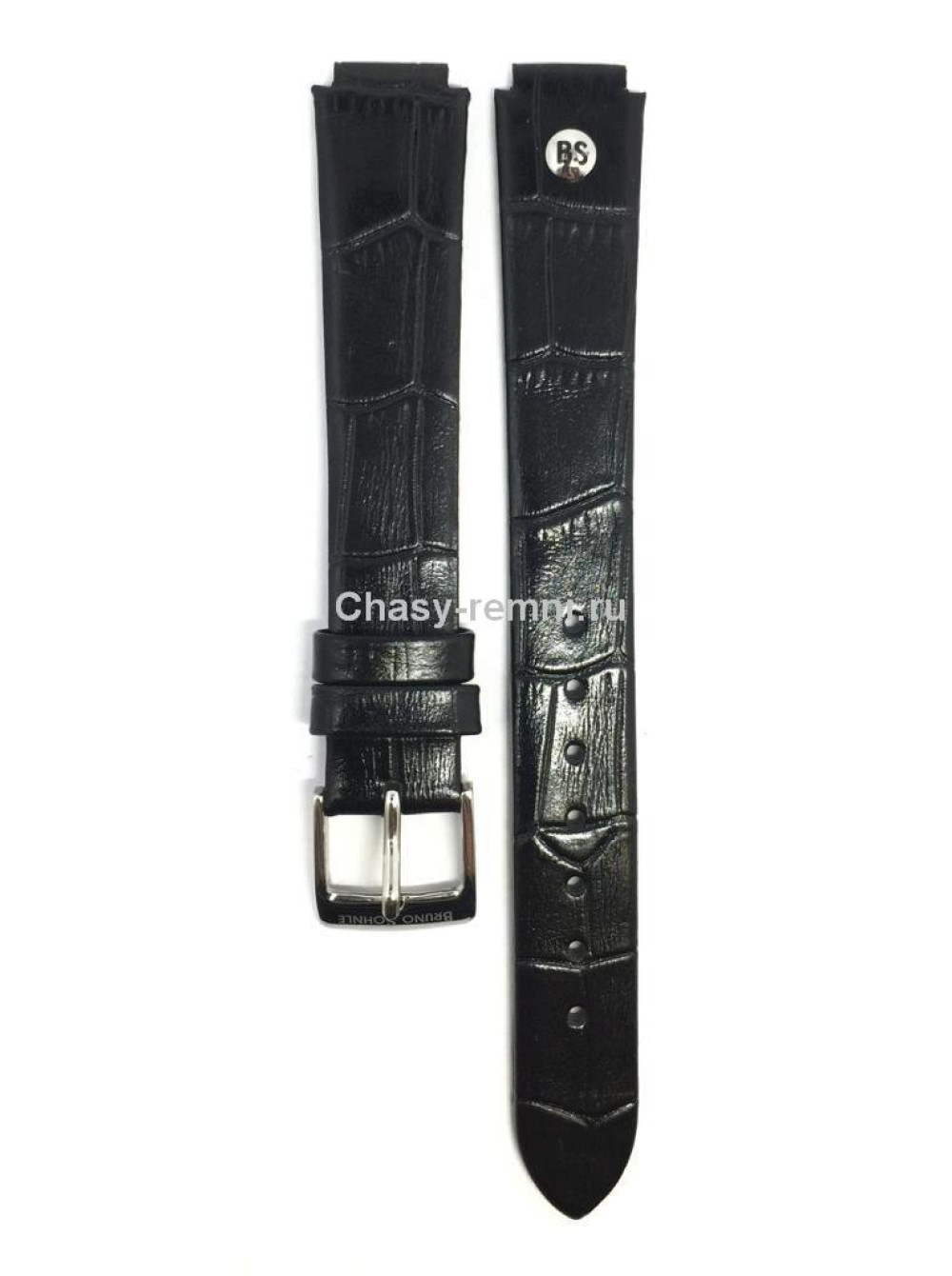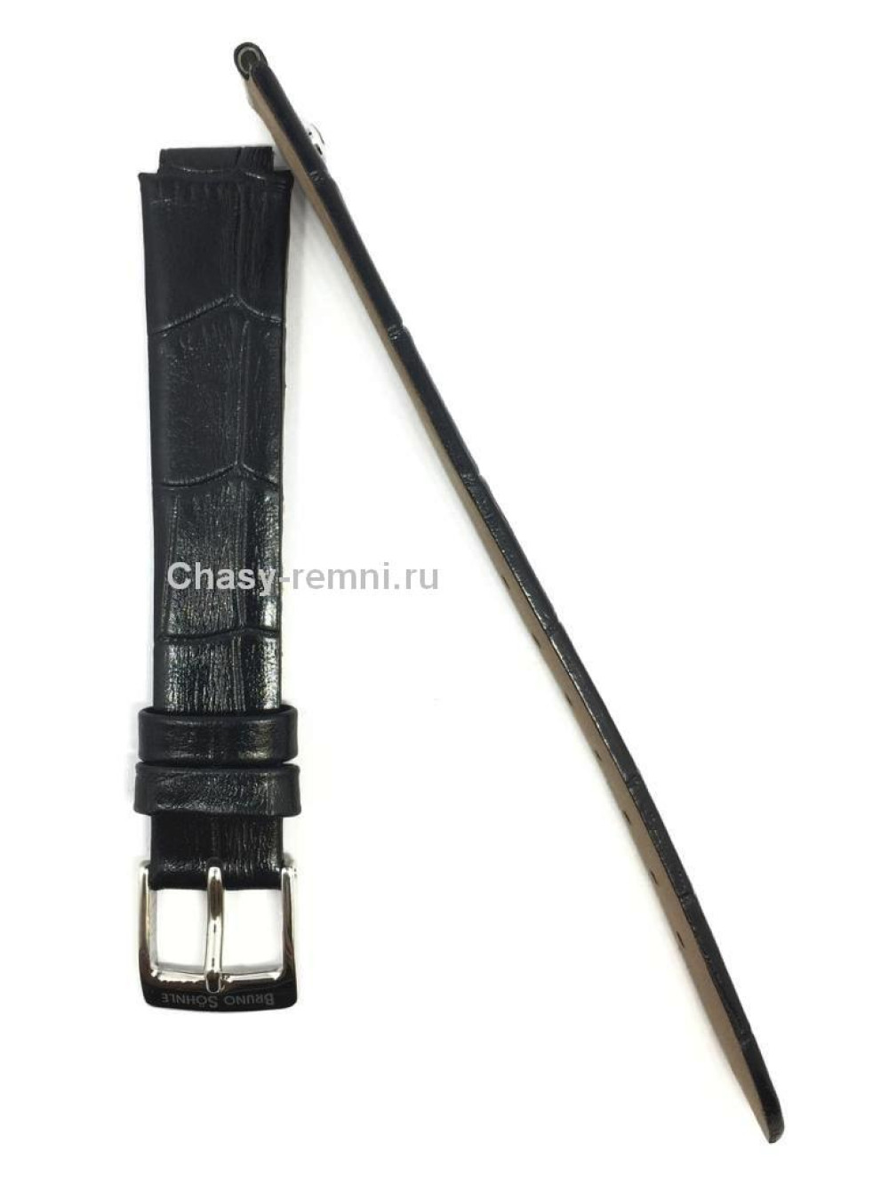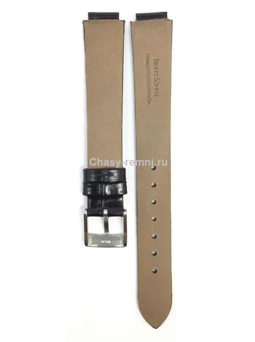 Оригинальный кожаный черный ремешок BRUNO SOHNLE, имитация крокодила, с вырезом под корпус, со стальной пряжкой. Удлиненный XL. Длина ремешка 80*120 мм.