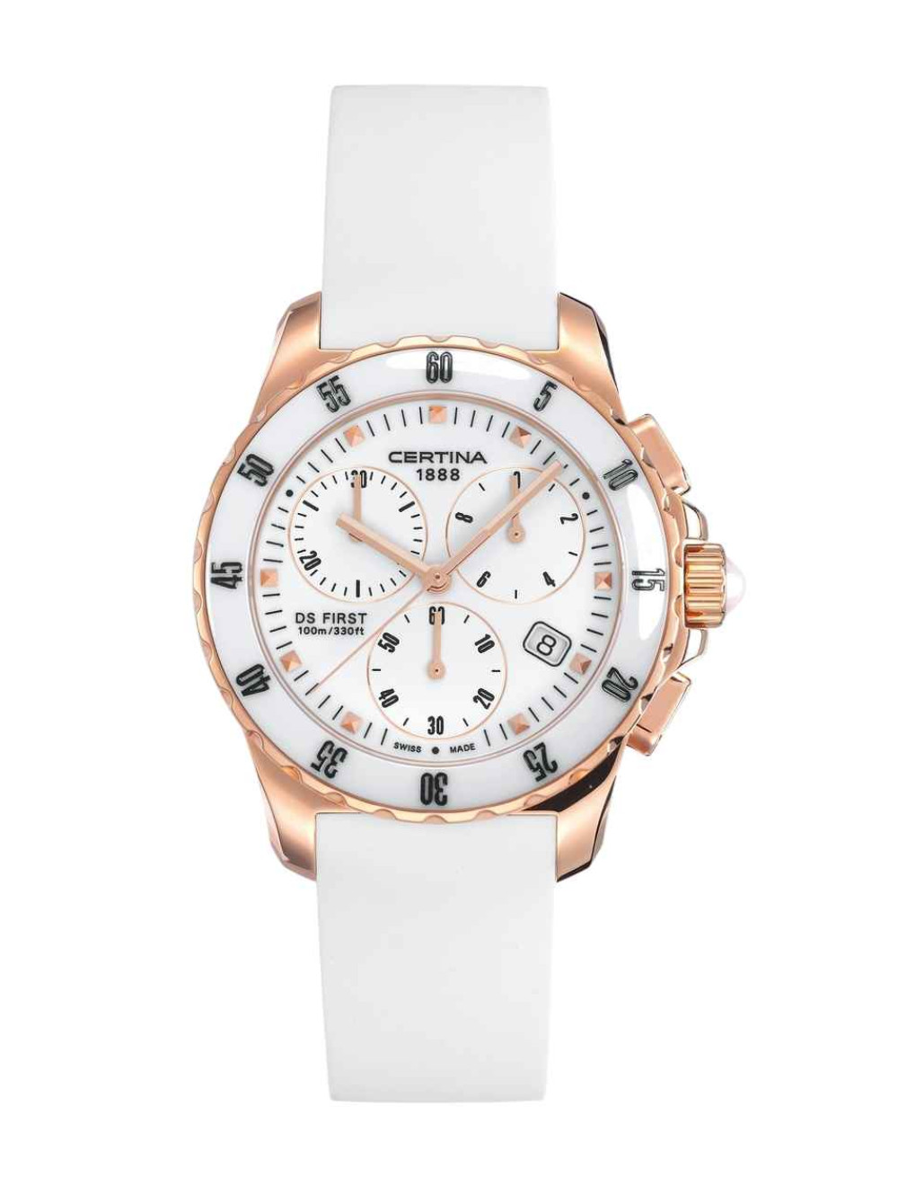 Оригинальный белый, каучуковый ремешок CERTINA. с розовой клипсой. DS FIRST LADY.