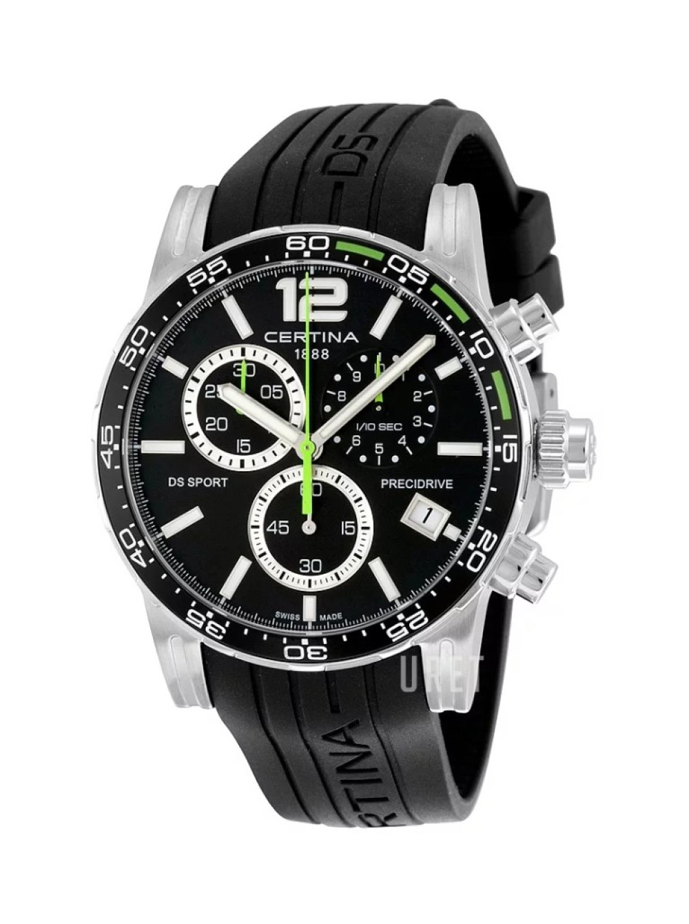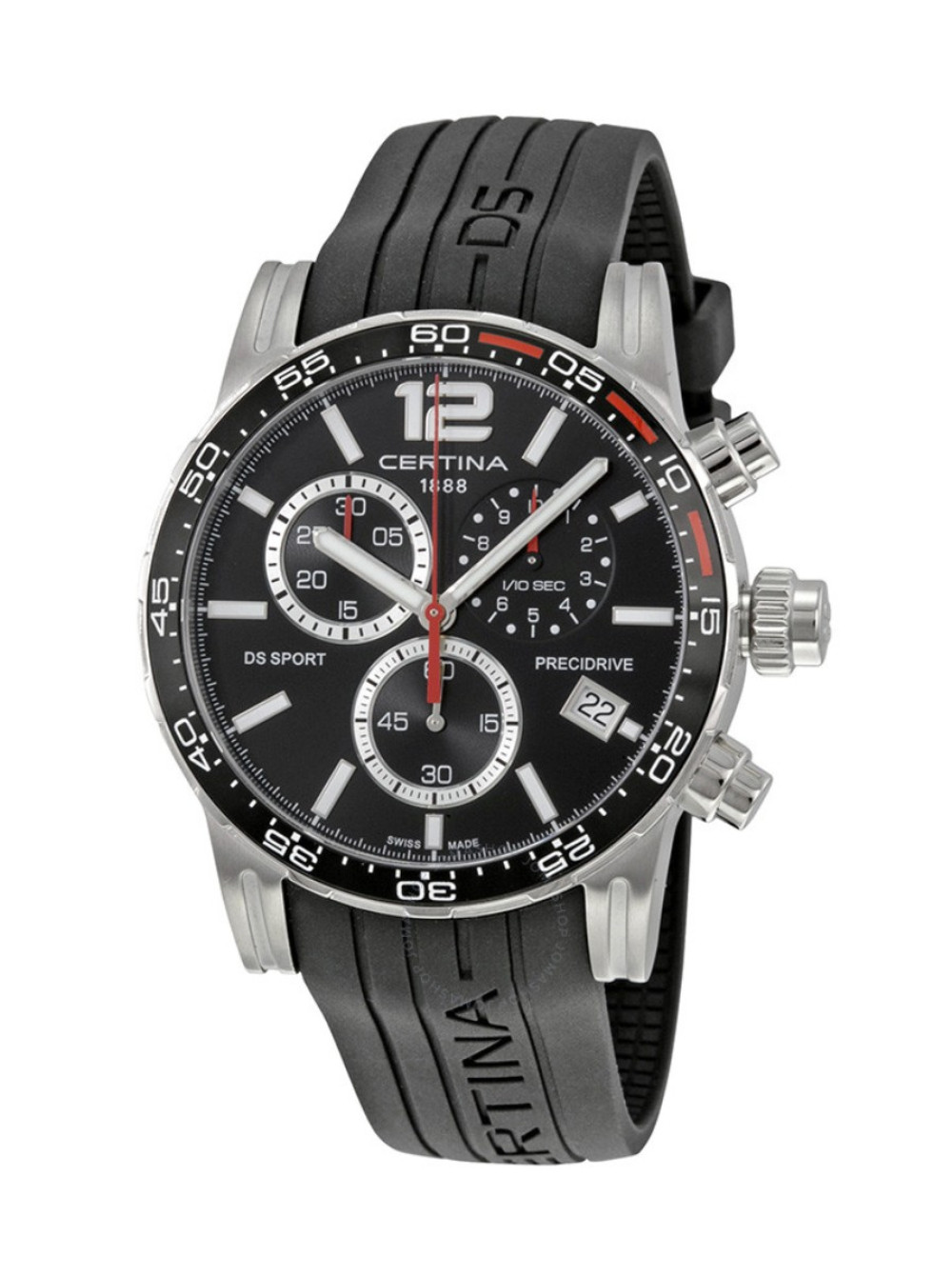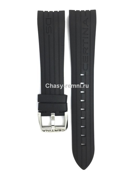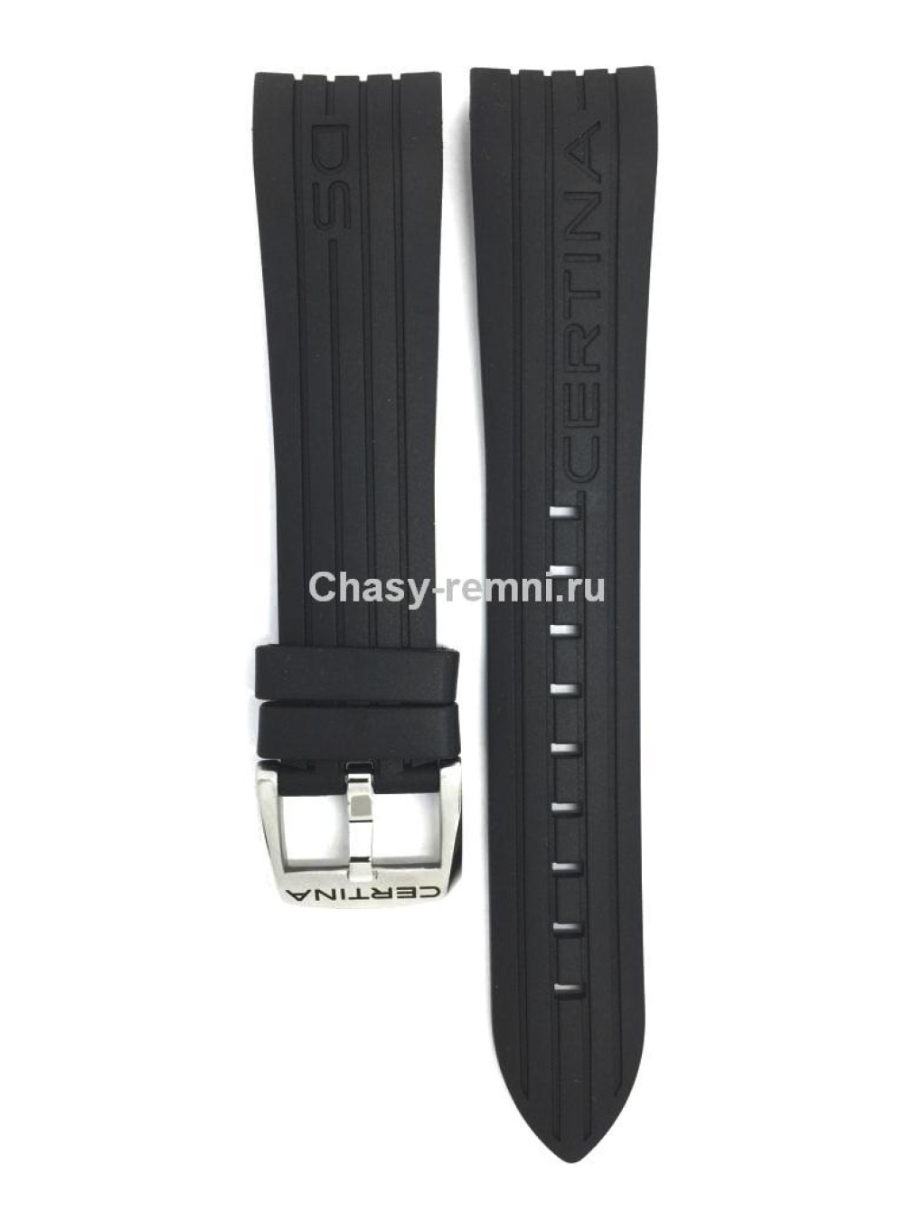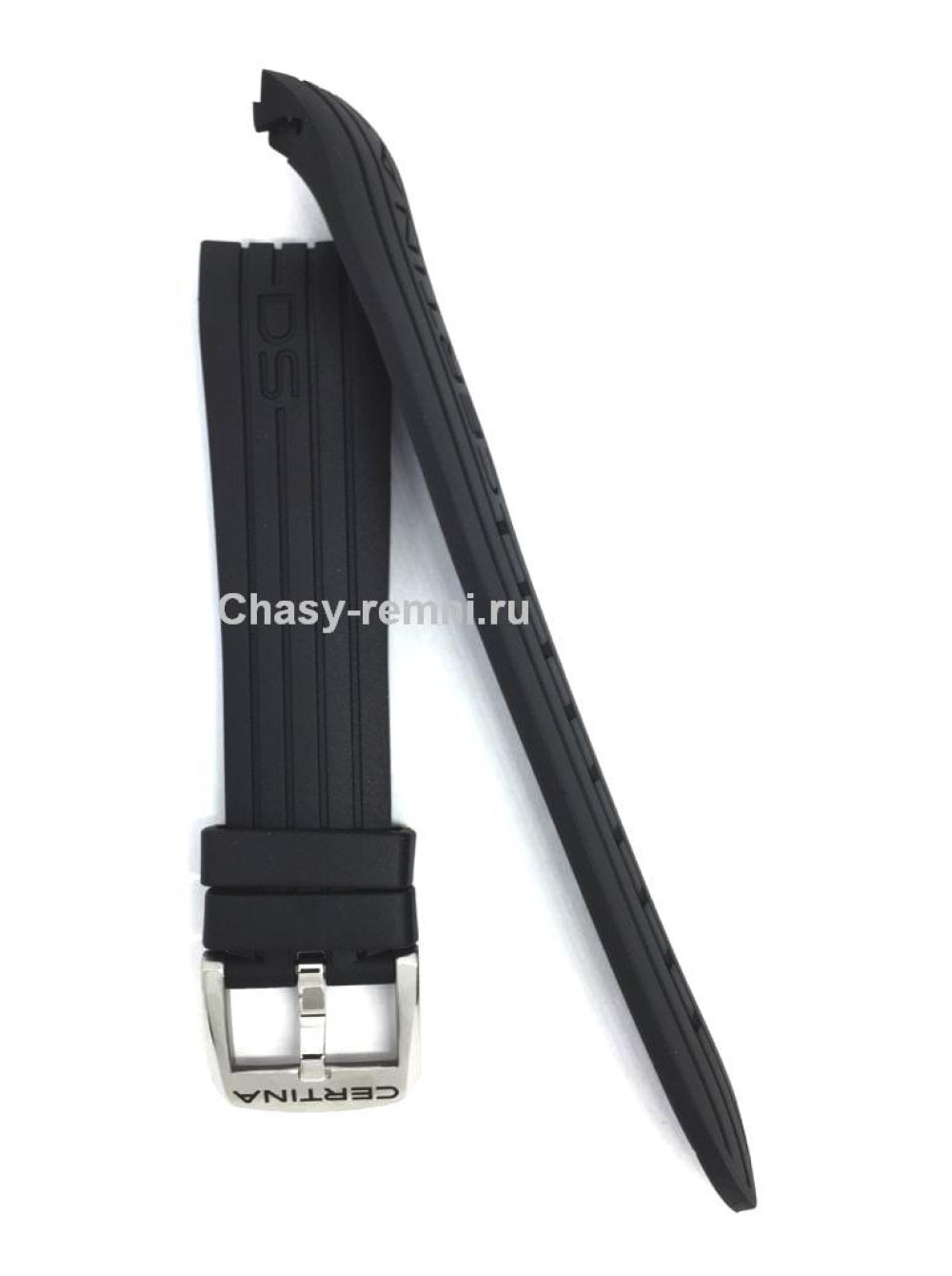 Оригинальный каучуковый, черный ремешок CERTINA, интегрированный под корпус, стальная пряжка. DS SPORT.