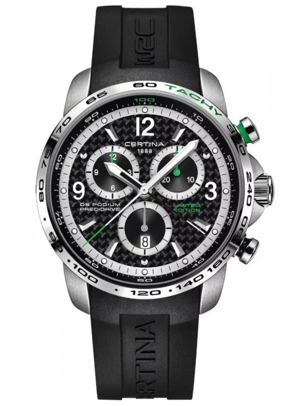 Оригинальный черный, каучуковый ремешок CERTINA, интегрированный под корпус, стальная клипса. DS PODIUM. Размер входящий в корпус и на клипсу 22/20 мм.