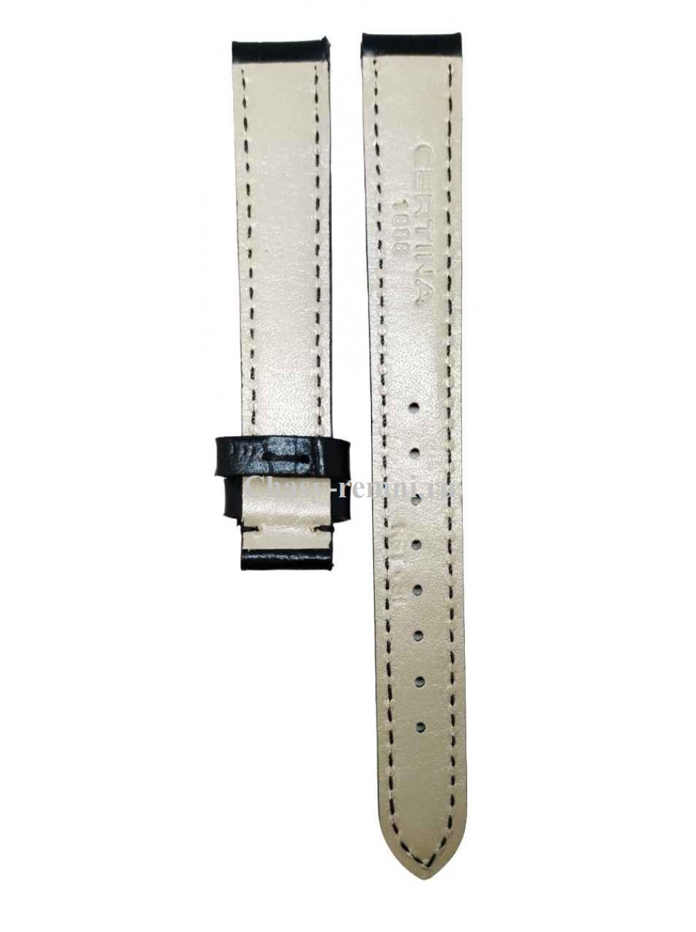 Оригинальный черный, кожаный ремешок CERTINA, имитация крокодила, без клипсы. DS PRIME. Размер входящий в корпус и на клипсу 13/12 мм. Длина ремешка 65*110 мм.
