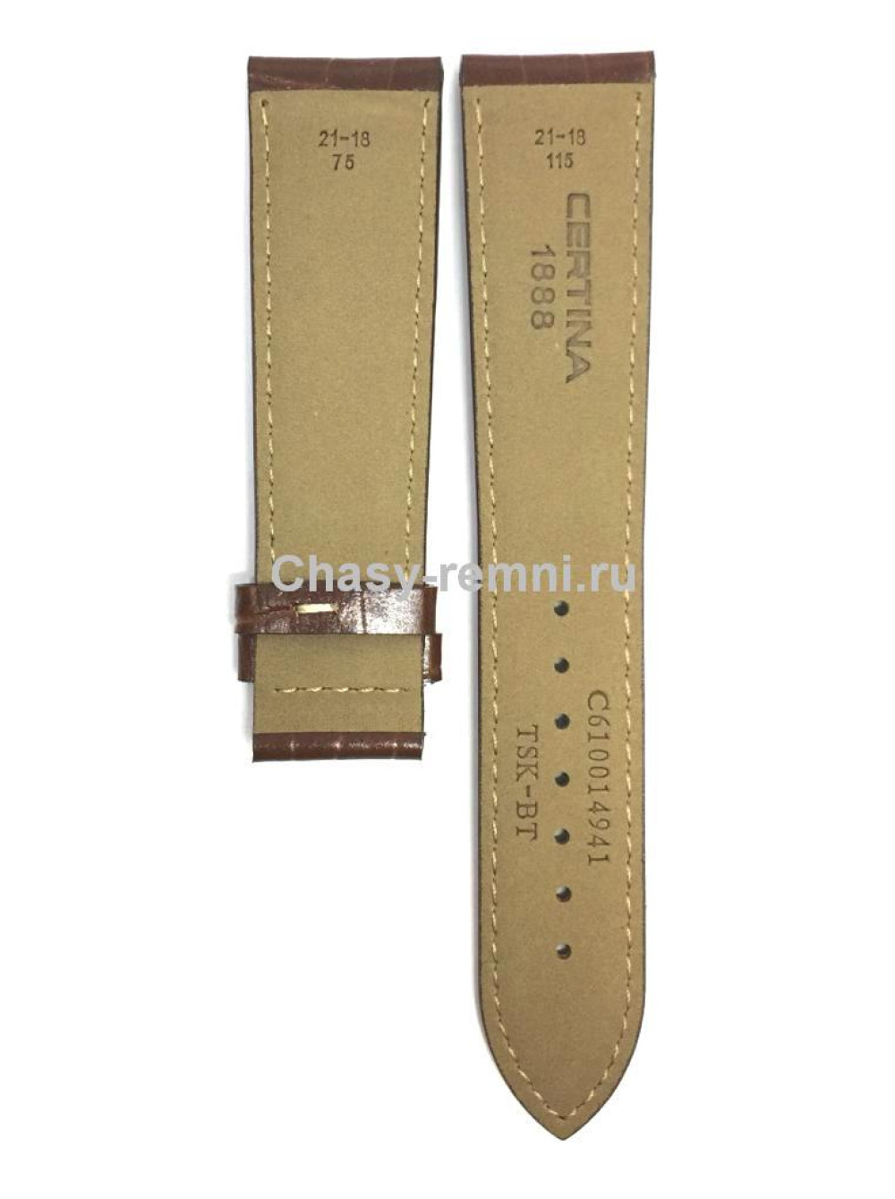 Оригинальный коричневый, кожаный ремешок CERTINA, имитация крокодила. без клипсы. DS PODIUM. Размер входящий в корпус и на клипсу 21/18 мм. Длина ремешка 75*115 мм.