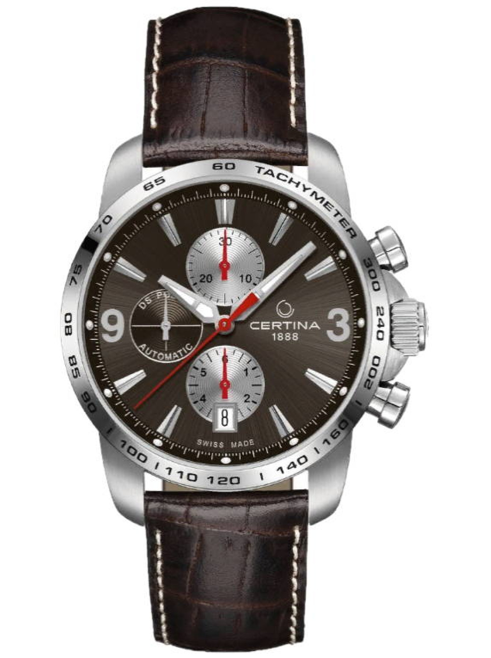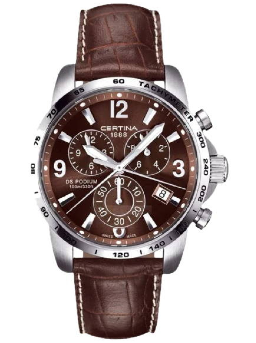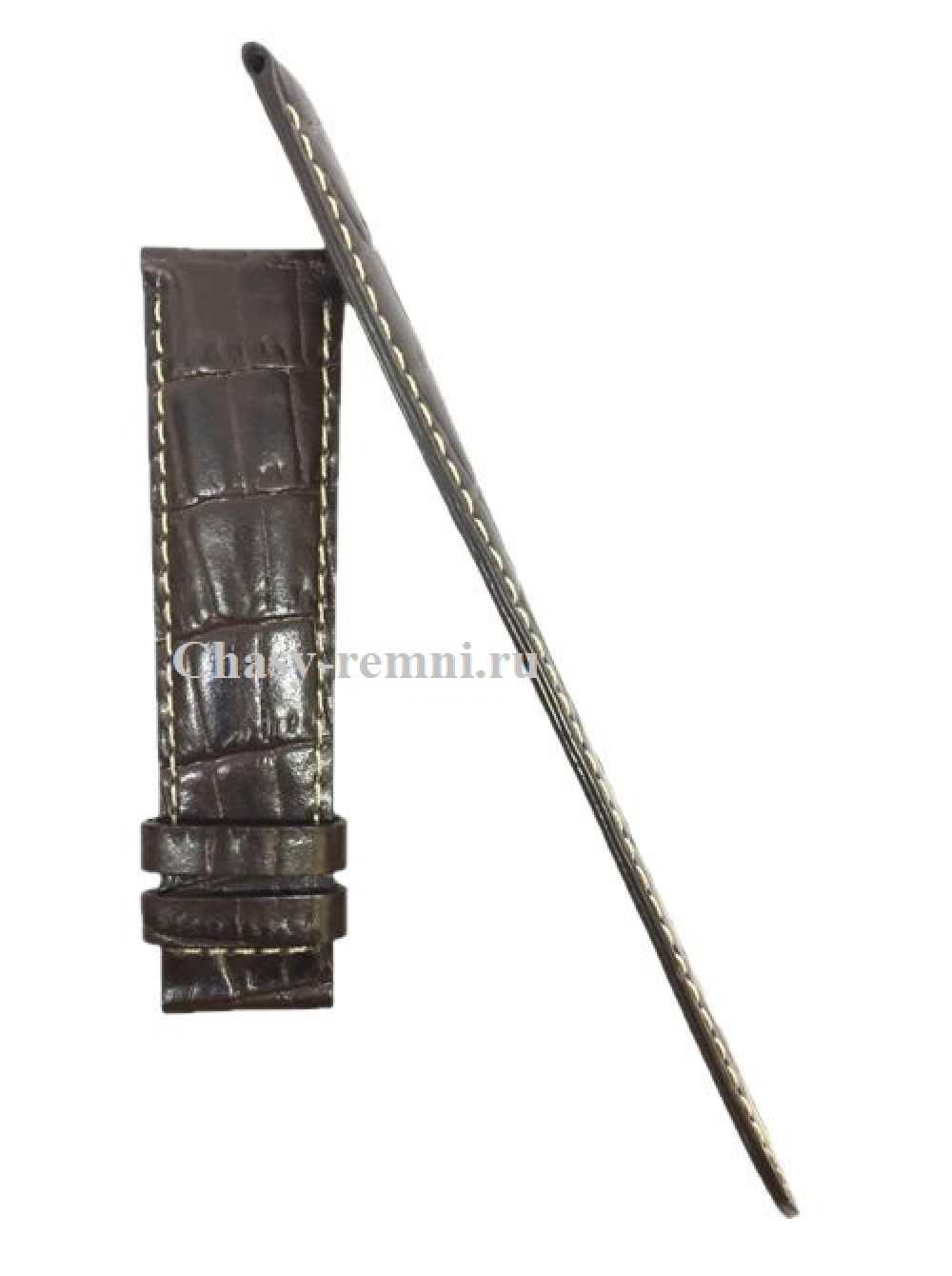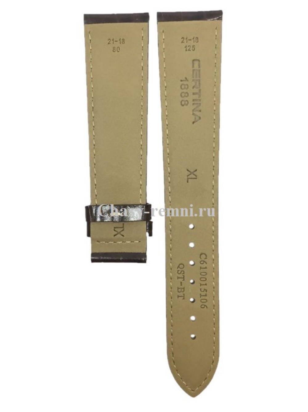 Оригинальный коричневый кожаный ремешок CERTINA, имитация крокодила, белая прострочка, без клипсы. Удлиненный XL. DS PODIUM. Размер входящий в корпус и на клипсу 21/18 мм. Длина ремешка 80*125 мм.