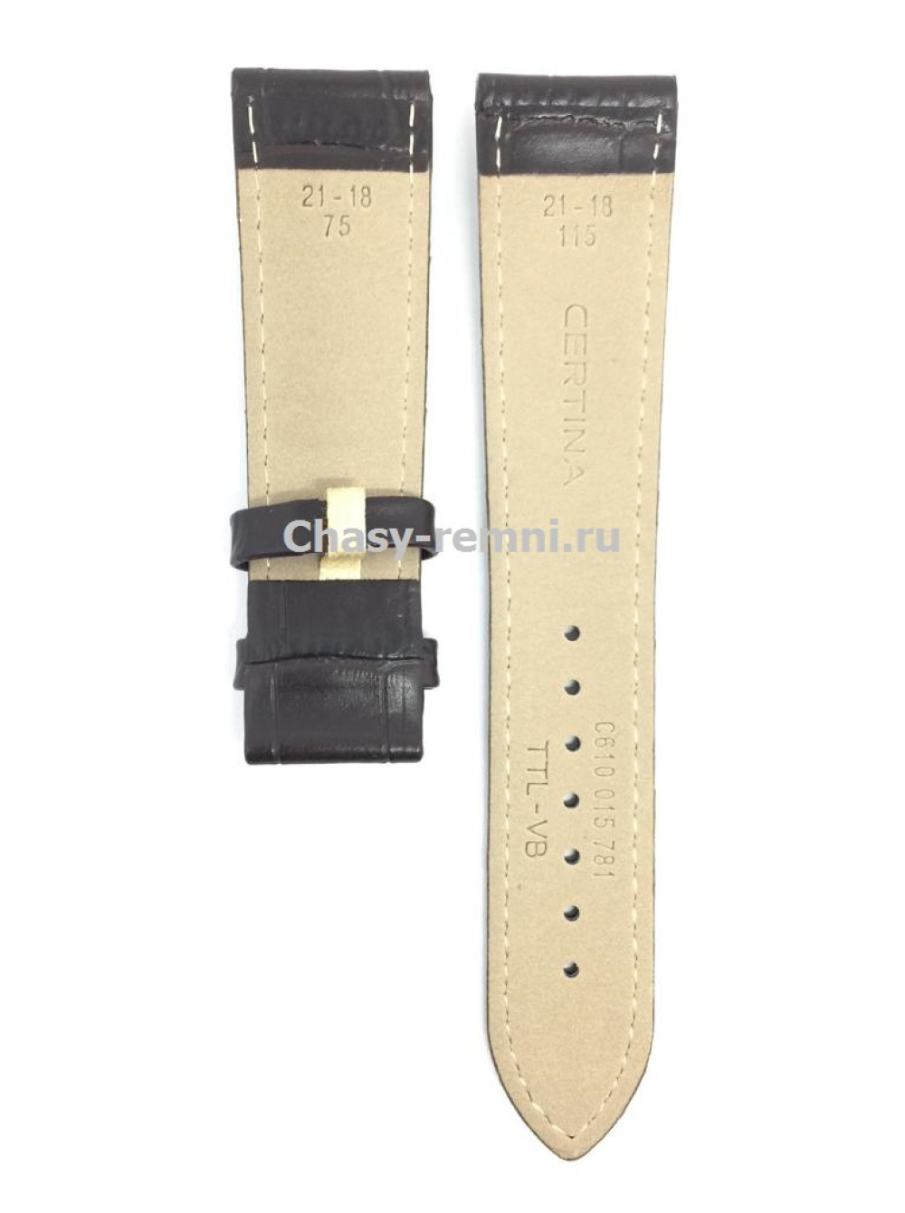 Оригинальный темно-коричневый, кожаный ремешок CERTINA, имитация крокодила, без клипсы, DS 1LTD. Размер входящий в корпус и на клипсу 21/18 мм. Длина ремешка 75*115 мм.