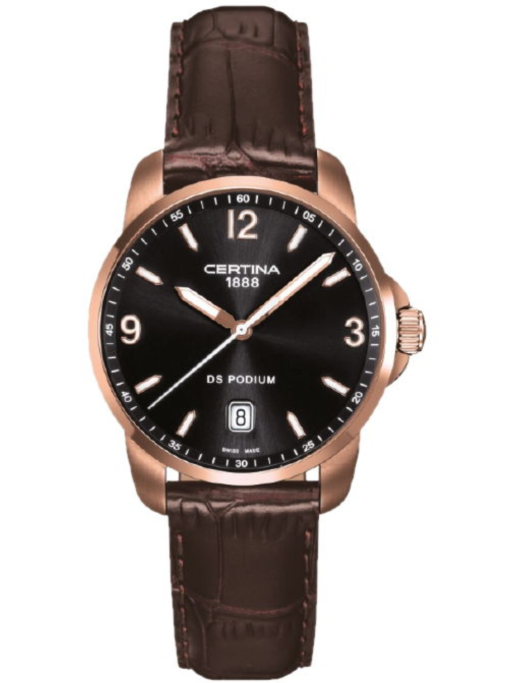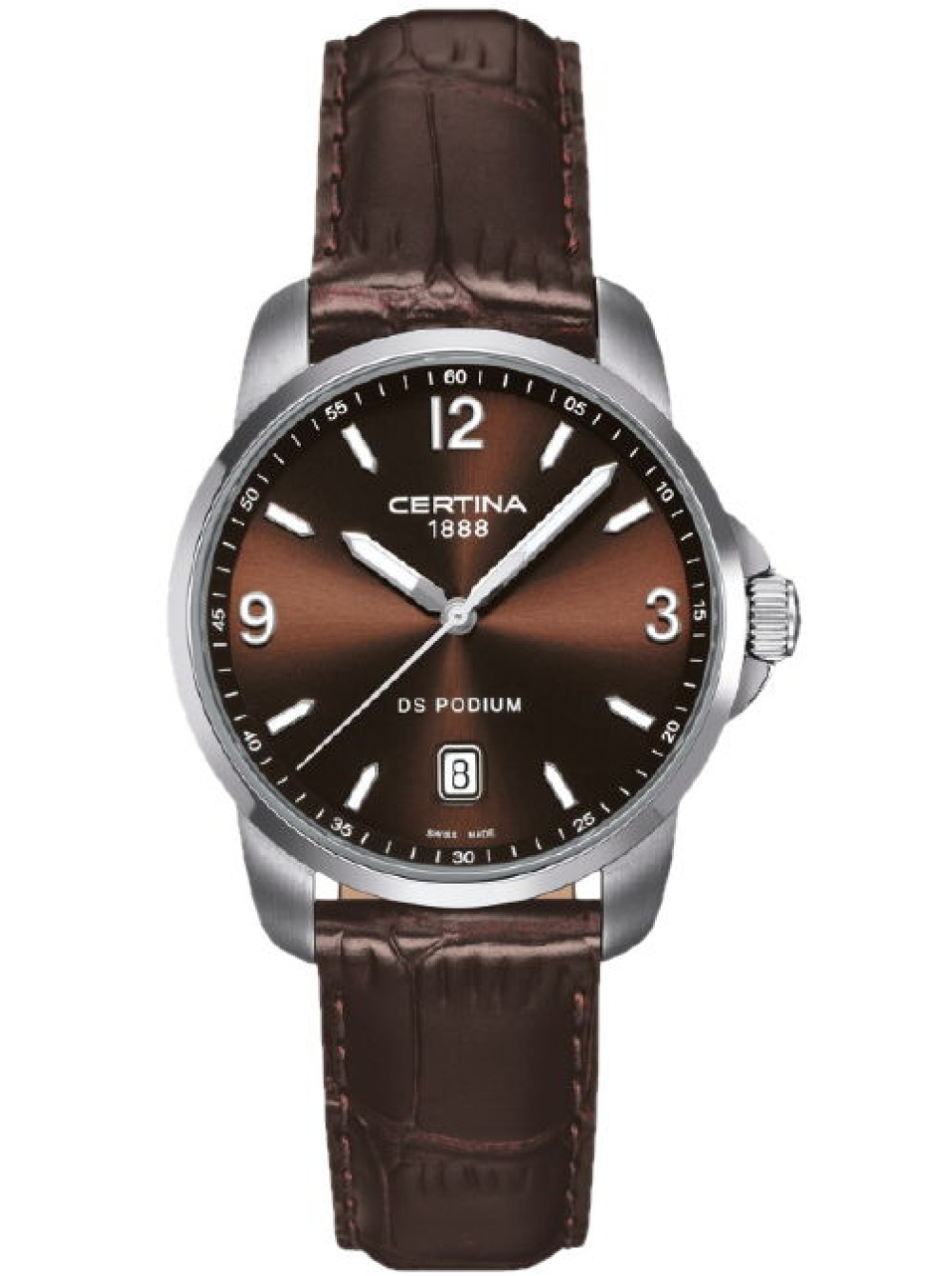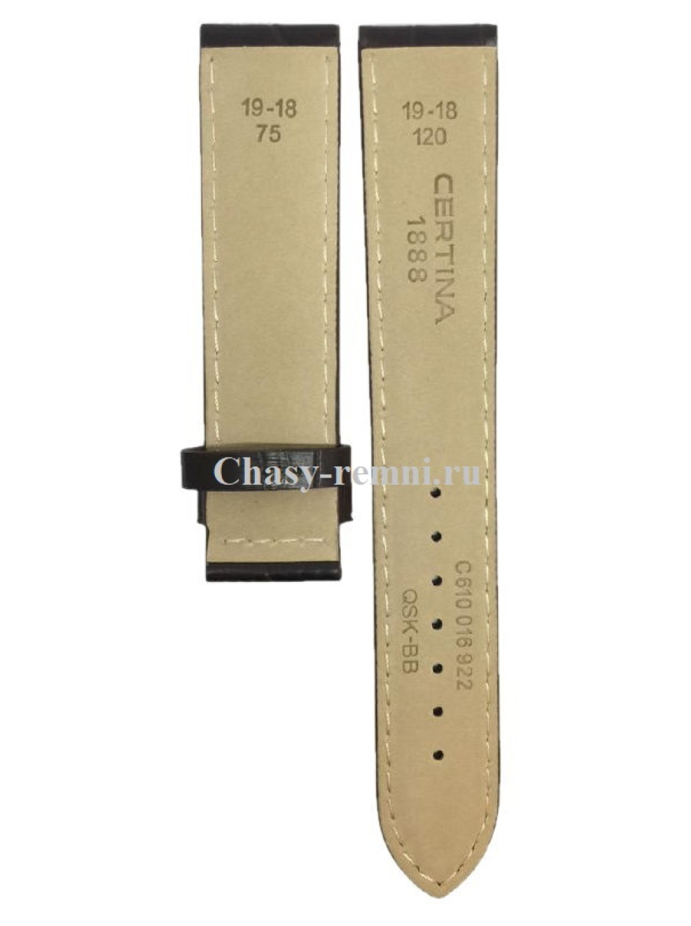 Оригинальный темно-коричневый, кожаный ремешок CERTINA, имитация крокодила, без клипсы. DS PODIUM. Размер ремешка входящий в корпус и на клипсу 19/18 мм. Длина ремешка 75*120 мм.