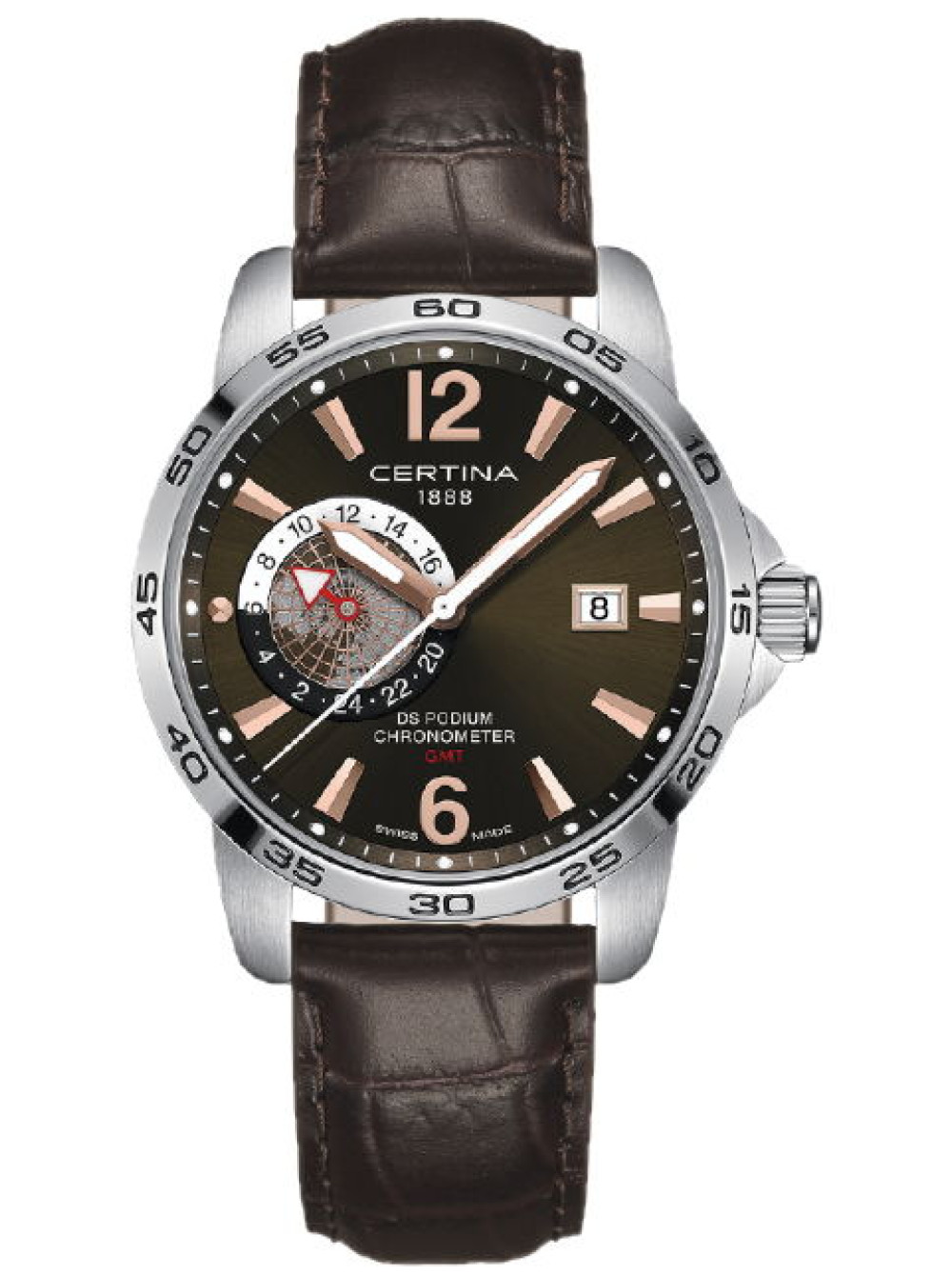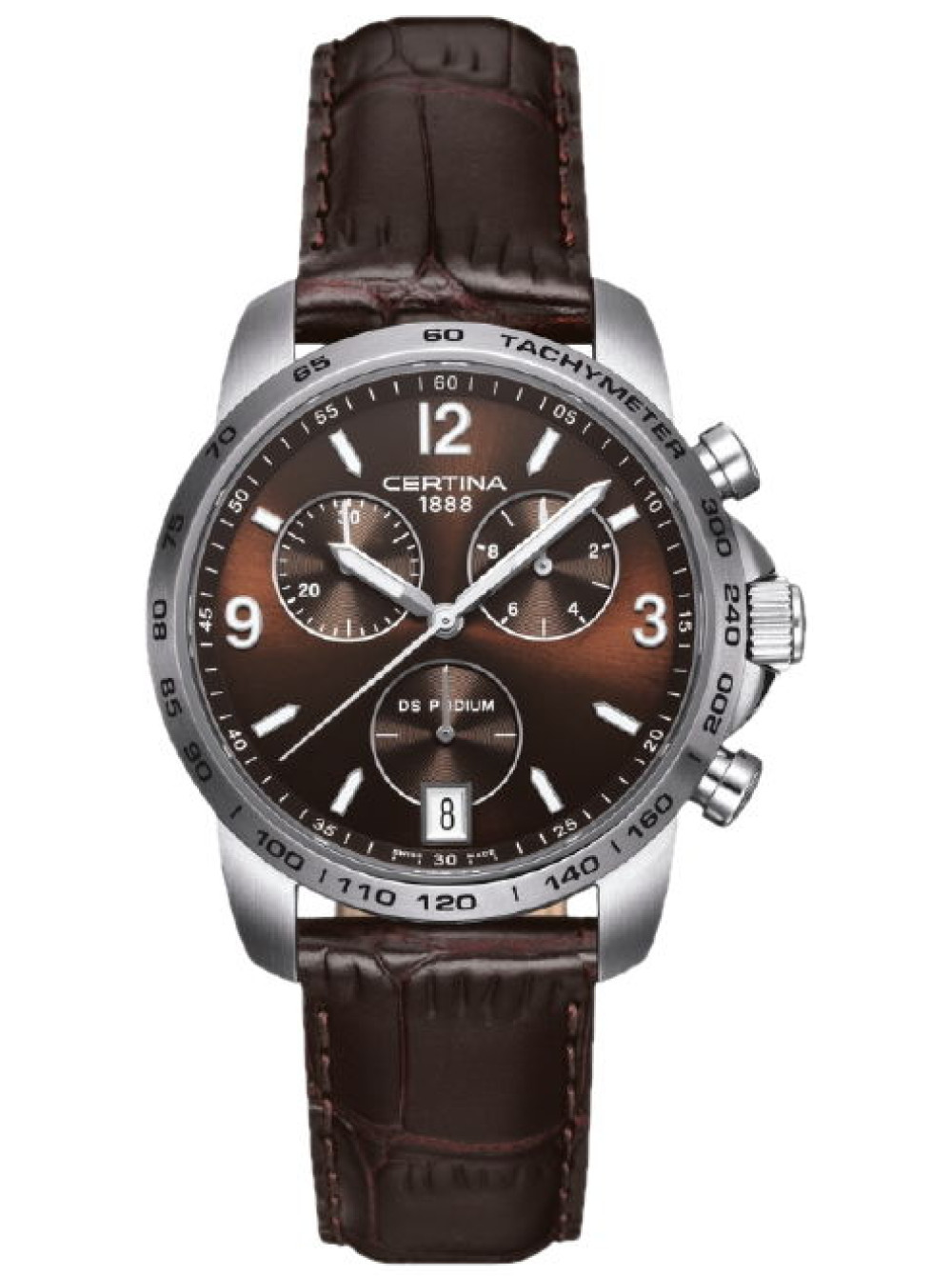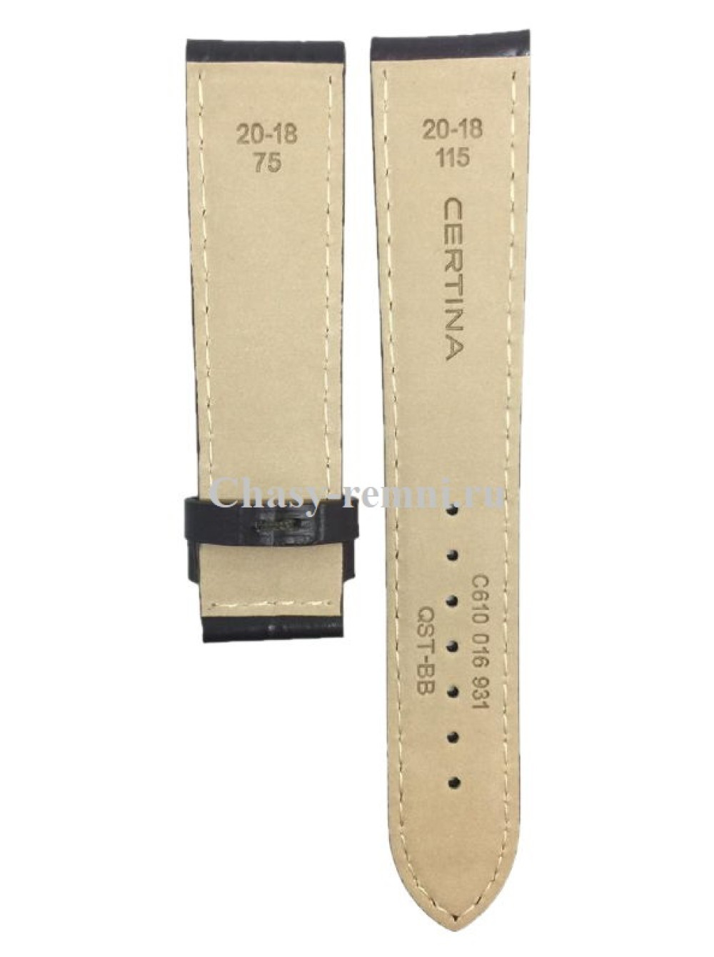 Оригинальный темно-коричневый кожаный ремешок CERTINA, имитация крокодила, без клипсы. DS PODIUM. Размер ремешка входящий в корпус и на клипсу 20/18 мм. Длина ремешка 75*115 мм.