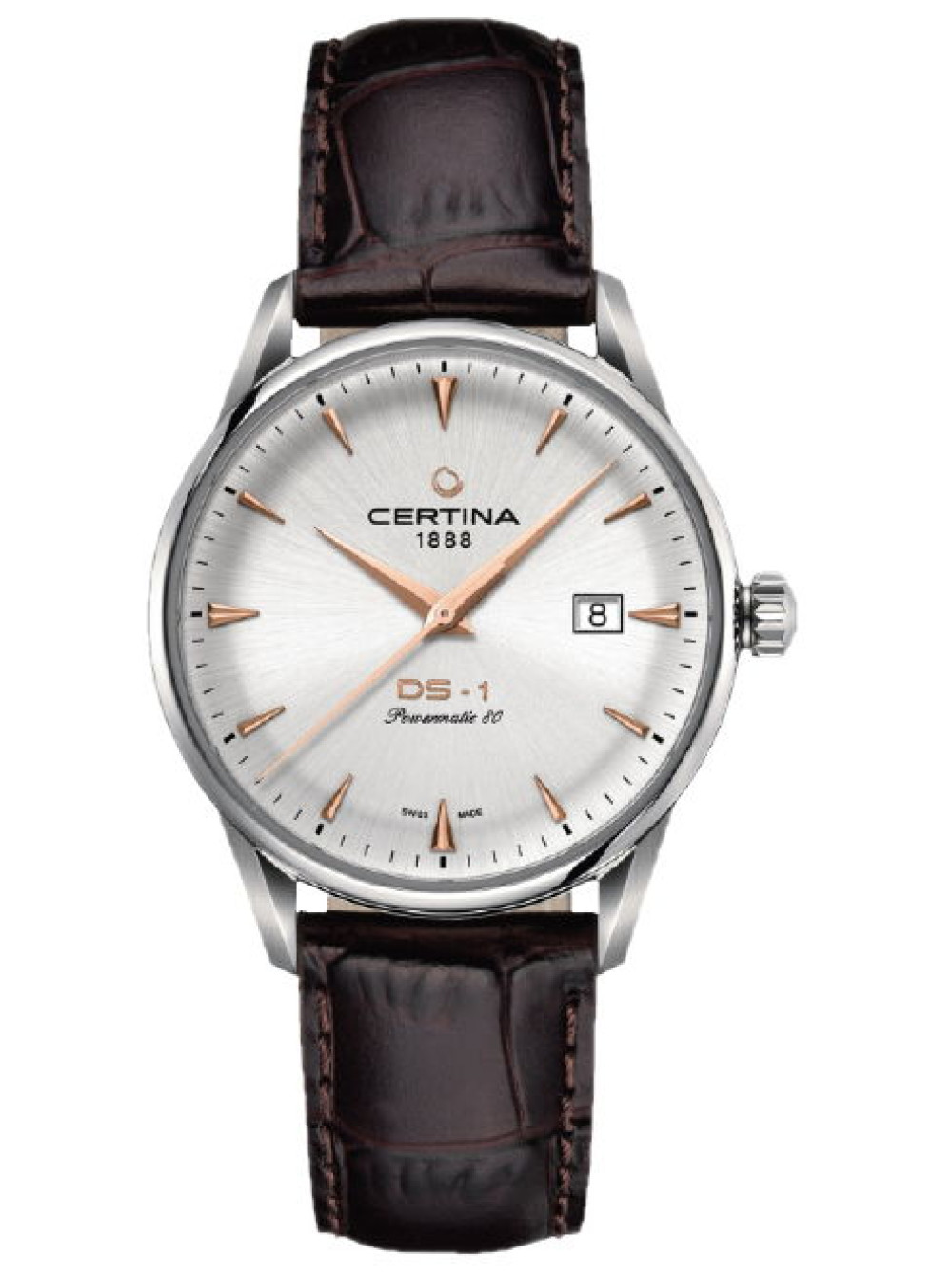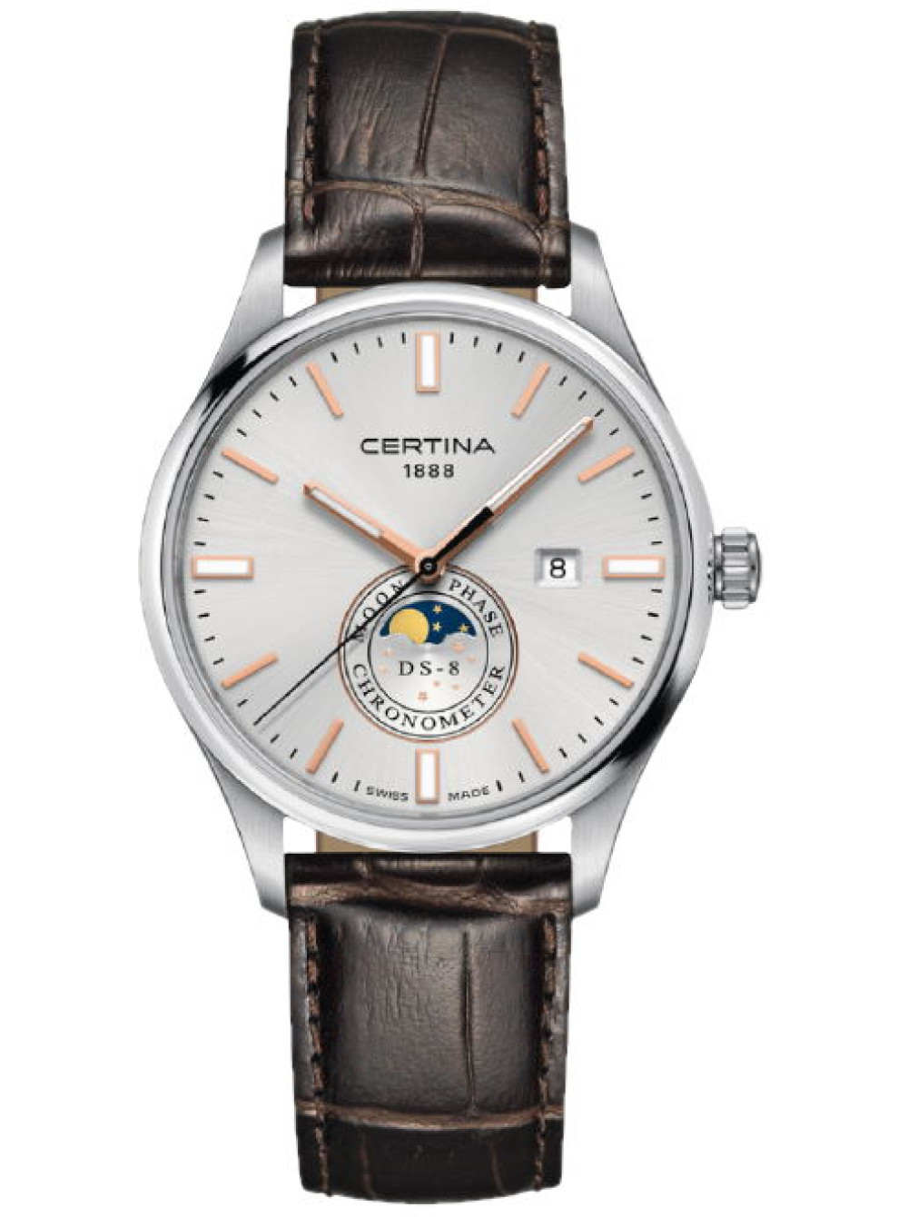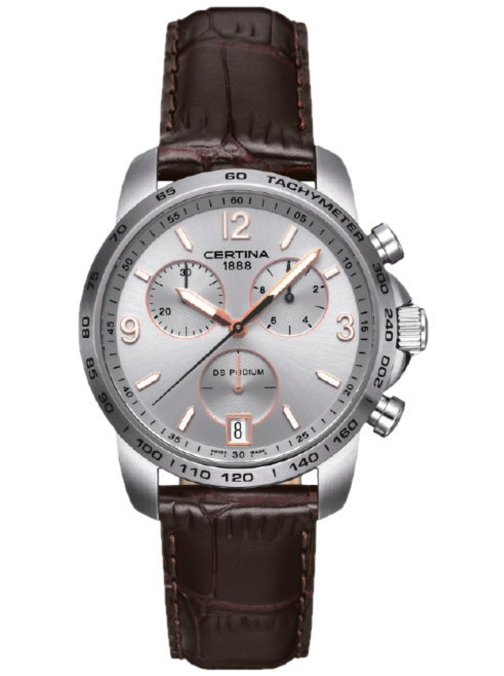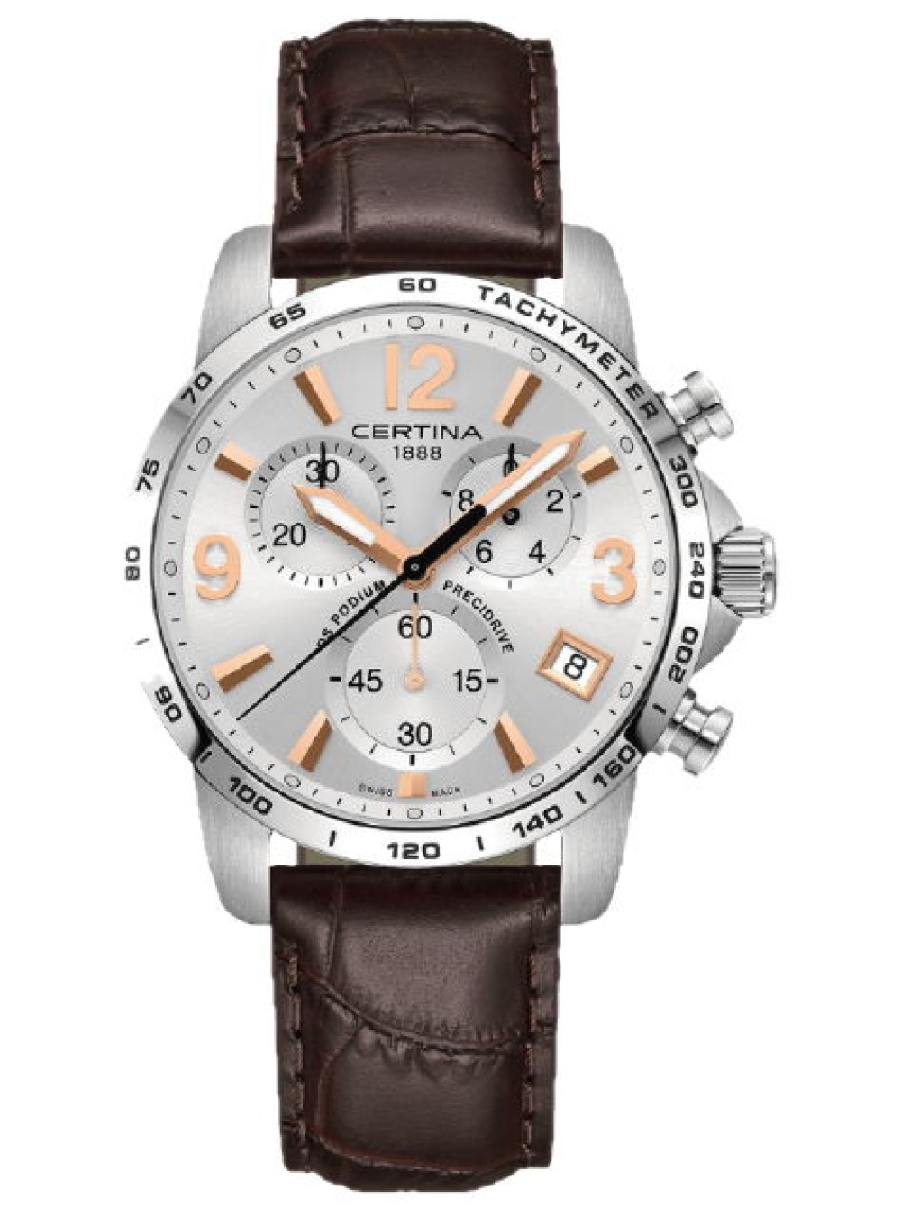 Оригинальный темно-коричневый кожаный ремешок CERTINA, имитация крокодила, без клипсы. DS PODIUM. Размер ремешка входящий в корпус и на клипсу 20/18 мм. Длина ремешка 75*115 мм.