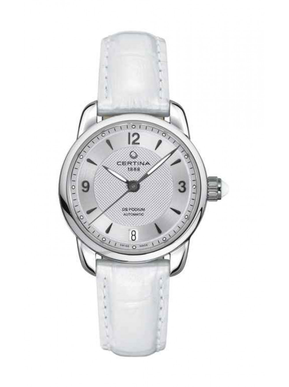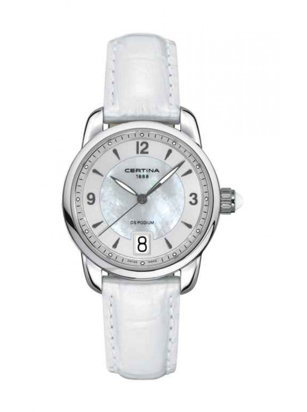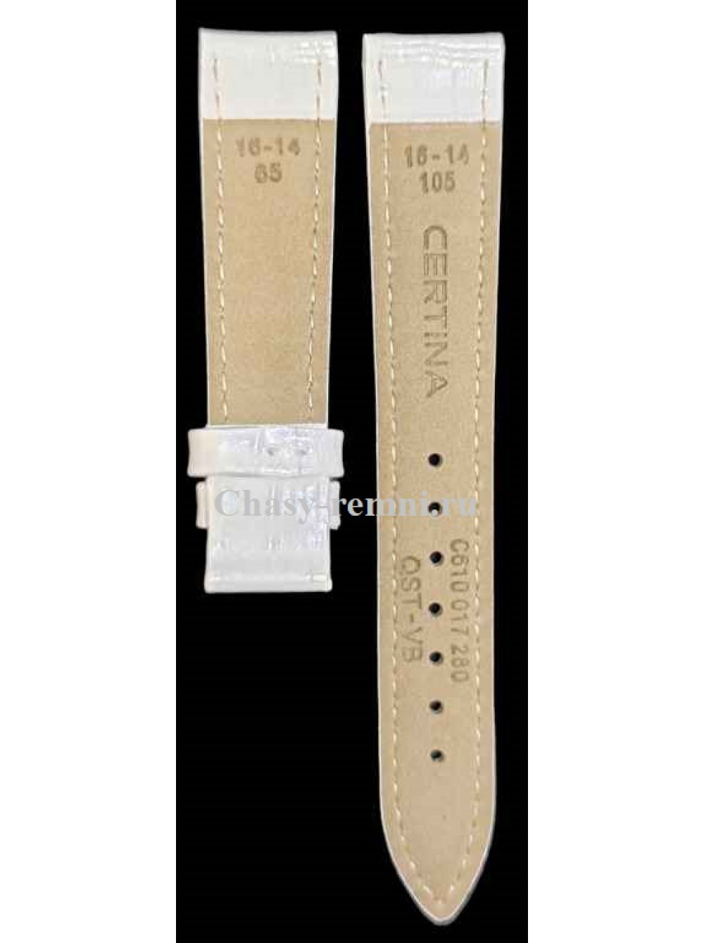 Оригинальный белый (перламутр), кожаный ремешок CERTINA, имитация крокодила, без клипсы. DS PODIUM. Размер ремешка входящий в корпус и на клипсу 16/14 мм. Длина 65*105 мм.