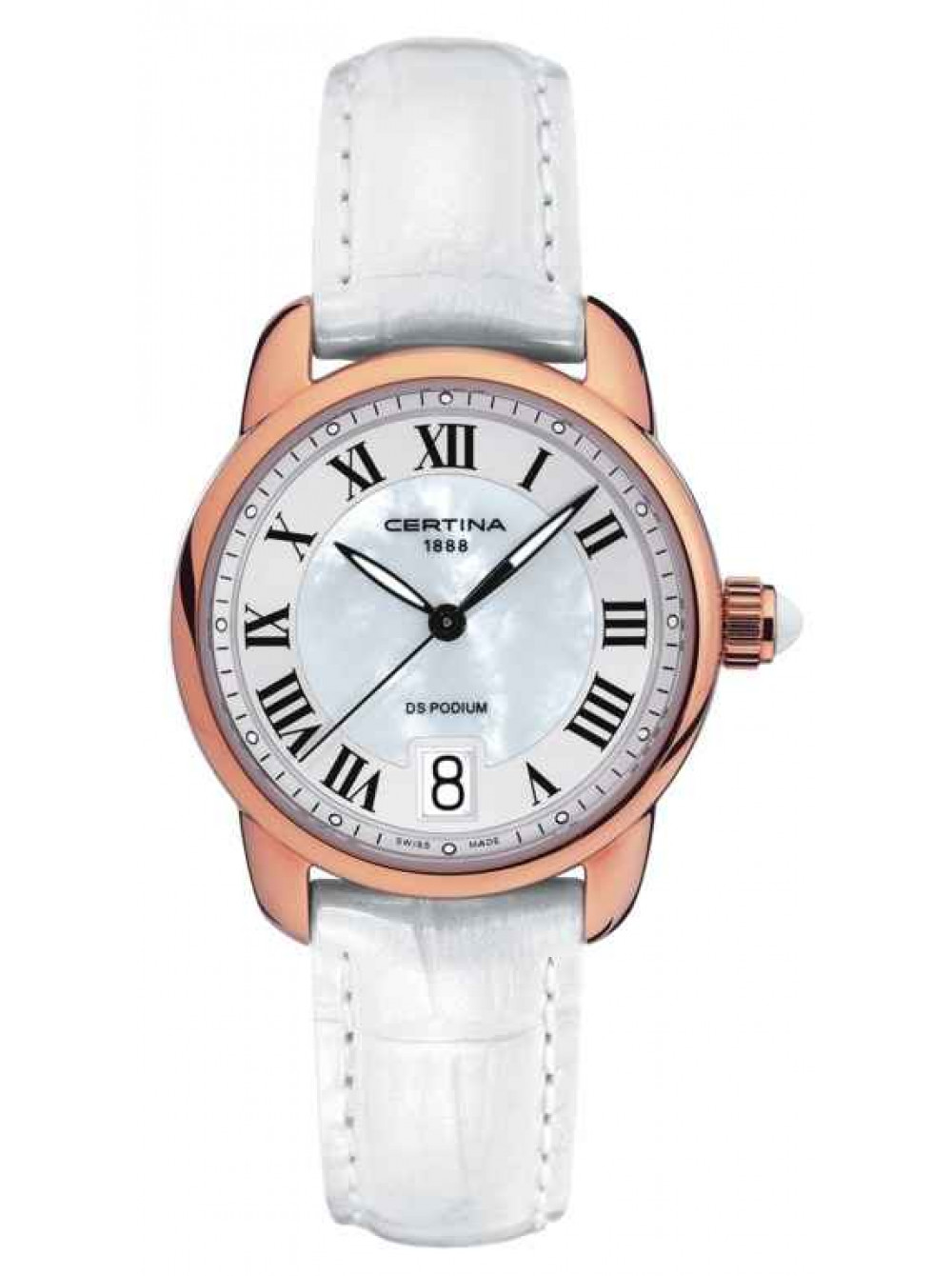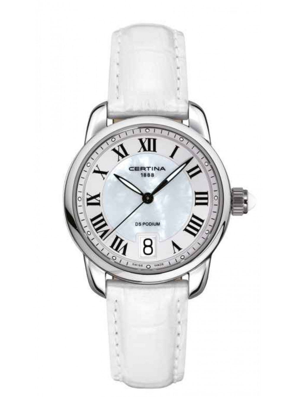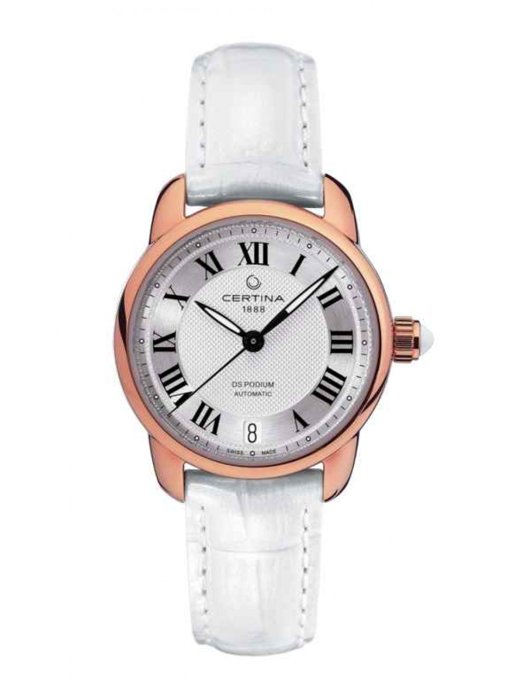 Оригинальный белый (перламутр), кожаный ремешок CERTINA, имитация крокодила, без клипсы. DS PODIUM. Размер ремешка входящий в корпус и на клипсу 16/14 мм. Длина 65*105 мм.