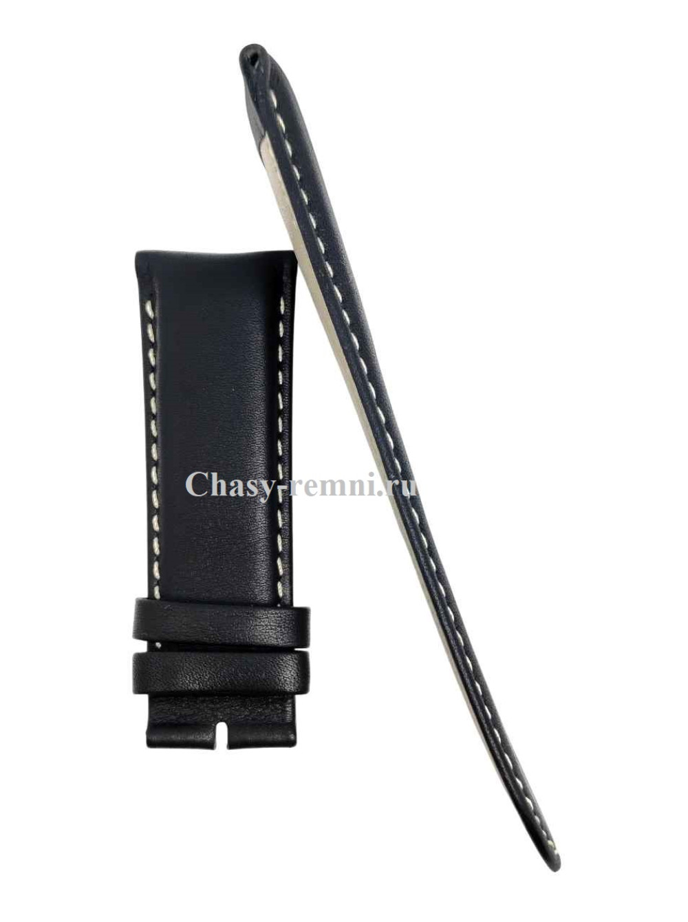 Оригинальный черный кожаный ремешок COVER, гладкий, с белой прострочкой, без пряжки. Размер ремня входящий в корпус и на пряжку 24/22 мм. Длина 70*120 мм.