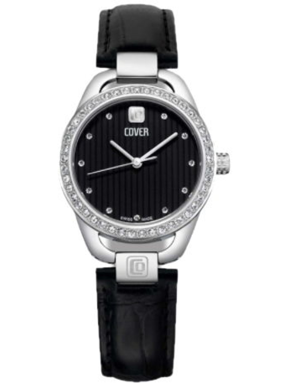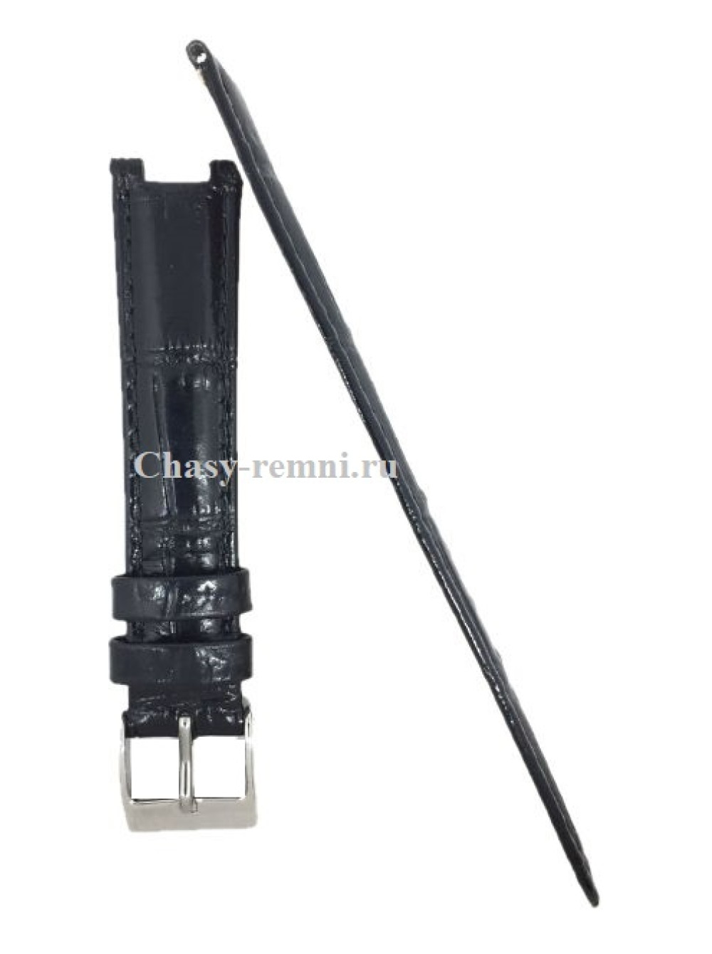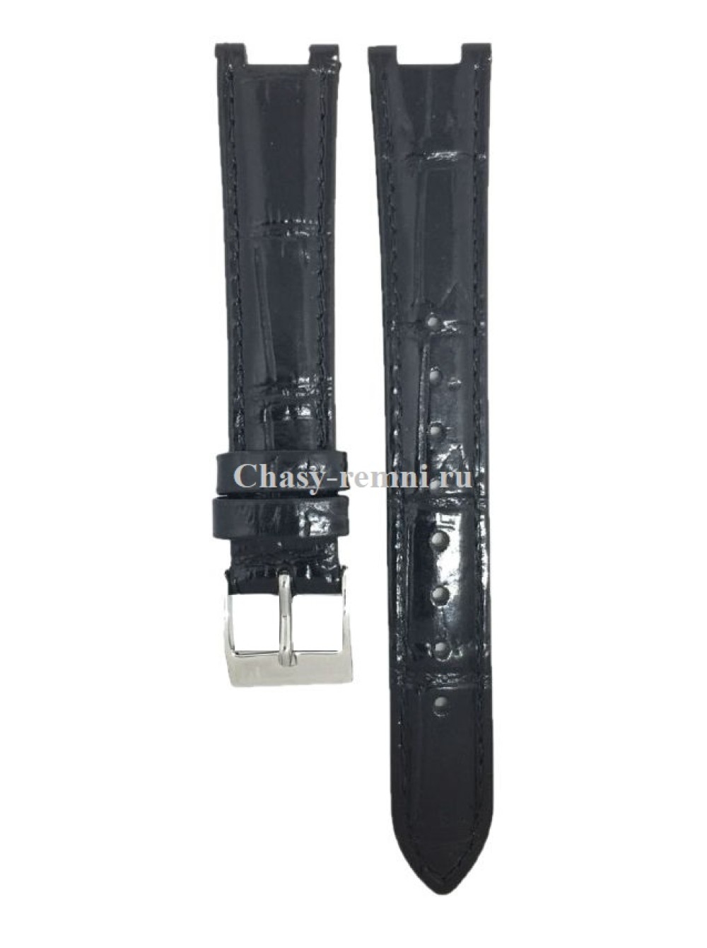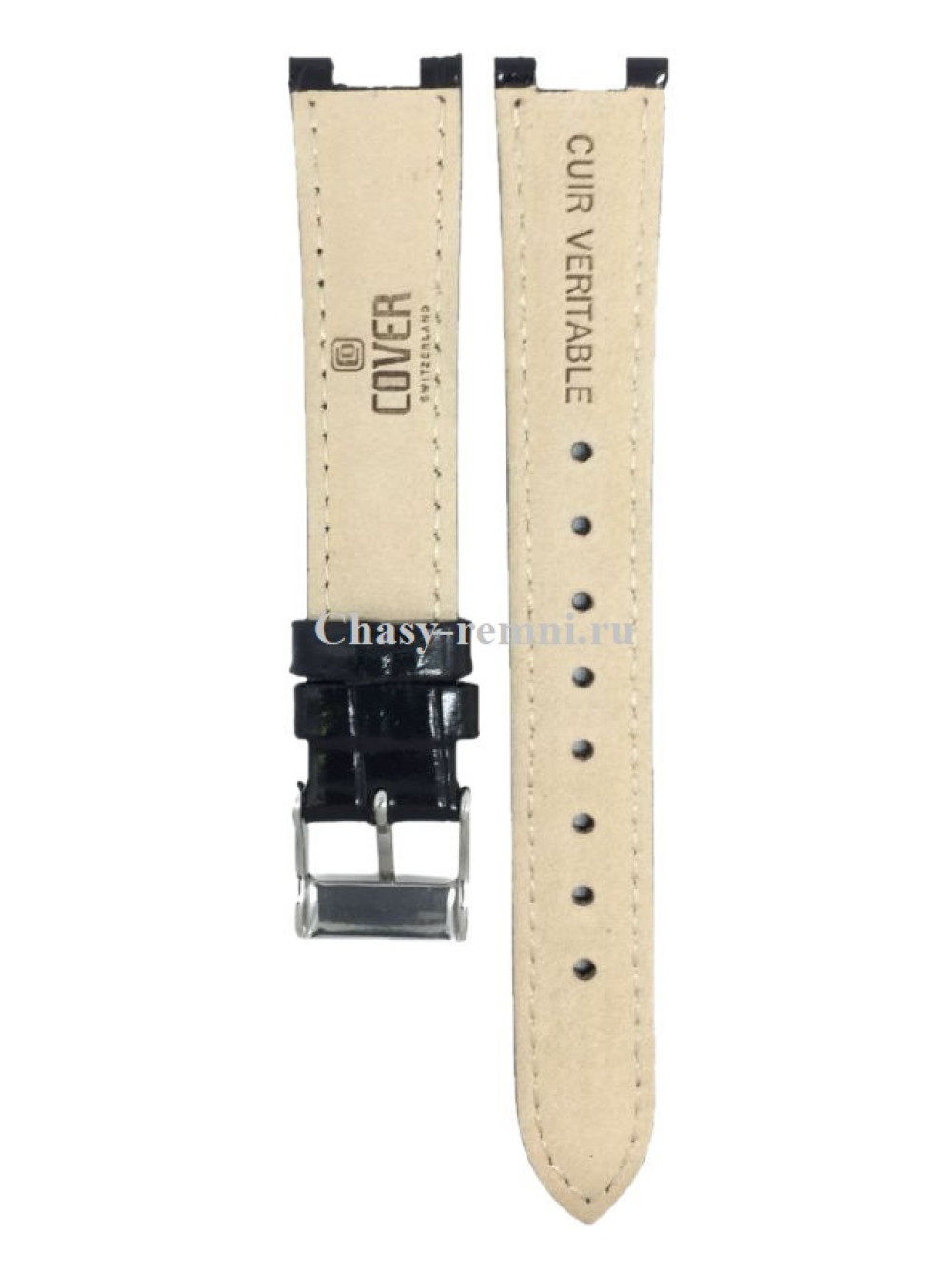 Оригинальный черный, кожаный ремешок COVER, имитация крокодила, со стальной пряжкой, с вырезом под корпус. Размер ремешка входящий в корпус и на пряжку 16/14 мм. Подходит для модели часов CO167