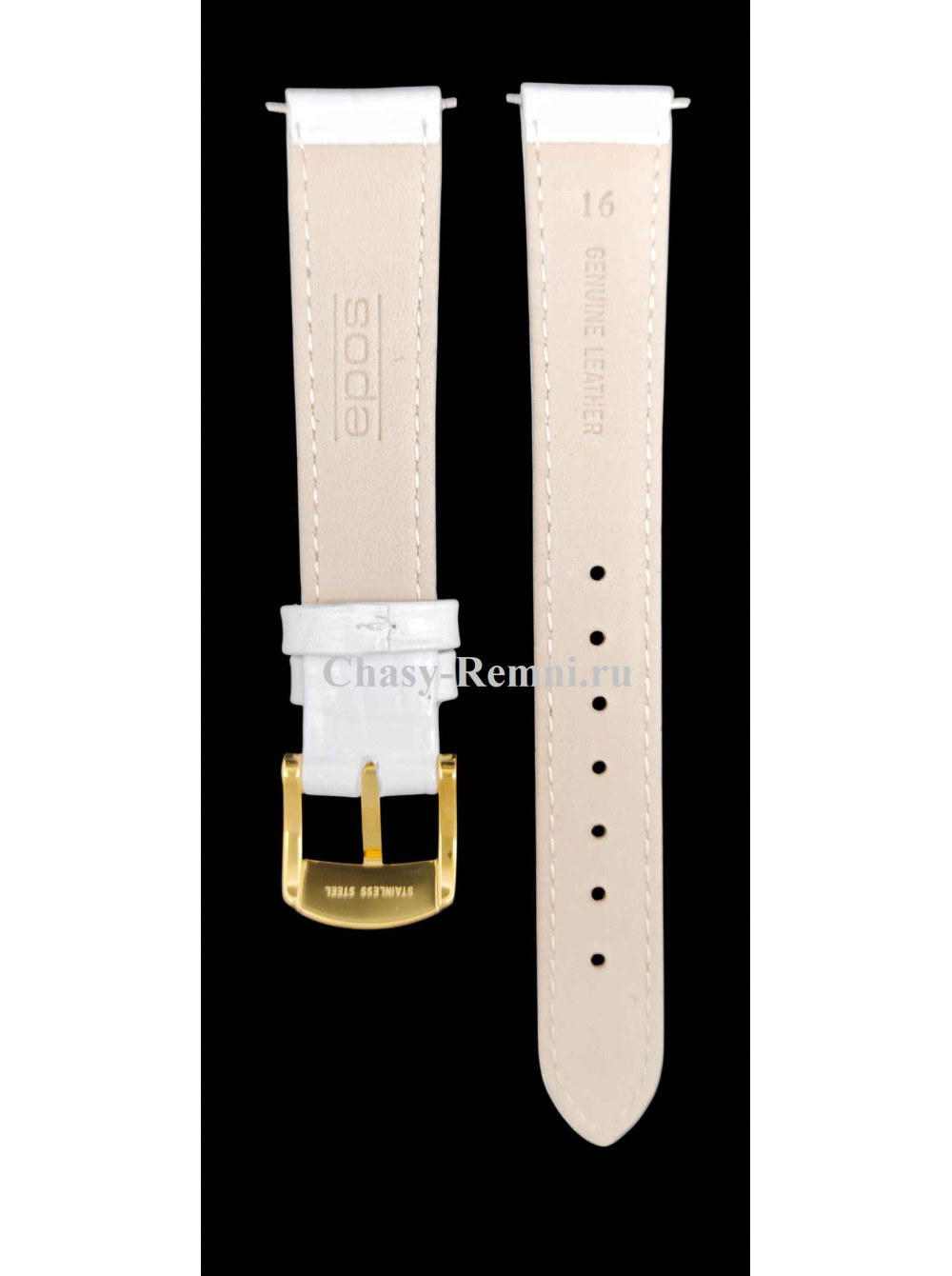 Оригинальный белый, кожаный ремешок EPOS, имитация крокодила, с желтой клипсой. Размер входящий в корпус и на клипсу 16/14 мм. Длина 75*115 мм.