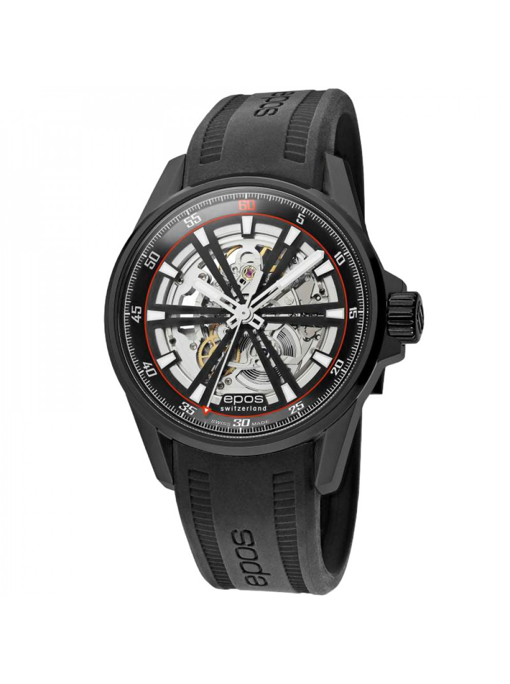 Оригинальный черный, каучуковый ремешок EPOS, интегрированный под корпус, каучук, со стальной пряжкой. Размер входящий в корпус и на пряжку 22/20 мм. Длина 80*130 мм.
