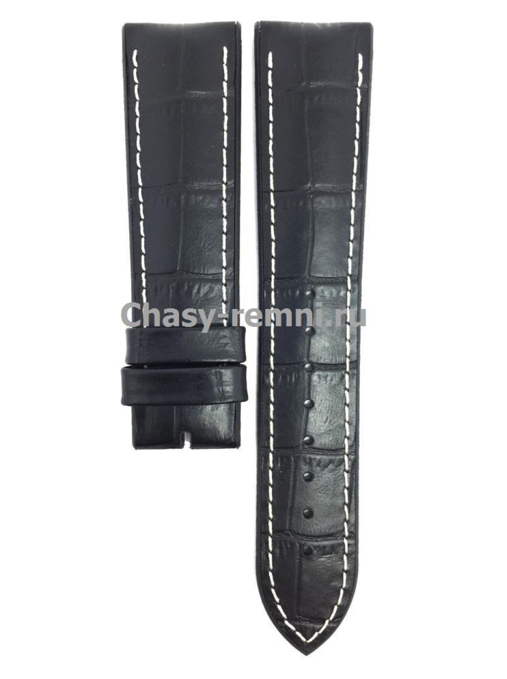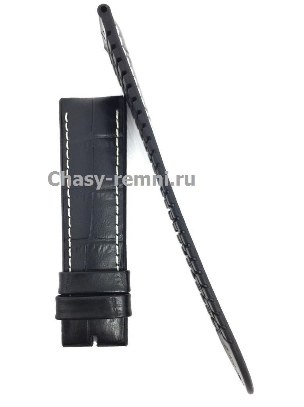 Кожаный черный ремешок Epos, имитация крокодила, с черной каучуковой подложкой, без пряжки. Размер входящий в корпус и на пряжку 22/20 мм.