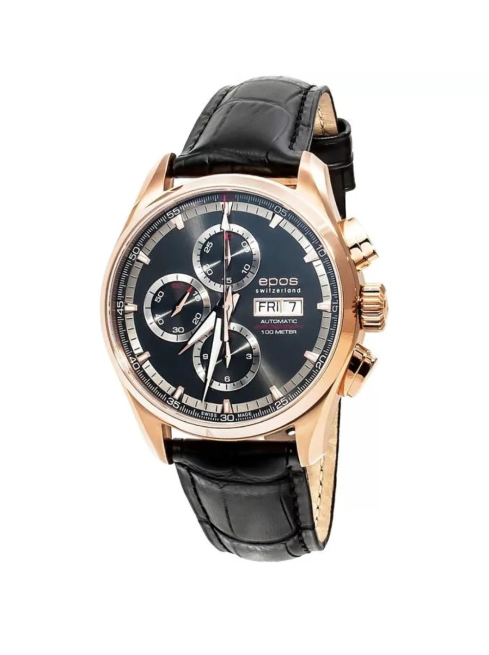 Оригинальный черный ремешок EPOS, каучук со стальной желтой клипсой. Входящий размер в корпус 22 мм.