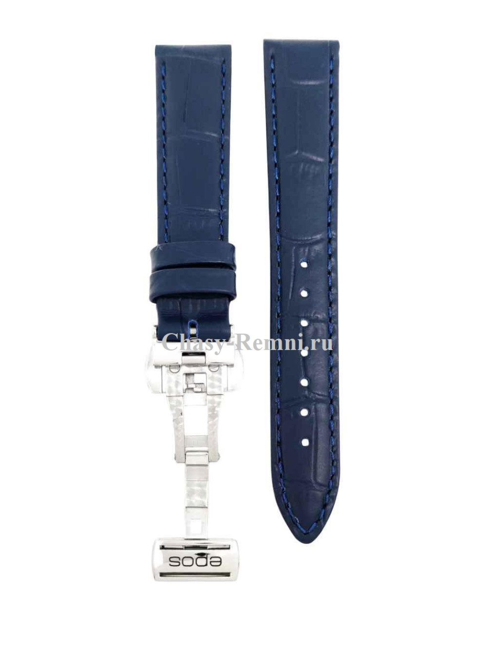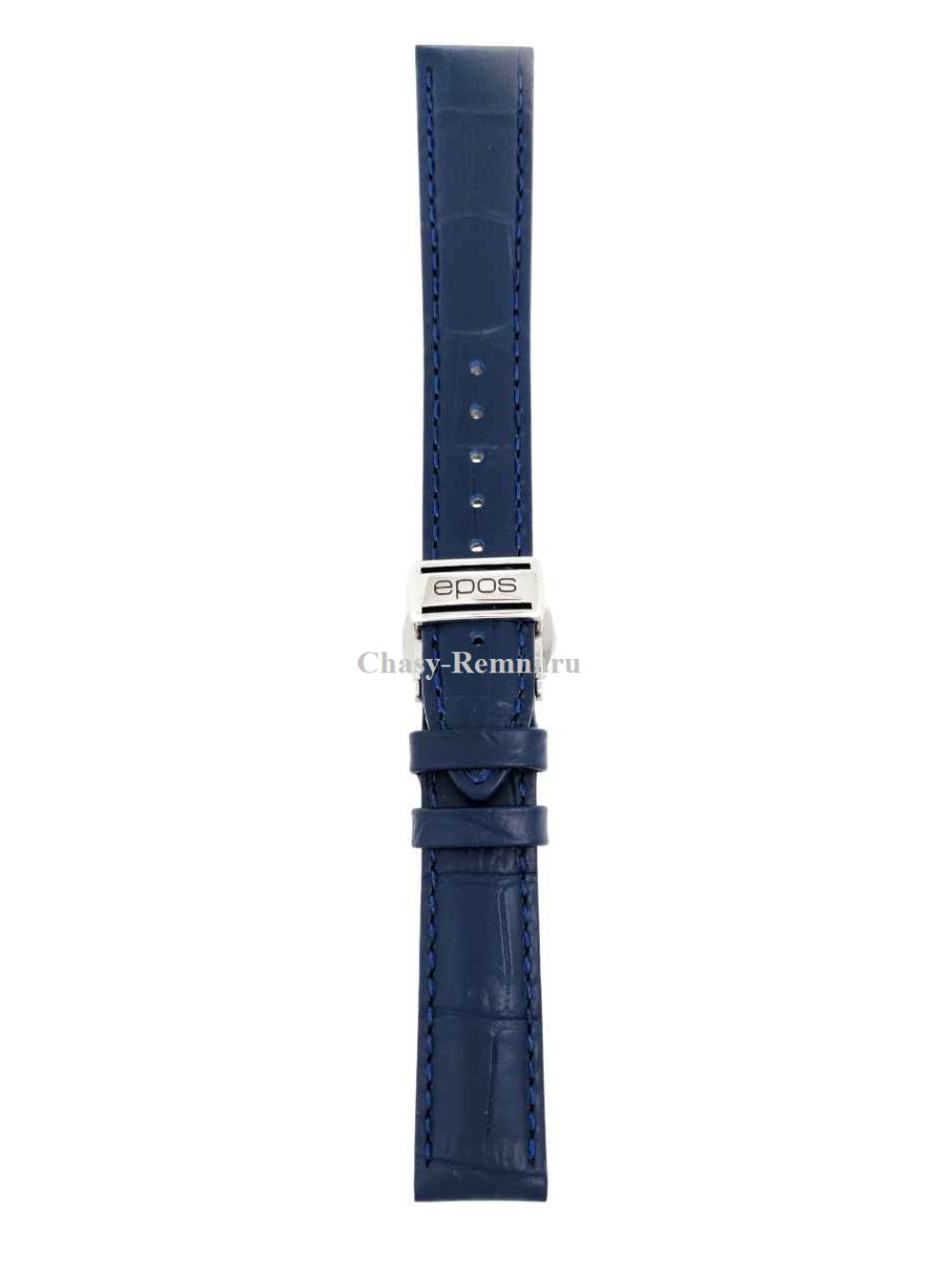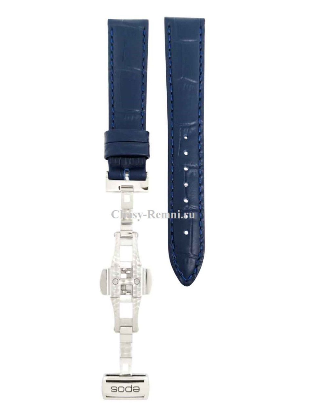Оригинальный кожаный, синий ремешок EPOS, имитация крокодила, со стальной клипсой. Размер входящий в корпус и на пряжку 16/14 мм. Длина 60*105 мм.