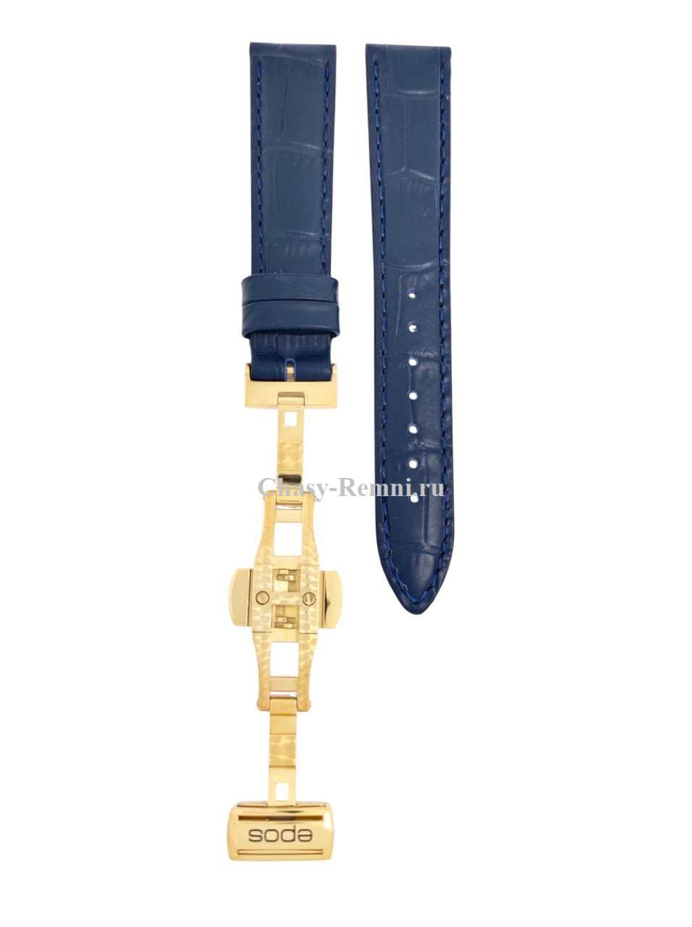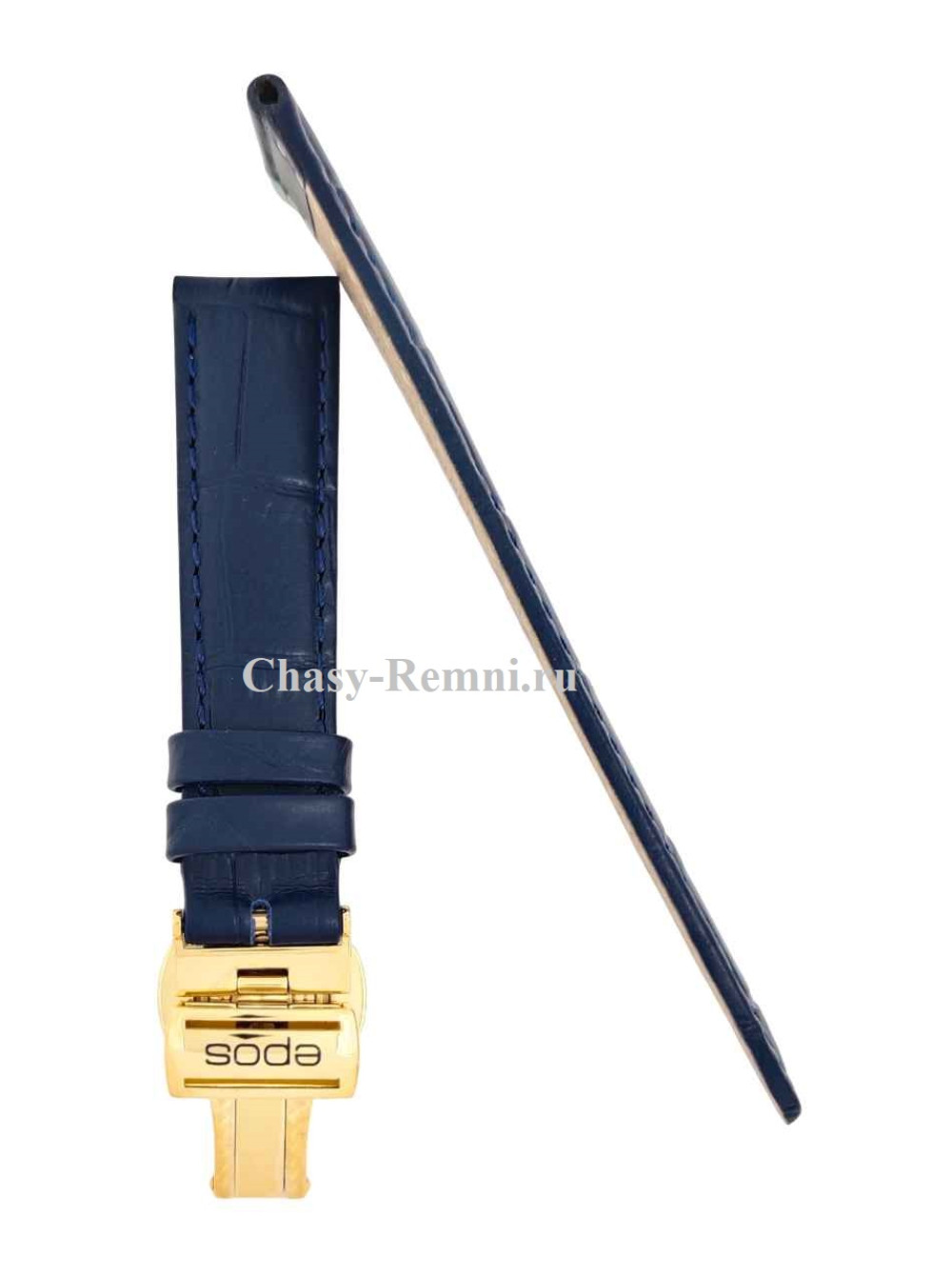 Оригинальный кожаный, синий ремешок EPOS, имитация крокодила, с желтой клипсой. Размер входящий в корпус и на пряжку 16/14 мм. Длина 60*105 мм.