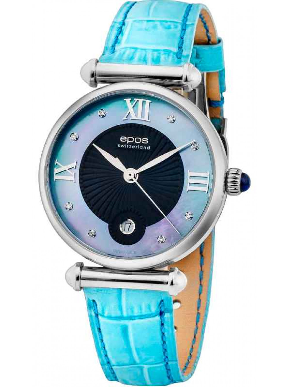 Оригинальный голубой, кожаный ремешок EPOS, имитация крокодила без пряжки. Размер входящий в корпус и на пряжку 16/14 мм.