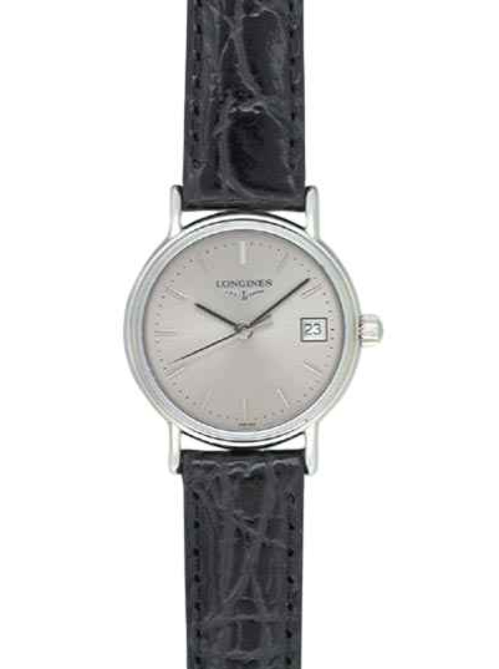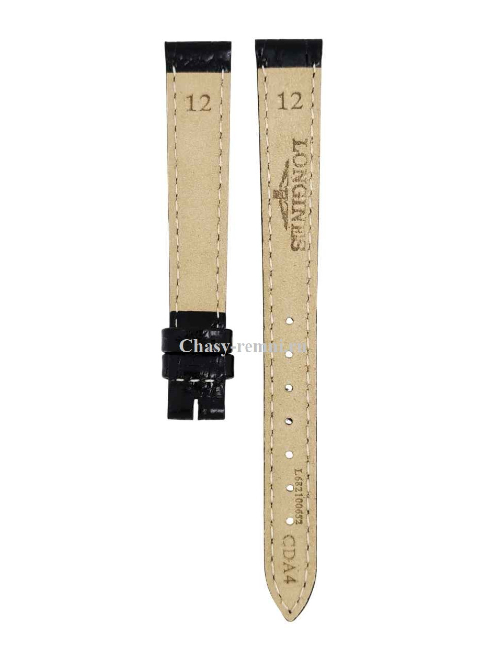 Оригинальный кожаный, черный ремешок Longines. Имитация крокодила, без пряжки. PRESENCE. Размер входящий в корпус и на пряжку 12/10 мм. Длина ремня 70*105 мм.