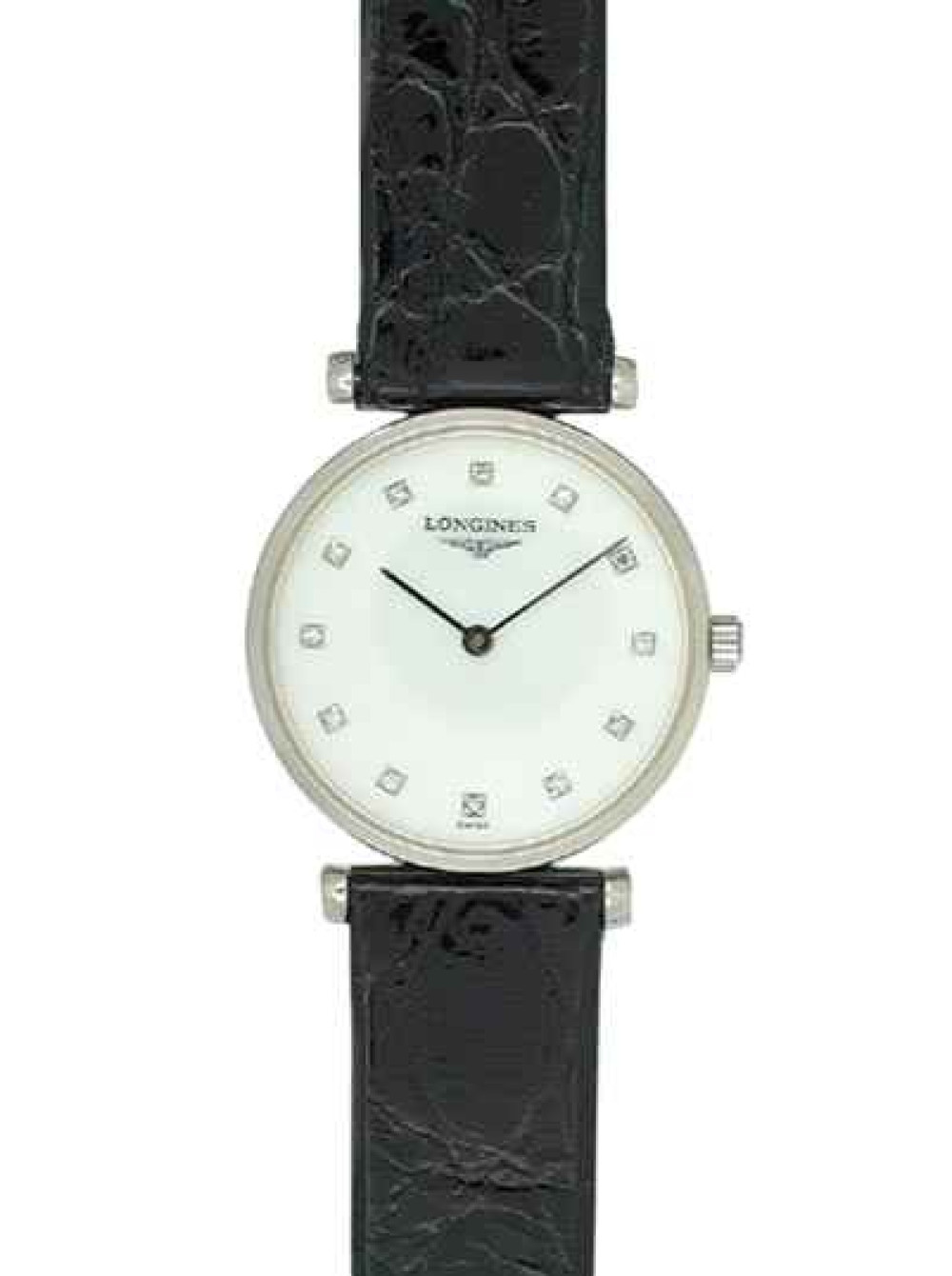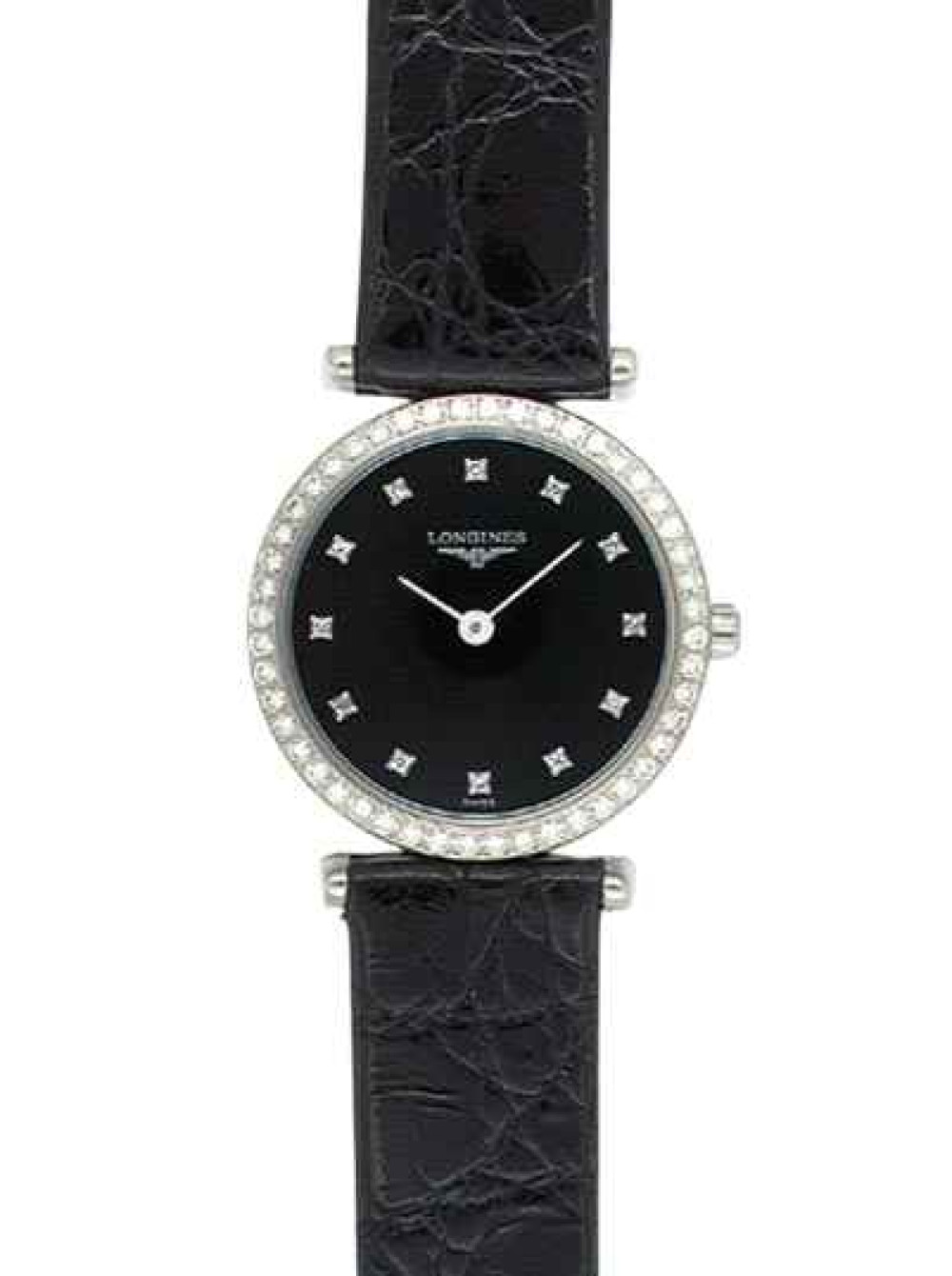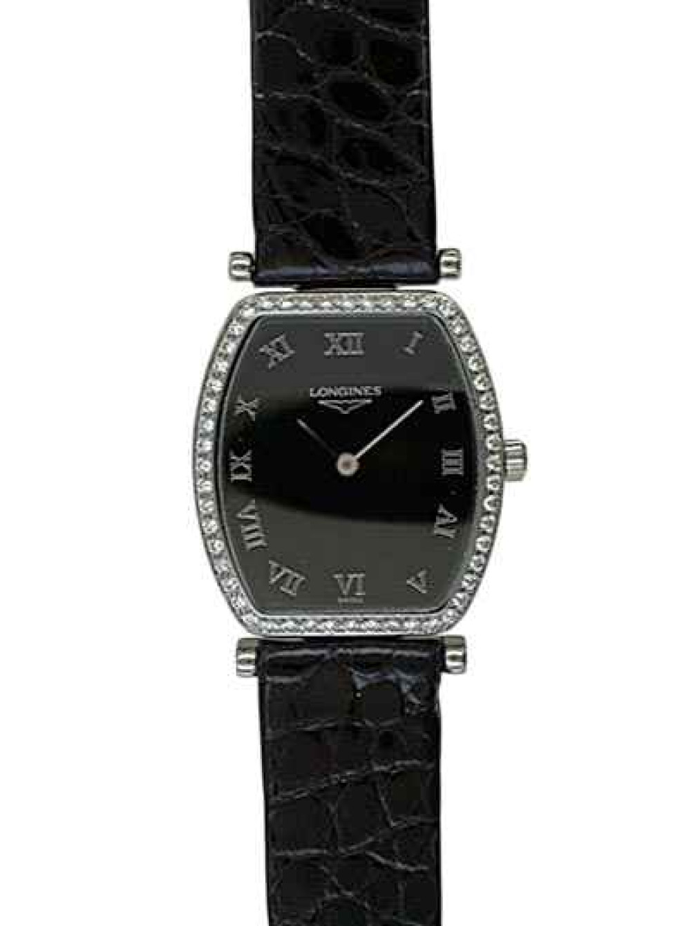 Оригинальный черный кожаный ремешок LONGINES, имитация крокодила, без пряжки. La Grande Classique. Размер ремешка входящий в корпус и на пряжку 13/12 мм. Длина ремешка 55*95 мм.