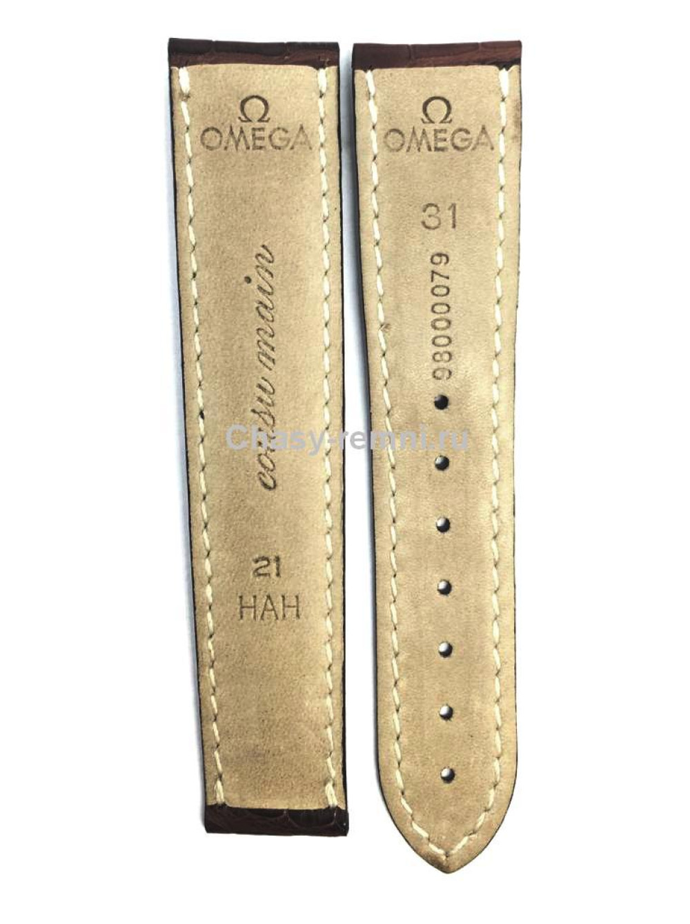 Оригинальный коричневый, кожаный ремешок OMEGA, натуральный аллигатор, без клипсы. Длина ремешка 100*115 мм. Размер входящий в корпус и на клипсу 21/18 мм.