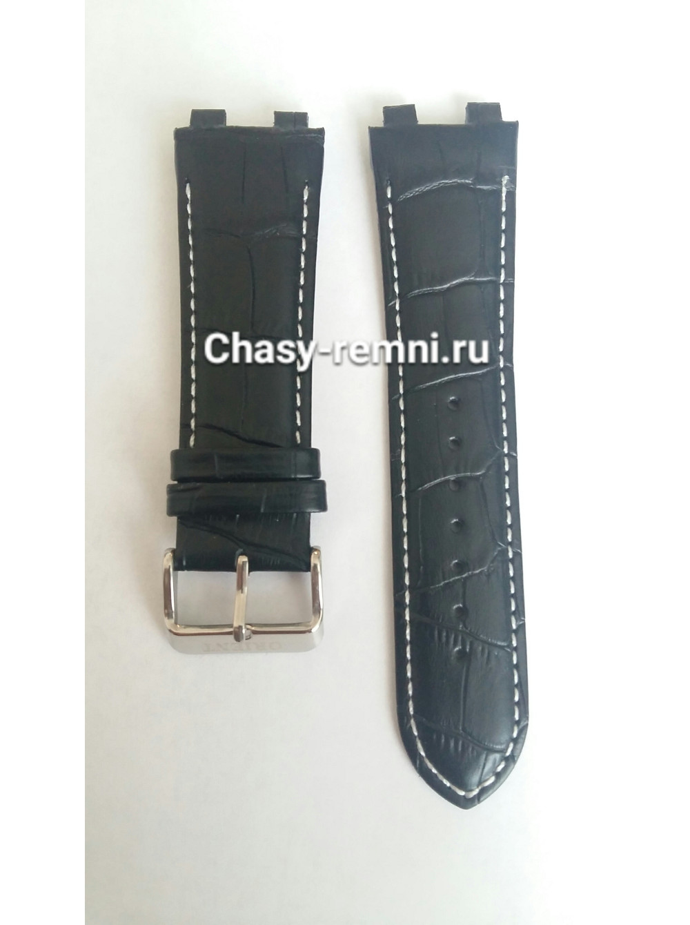 Ремешок Orient черный кожаный, имитация крокодила, с белой прострочкой со стальной пряжкой. Подходит для моделей часов FERAL....