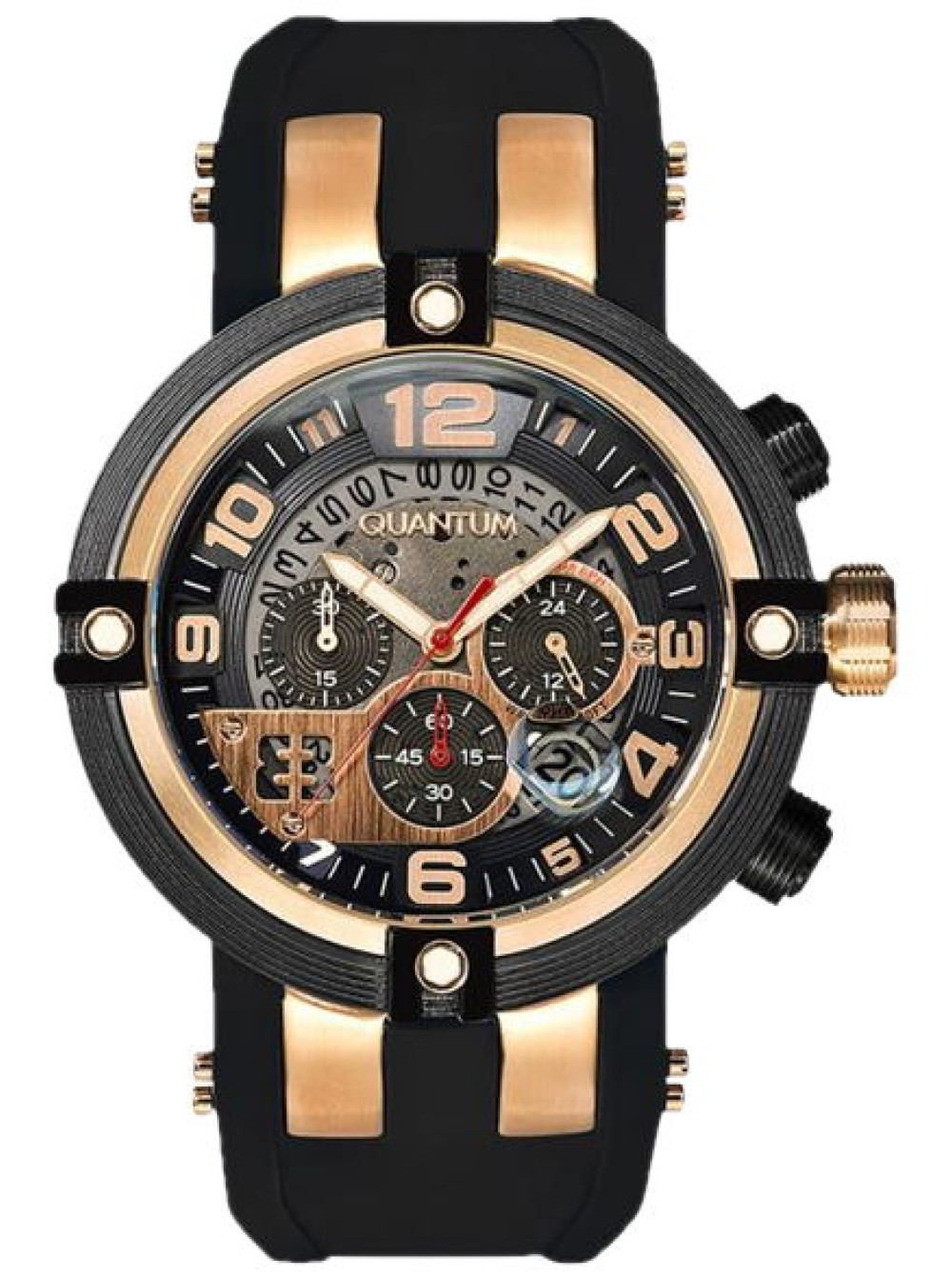 Оригинальный черный, силиконовый ремешок QUANTUM, интегрированный под корпус, с розовой пряжкой. Подходит для модели часов PWG468.851