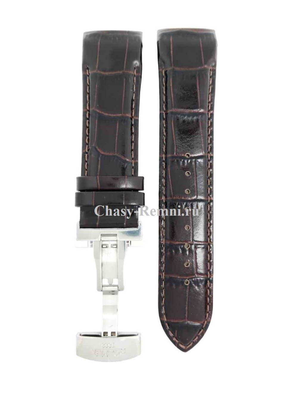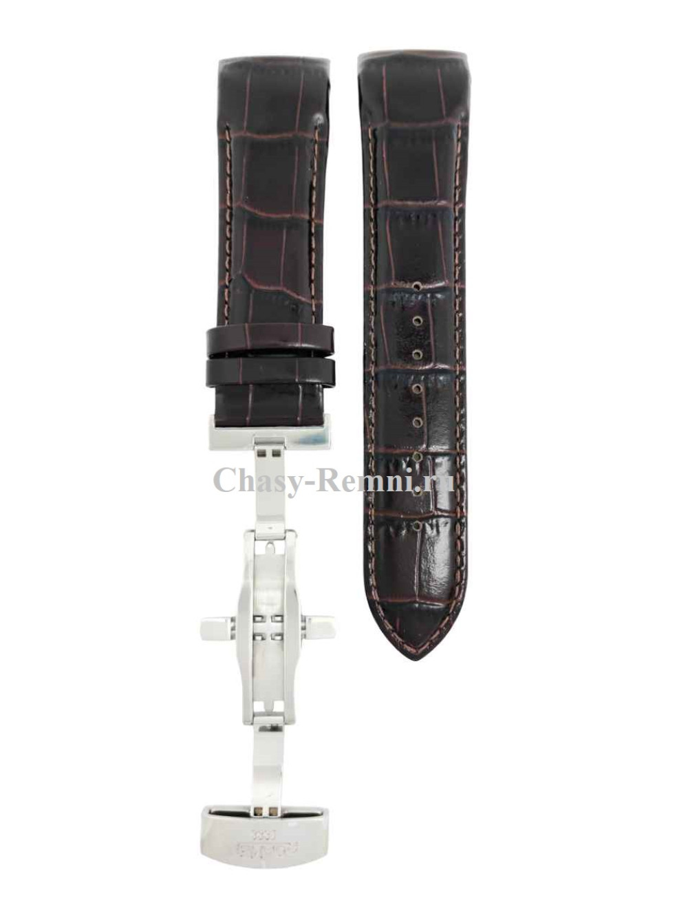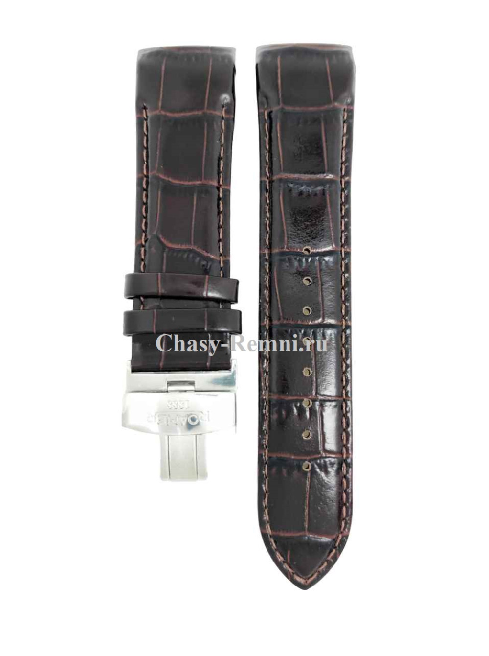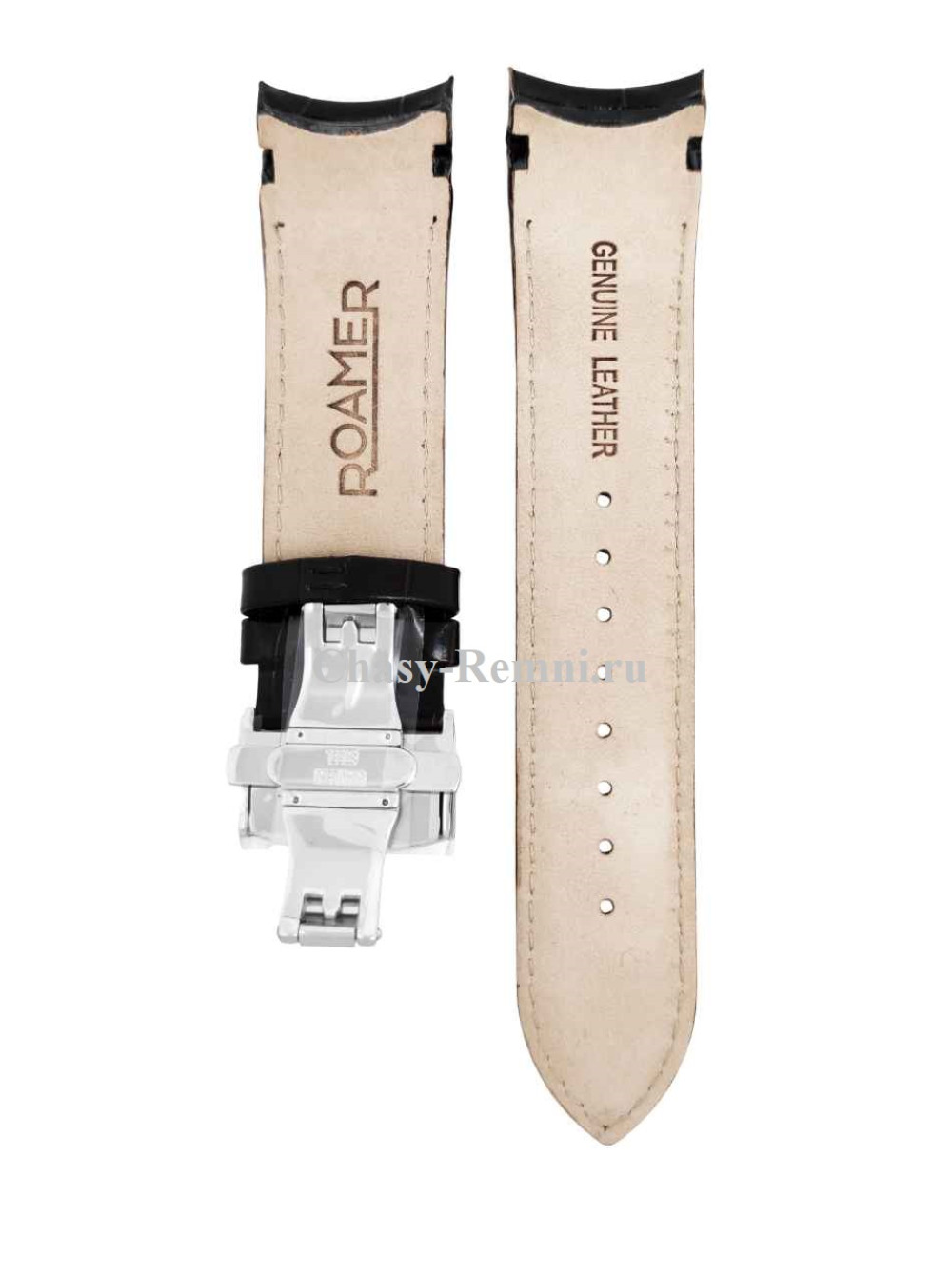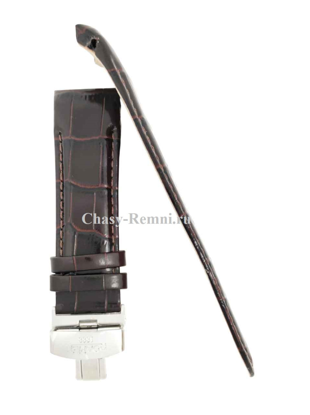 Оригинальный коричневый, кожаный ремешок ROAMER, интегрированный под корпус, имитация крокодила, со стальной клипсой. Размеры ремешка входящий в корпус и на клипсу 24/22 мм. Длина 70*120 мм.