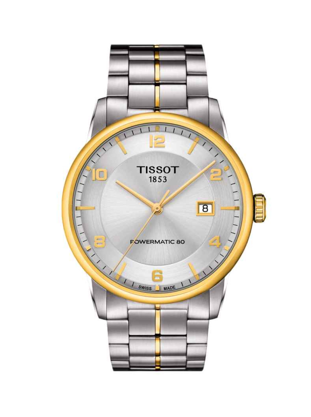 Оригинальный стальной браслет, с желтыми вставками, TISSOT, интегрированный под корпус. LUXURY.