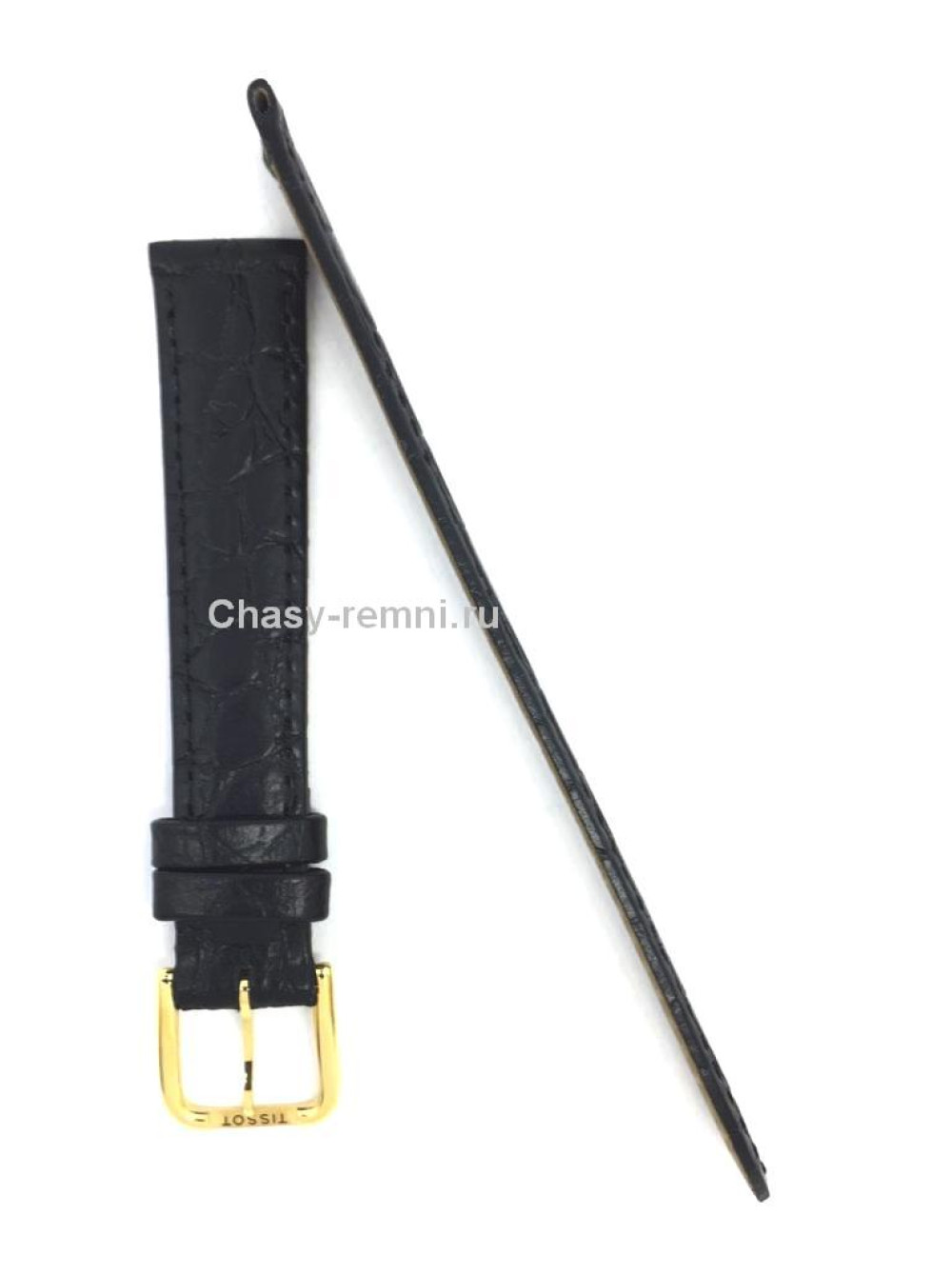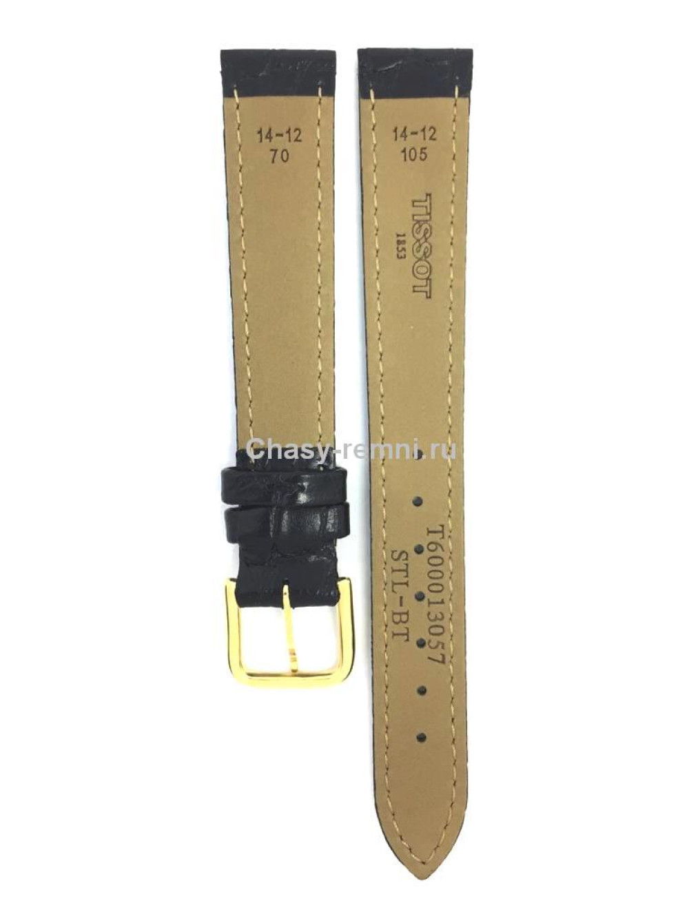 Оригинальный черный, кожаный ремешок TISSOT, имитация крокодила, желтая пряжка. Размер входящий в корпус и на пряжку 14/12 мм. Длина ремешка 70*105 мм.