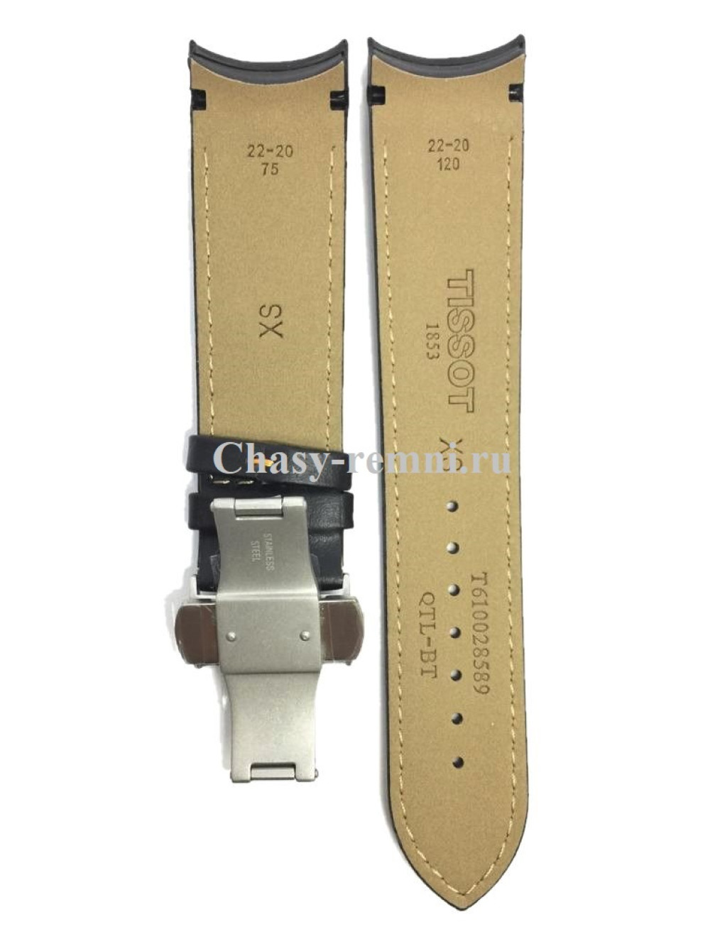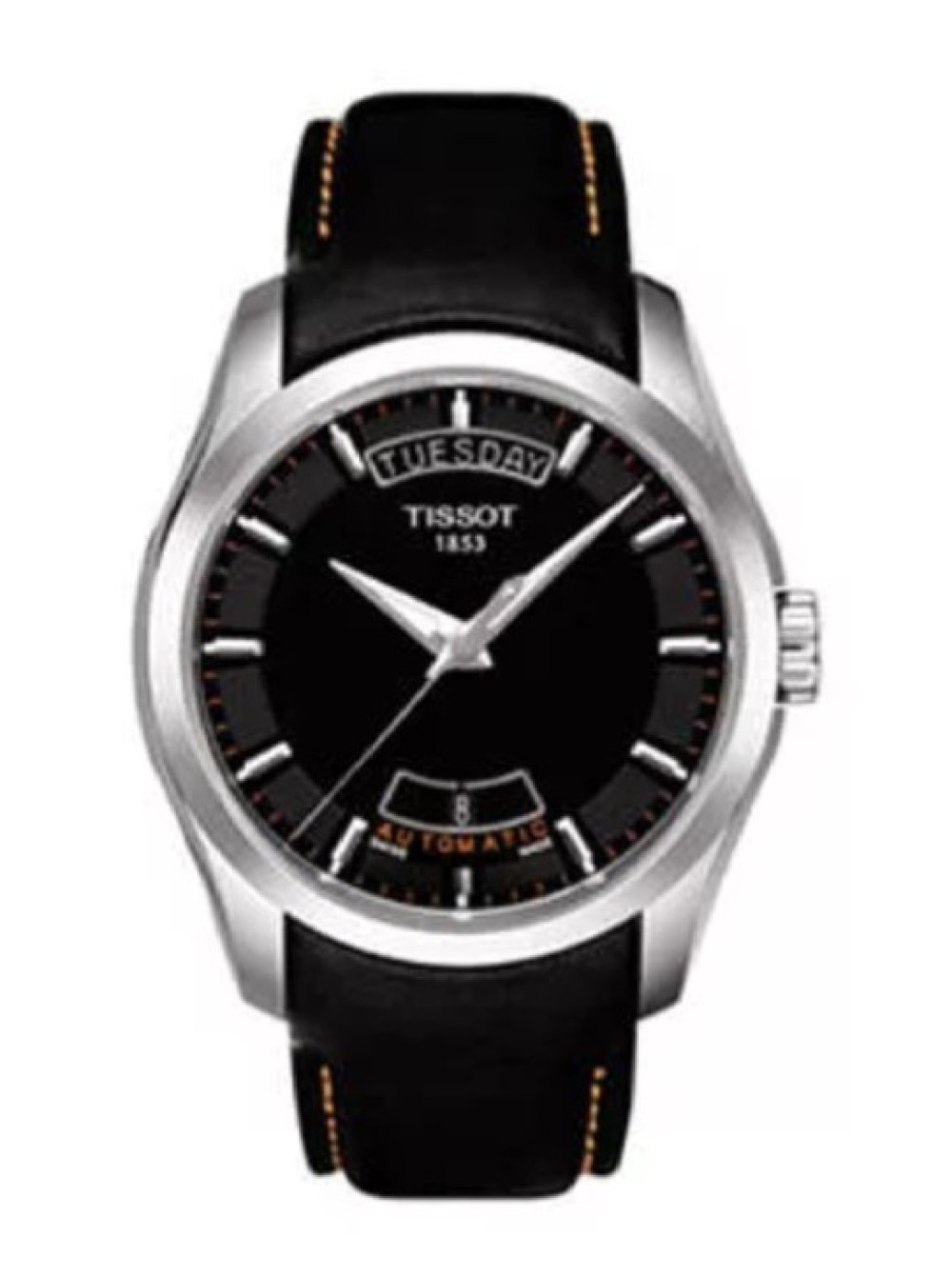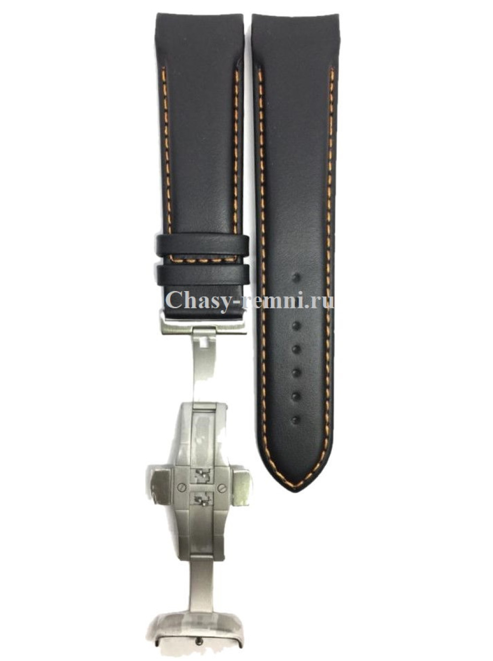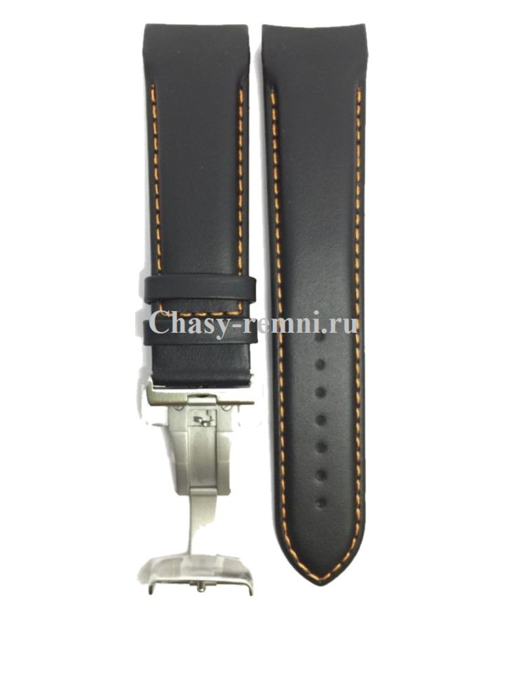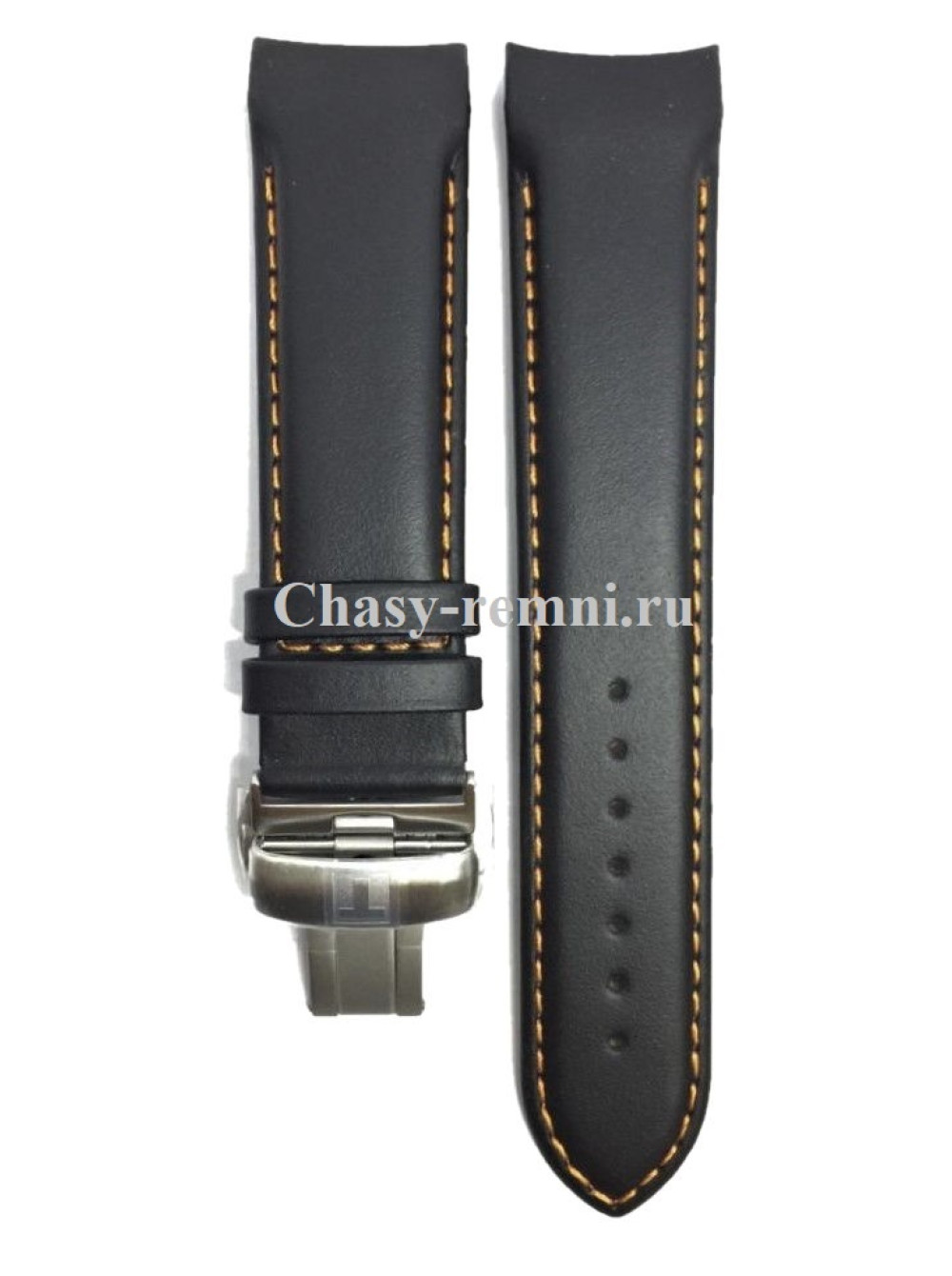 Оригинальный черный, кожаный ремешок TISSOT COUTURIER, интегрированный под корпус, гладкий, оранжевая прострочка, стальная клипса. Размер входящий в корпус и на клипсу 22/20 мм. Длина ремешка 75*120 мм.