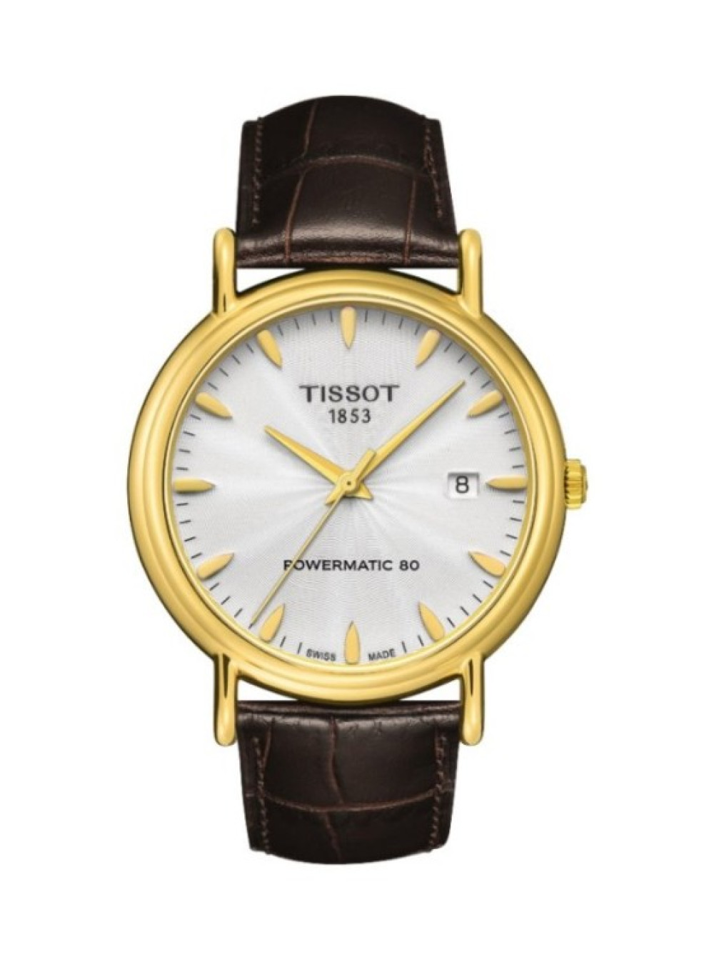 Оригинальный кожаный, коричневый ремешок TISSOT, имитация крокодила, желтая клипса, CARSON. Размер входящий в корпус и на клипсу 20/18 мм.