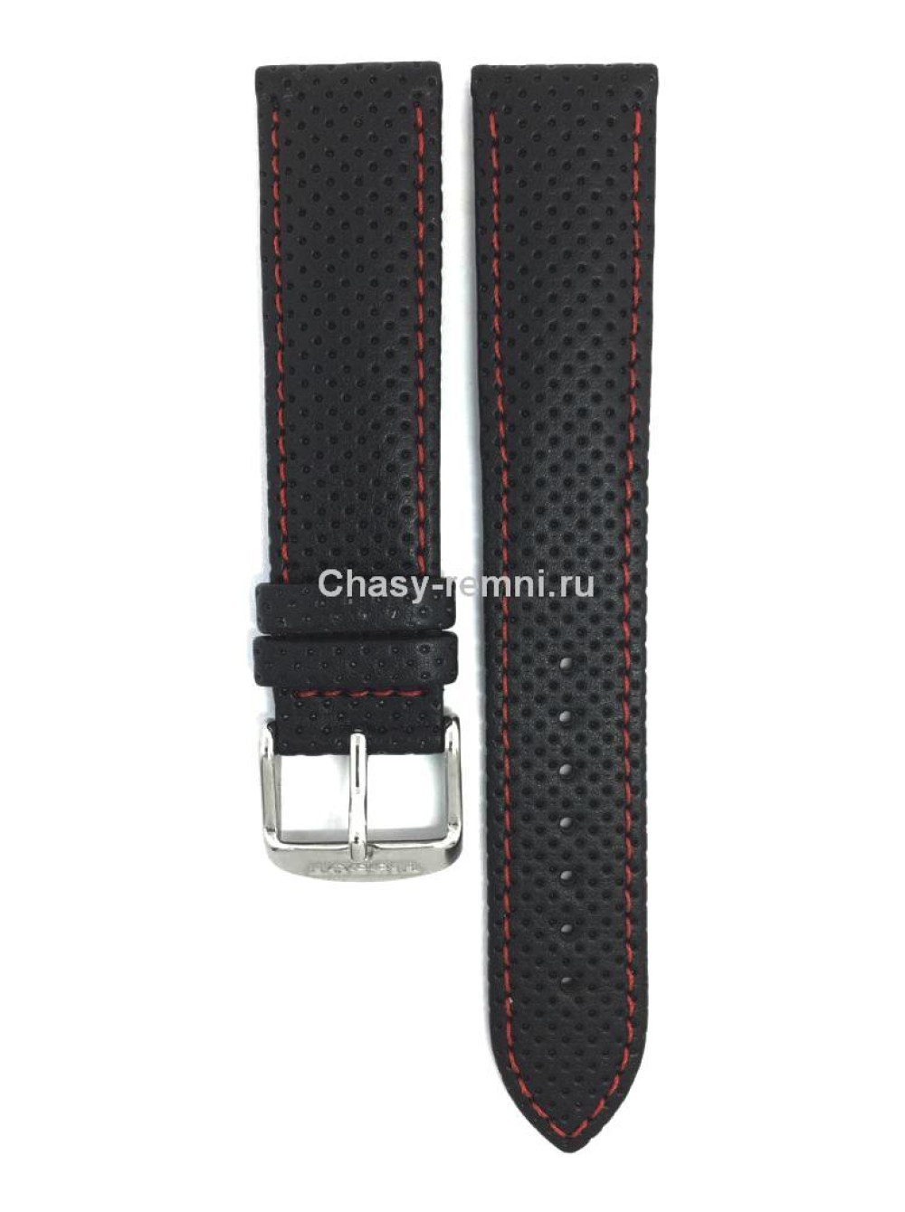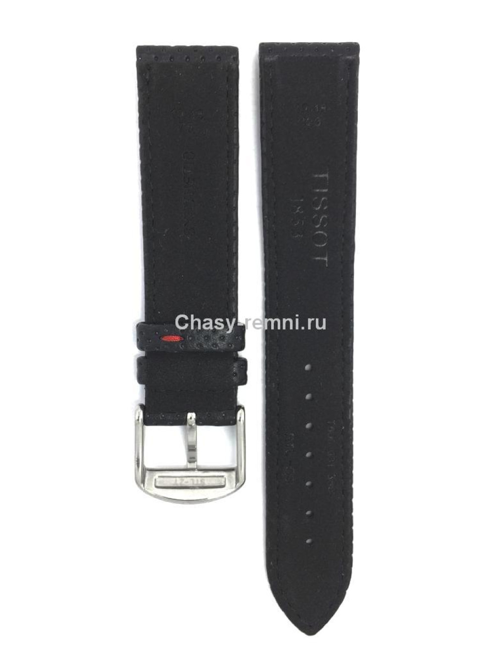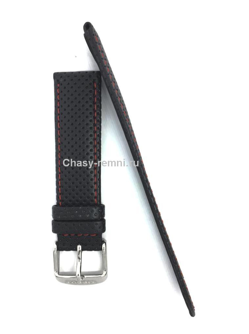 Оригинальный кожаный, черный ремешок TISSOT, гладкий, стальная пряжка, точечная перфорация, красная прострочка, PR 100. Размер входящий в корпус и на пряжку 19/18 мм. Длина ремешка 75*120 мм.