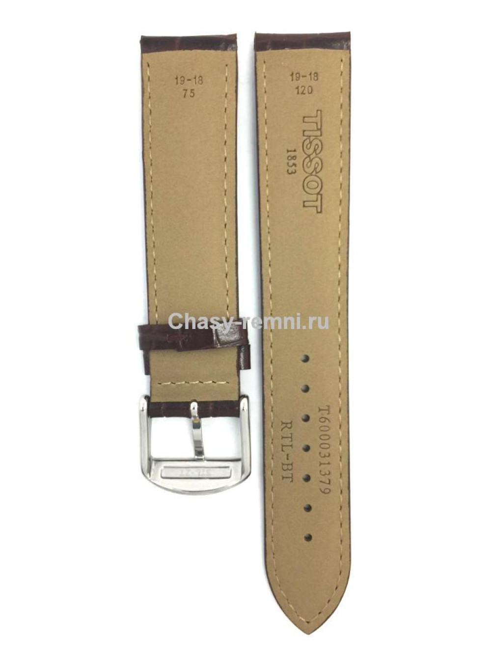 Оригинальный кожаный, коричневый ремешок TISSOT, имитация крокодила, стальная пряжка, PR 100. Размер входящий в корпус и на пряжку 19/18 мм. Длина ремешка 75*120 мм.