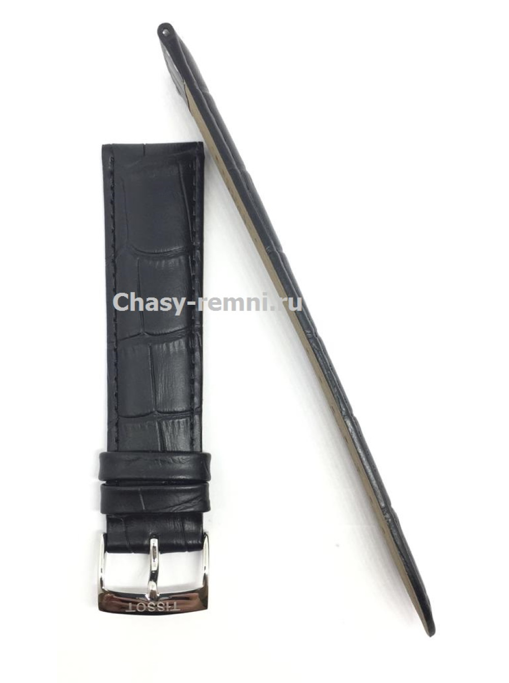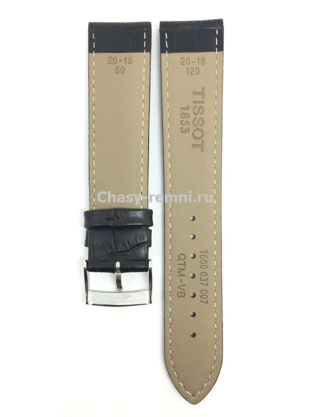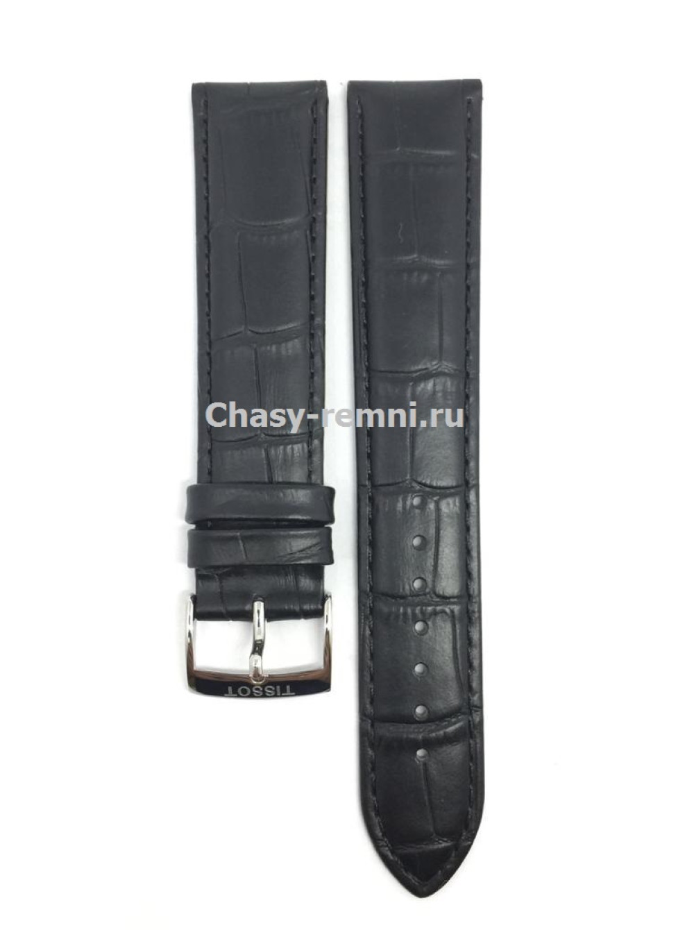 Оригинальный черный, кожаный ремешок TISSOT, имитация крокодила, со стальной пряжкой, PR 100. Размер входящий в корпус и на пряжку 20/18 мм. Длина ремешка 80*120 мм.