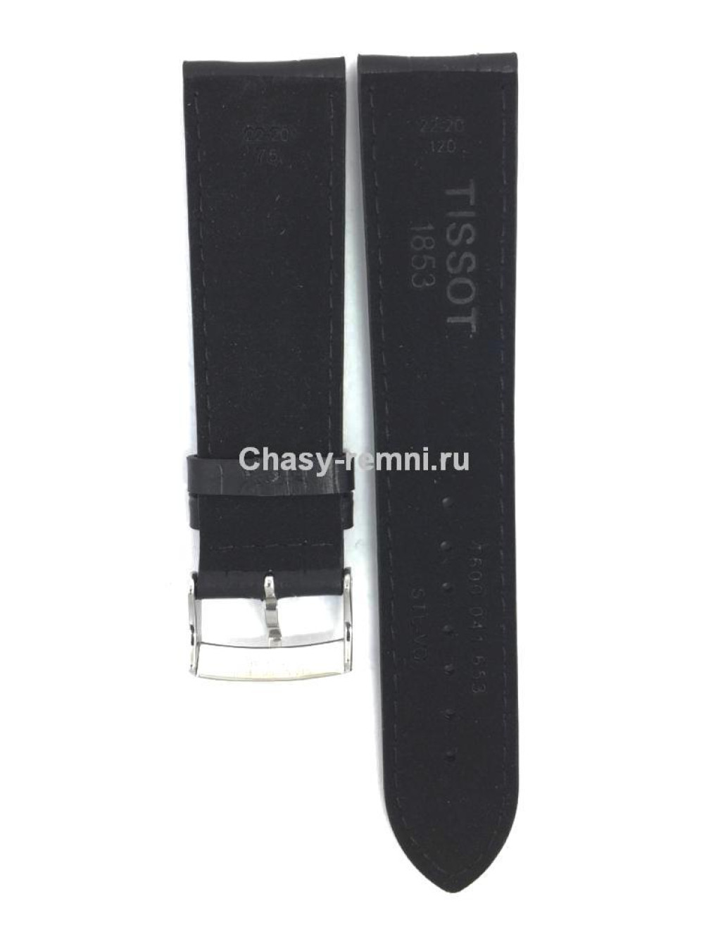 Оригинальный черный, кожаный ремешок TISSOT, имитация крокодила, стальная пряжка, CHRONO XL. Размер входящий в корпус и на пряжку 22/20 мм. Длина ремешка 75*120 мм.