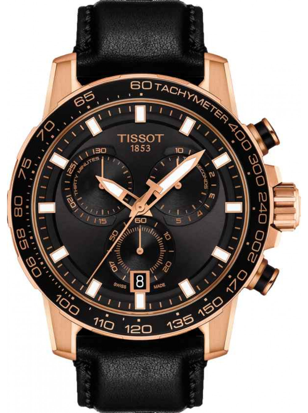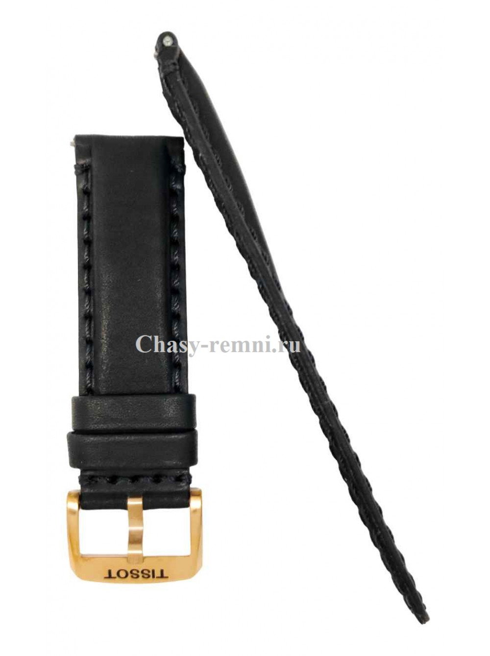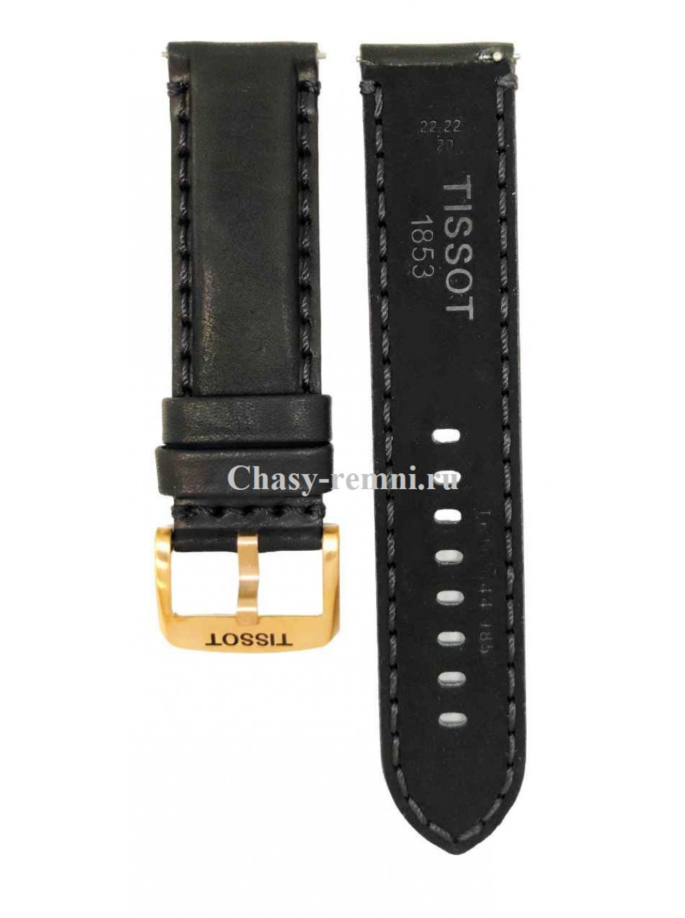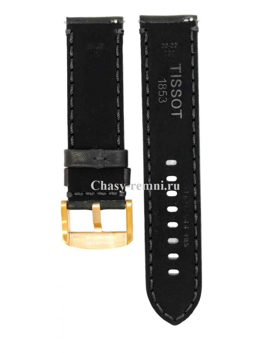 Оригинальный черный, кожаный ремешок TISSOT, гладкий, с черной прострочкой, розовая пряжка. SUPER SPORT. Размер входящий в корпус и на пряжку 22/22 мм. Длина ремешка 75*120 мм.