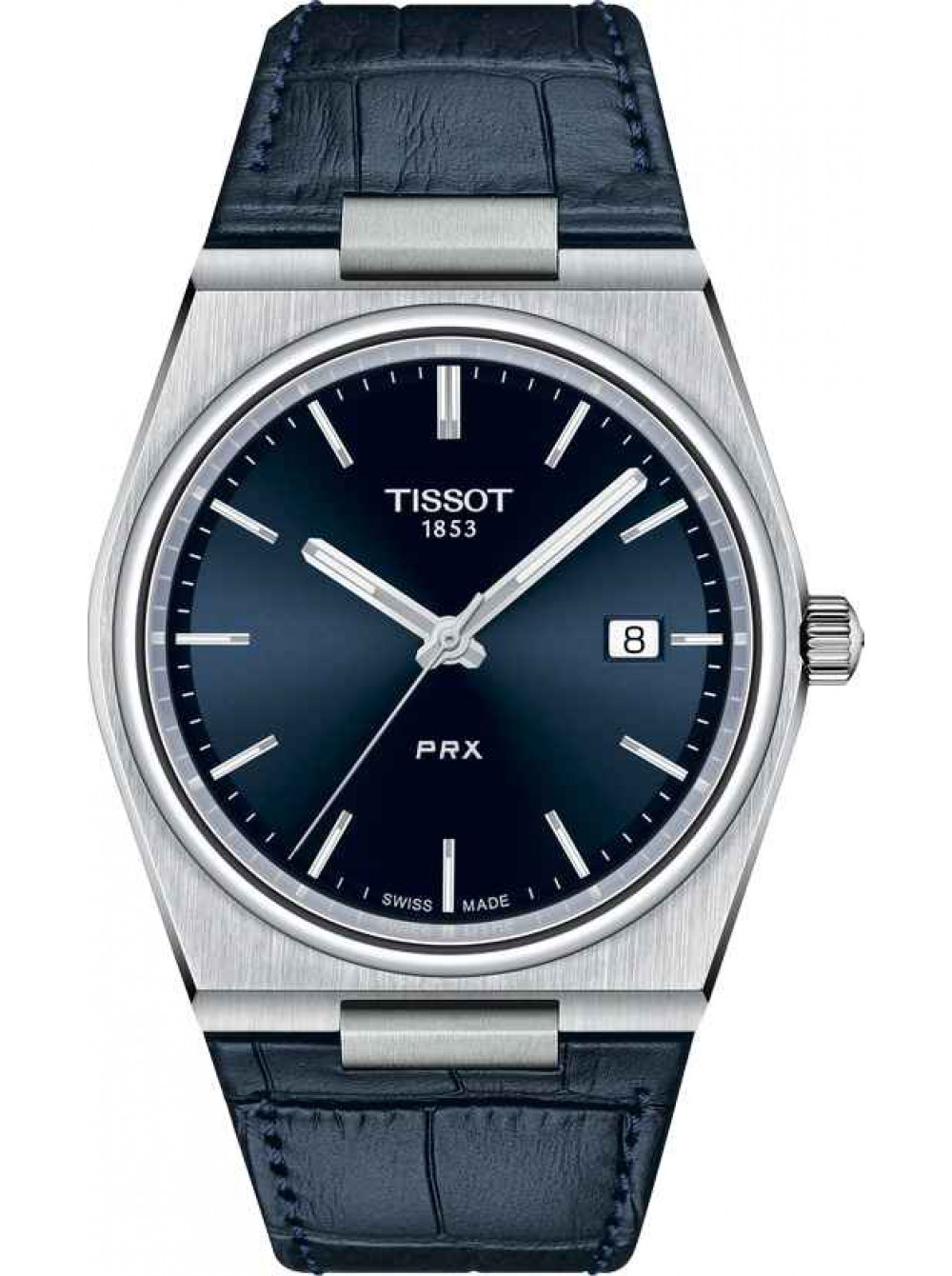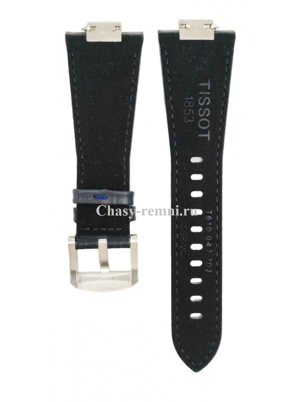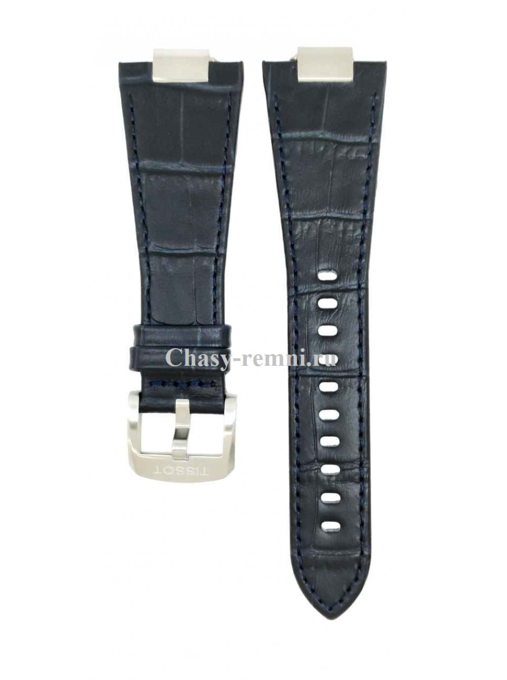 Оригинальный темно-синий, кожаный ремешок TISSOT, имитация крокодила, интегрированный под корпус, со стальной пряжкой. PRX Auto. Размер ремешка в корпус и на пряжку 27/18 мм. Длина 75*120 мм.